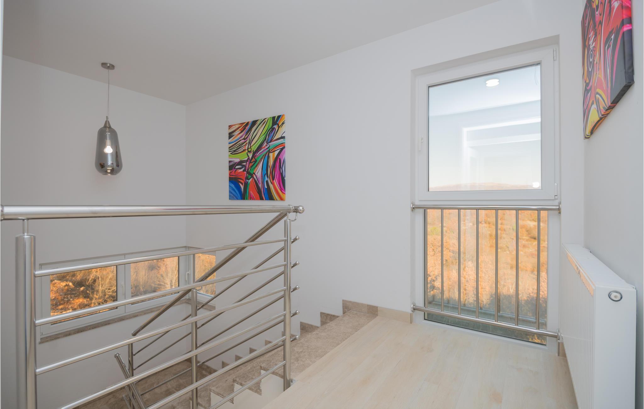 In einer wunderschönen Umgebung mit unberührter Natur auf einem geräumigen, vollständig eingezäunten Grundstück befindet sich dieses gut ausgestattete Ferienhaus. Im Inneren erwartet Sie eine moderne und helle Einrichtung mit viel Platz für alle Gäste des Urlaubs. Im Erdgeschoss befindet sich die Küche mit Wohnzimmer und im ersten Stock finden Sie die Schlafzimmer.