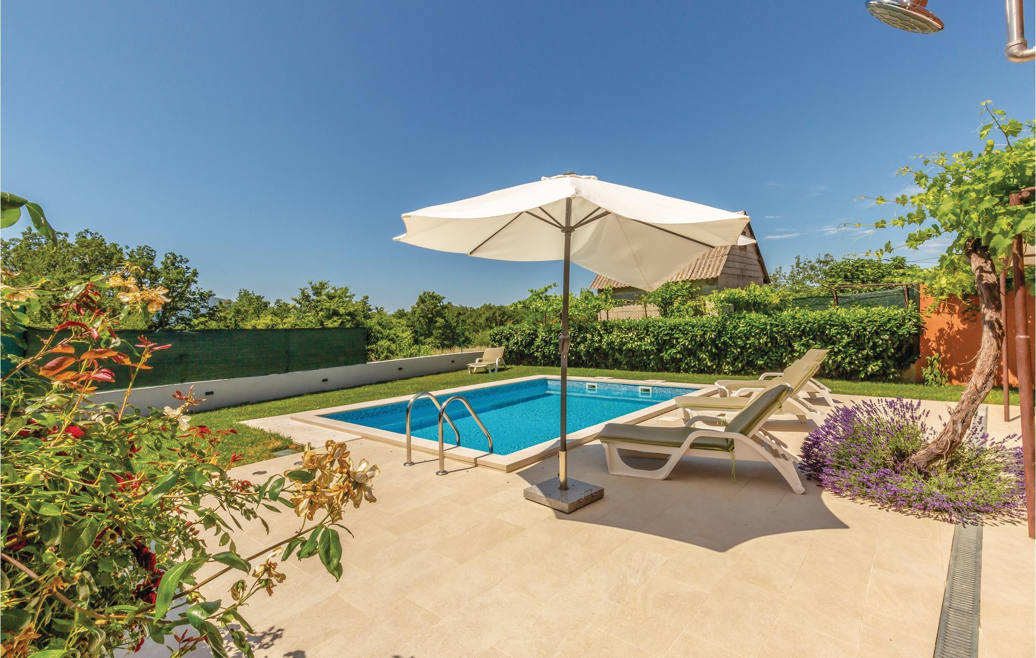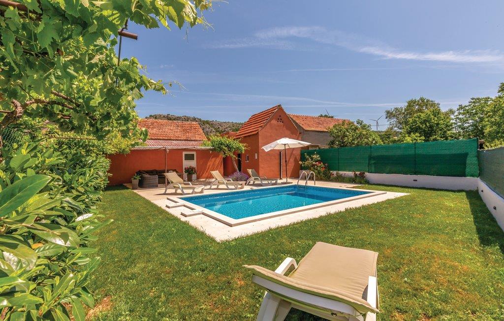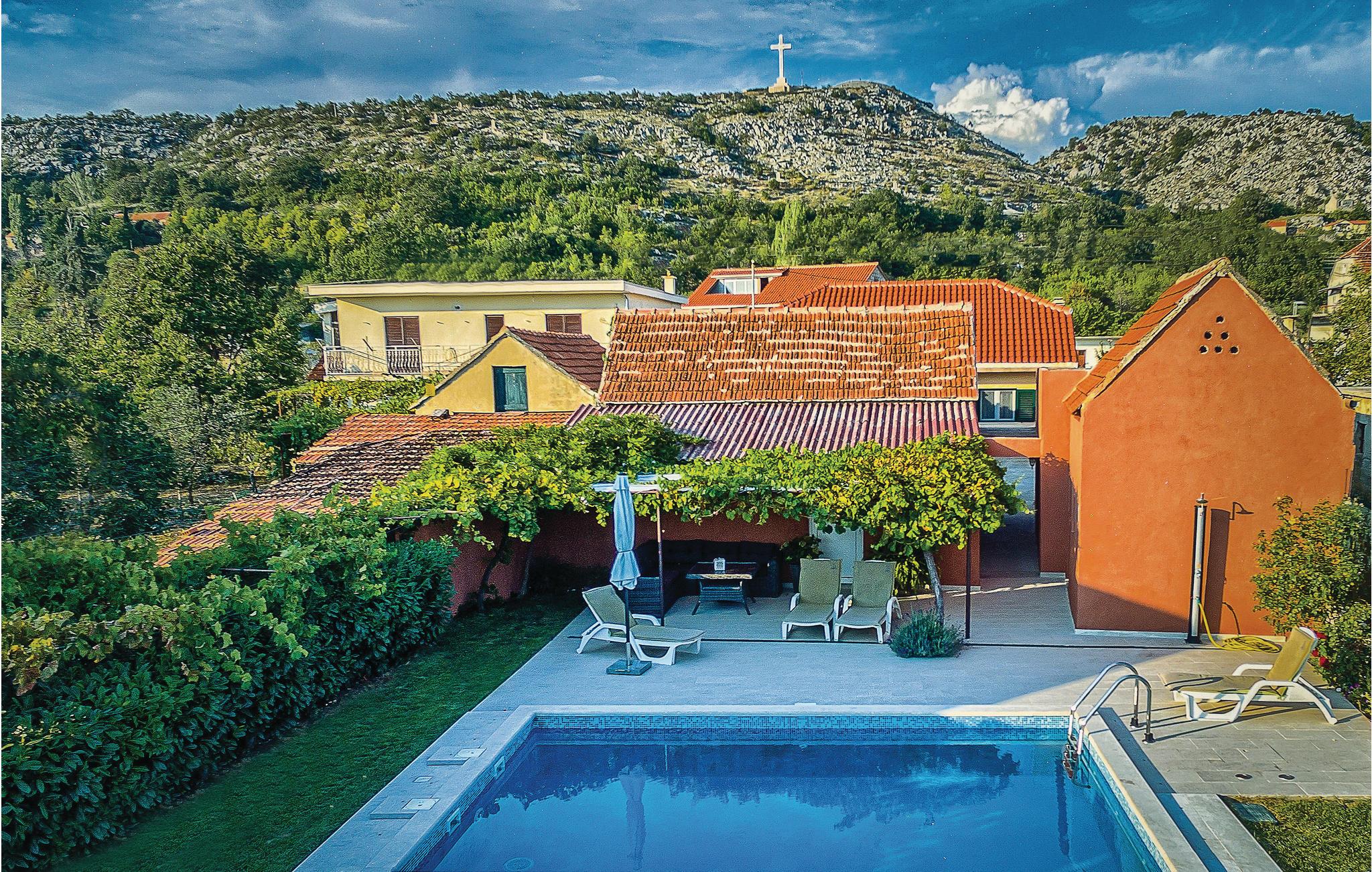Verbringen Sie einen angenehmen Aufenthalt in diesem netten Ferienhaus mit Swimmingpool im Hinterland Mitteldalmatiens. Das Haus ist geschmackvoll eingerichtet und bietet Ihnen den nötigen Komfort für Ihren Urlaub. Vor dem Ferienobjekt liegen eine schöne Terrasse mit Grill und ein Spielbereich für Kinder. Der Swimmingpool im Garten vor dem Haus bietet Ausblick auf den Naturpark Biokovo. Besuchen Sie die Ortschaften Brela und Baska Voda, mit herrlichen Kieselstränden. Der Fluss Cetina ist nur ca. 500 m entfernt. Das Ortszentrum mit Einkaufsmöglichkeiten, Restaurant und Café erreichen Sie in ca. 2,5 km.