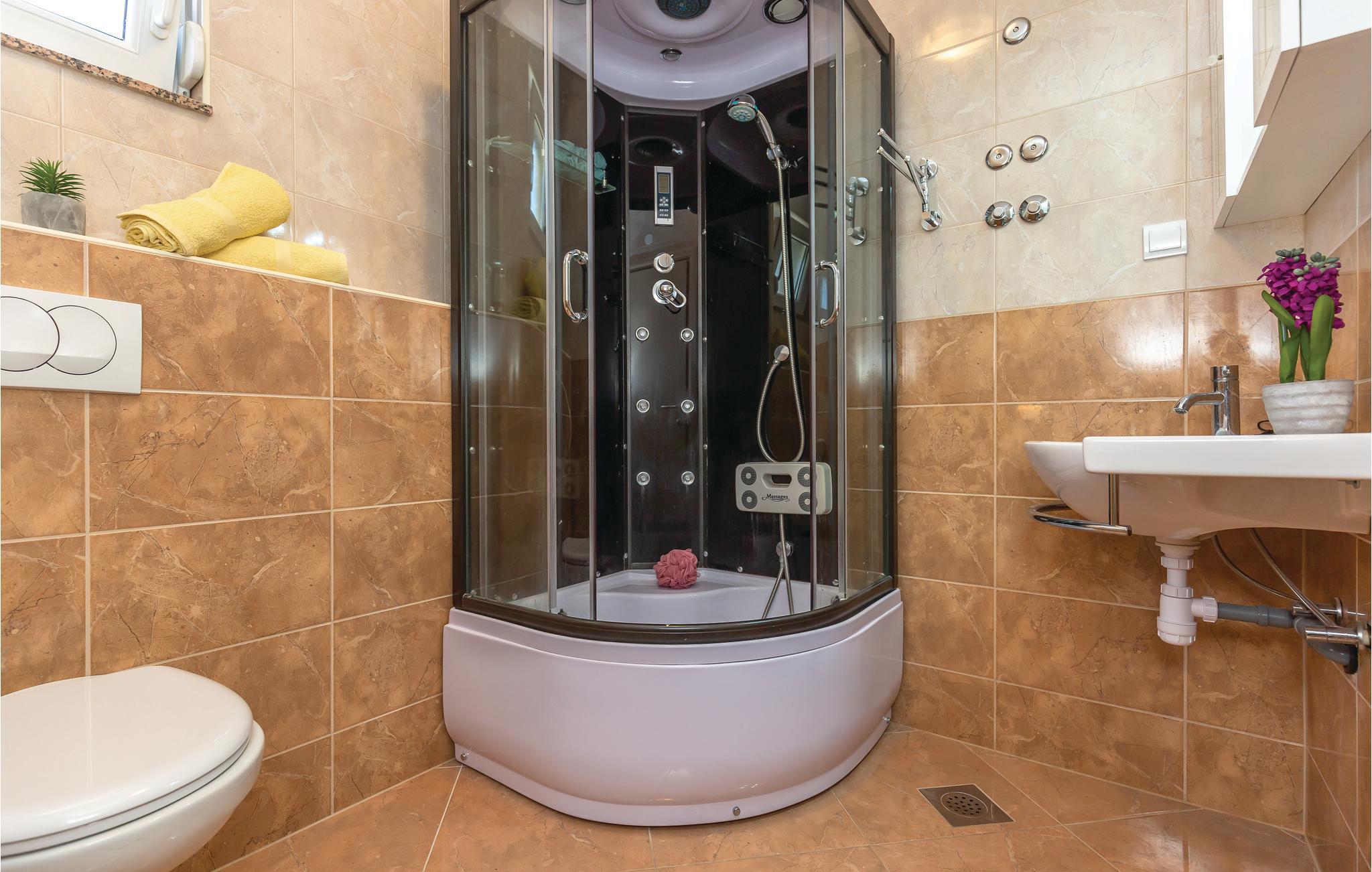 - WC mit warmem und kaltem Wasser, Dusche