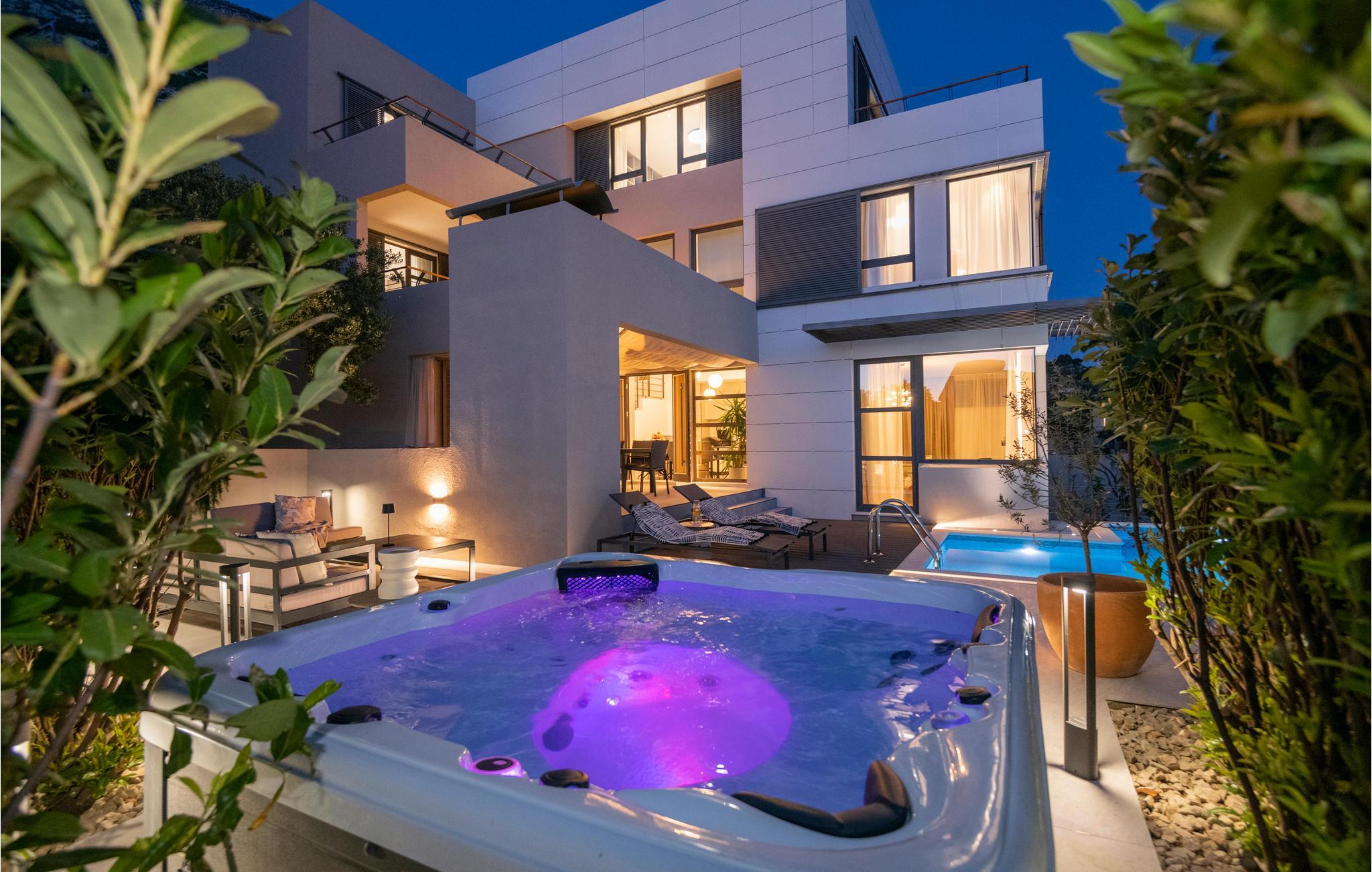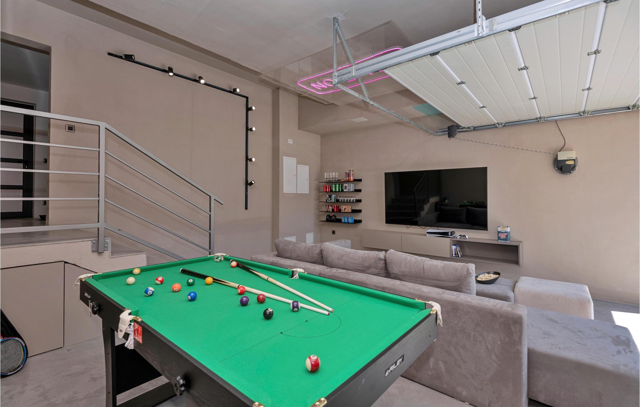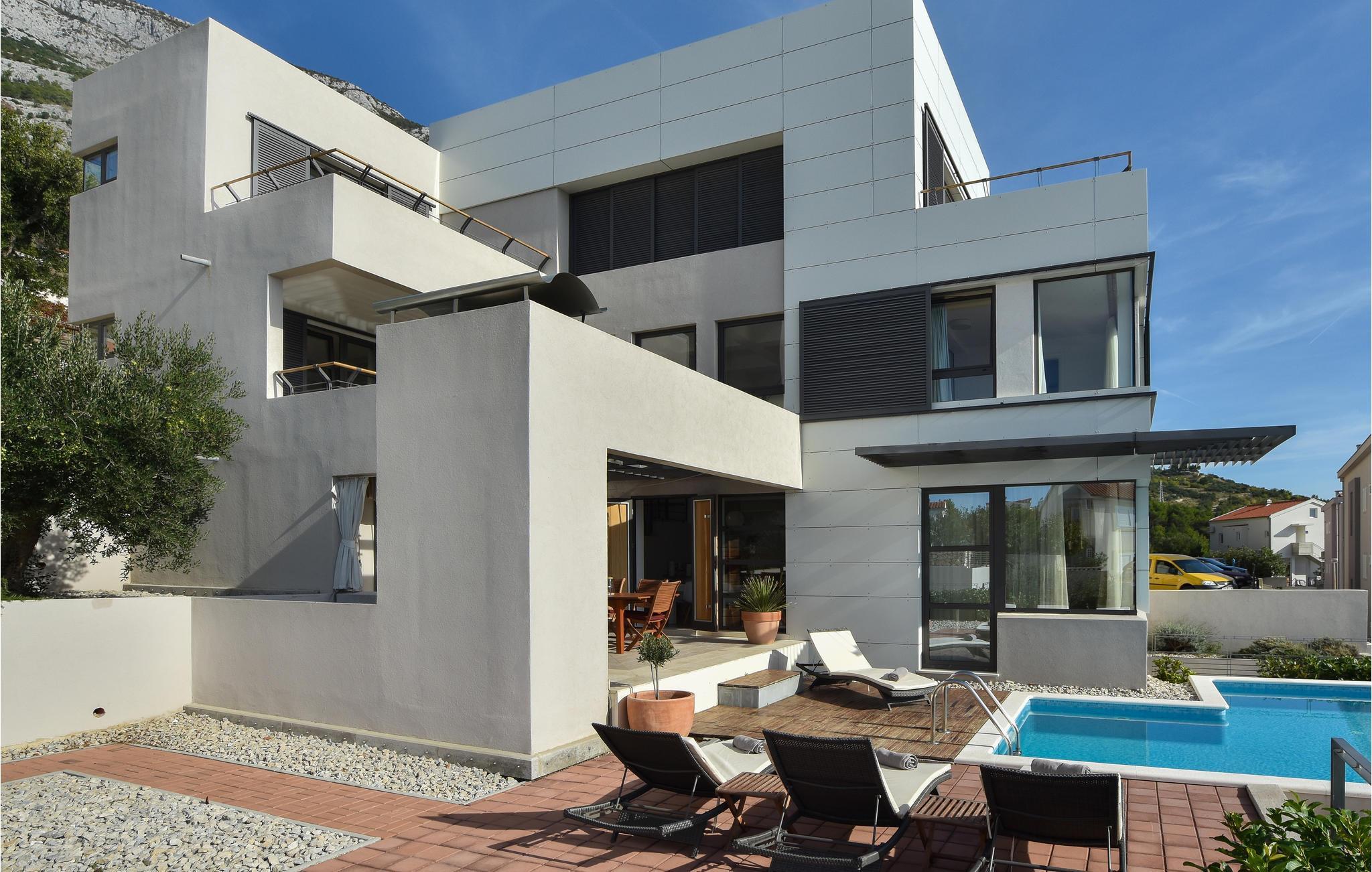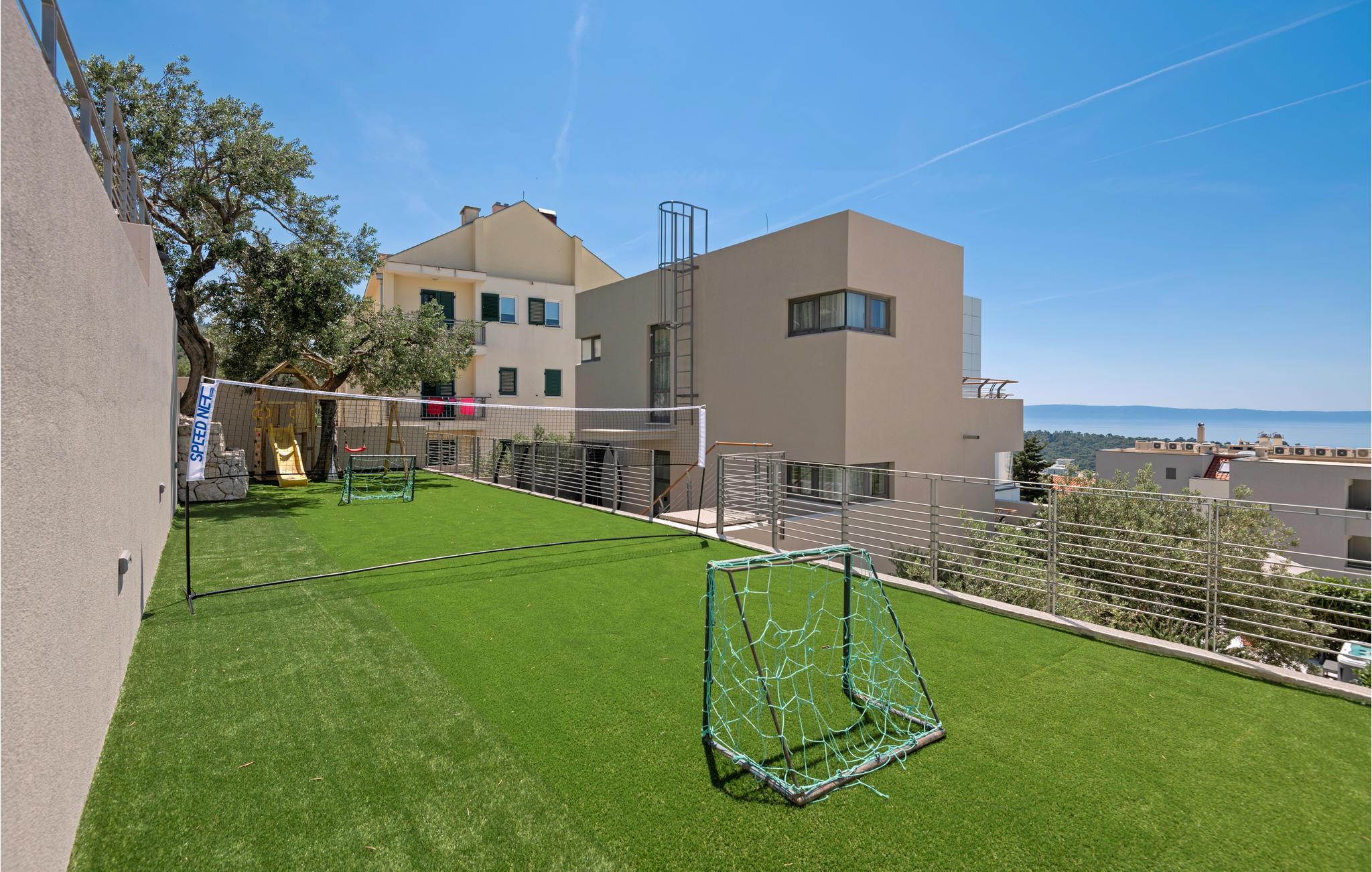 Dieses riesige Anwesen bietet auch größeren Gruppen viel Platz für Ruhe und Beisammensein. Das Ferienhaus befindet sich oberhalb des Zentrums von Makarska und wird Sie mit Qualität und Komfort sowie Ausstattung und Meerblick begeistern. Der geräumige und sehr ansprechende Innenraum wird durch einen wunderschön dekorierten Außenbereich ergänzt. Hier werden Sie die Natur genießen! Auf den fünf Terrassen werden Sie wunderbare Tage verbringen. Frühstücken Sie hier gemeinsam, zelebrieren Sie gemeinsame Grillabende, oder lassen Sie den Tag bei einem Glas dalmatischen Wein ausklingen, während Sie den wundervollen Meerblick genießen. An und in Ihrem beheizten Pool werden Sie viele schöne Stunden verbringen. Entspannen Sie auf einer der Sonnenliegen oder im Whirlpool, während die Kinder im Pool planschen. Im Untergeschoss gibt es eine Sauna sowie Fitness- und Unterhaltungsmöglichkeiten wie Billard, Tischfußball und Tischtennis und eine Playstation 5 für Groß und Klein. Oberhalb des Ferienhauses können Die Kinder viel Zeit auf dem Spielplatz, oder bei Fußball und Badminton verbringen. Hier wird Ihnen nie langweilig werden!