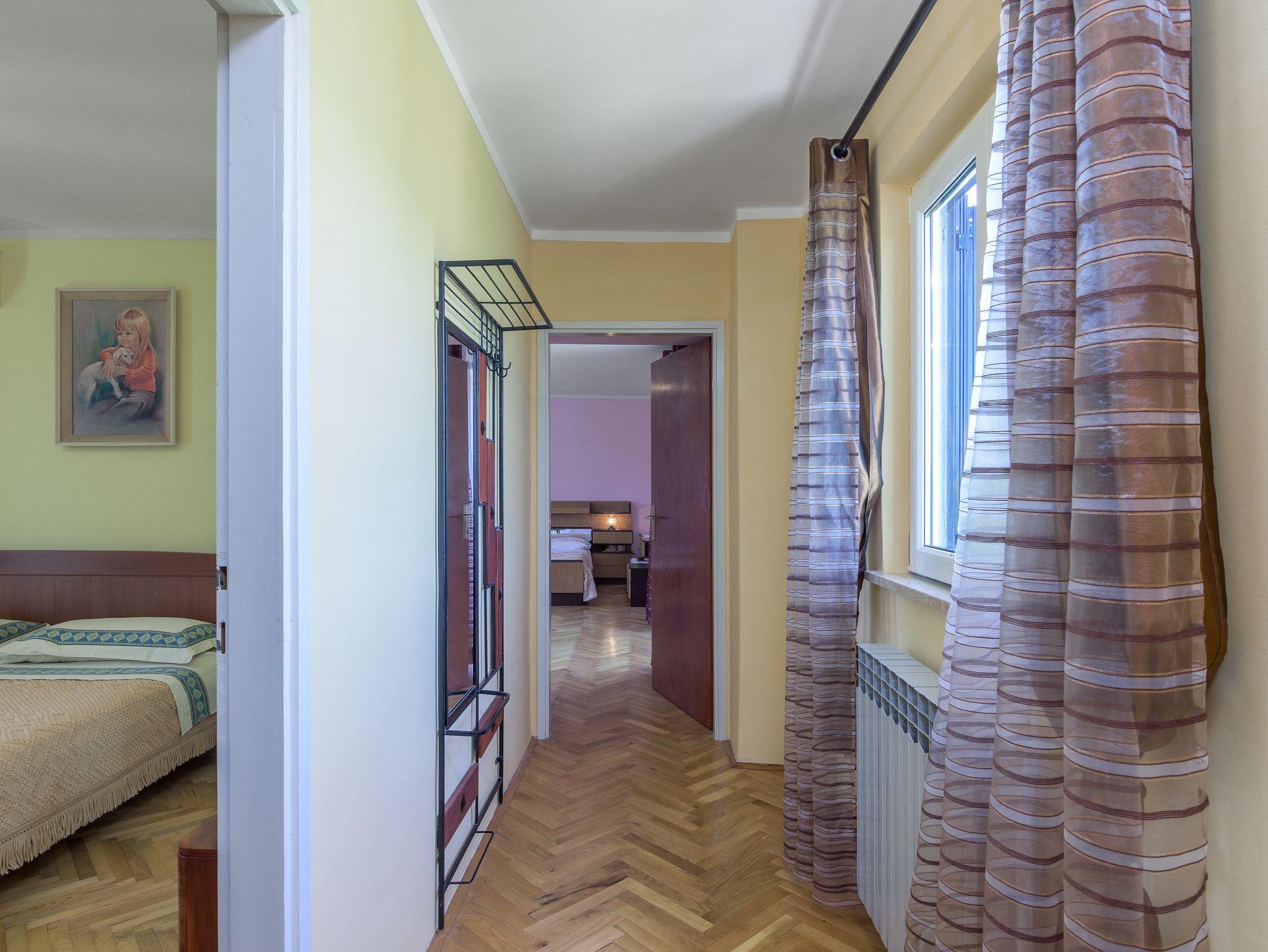 Haus bietet Platz für 6 Gäste. Die Betten sind in Schlafzimmern, die es 2 gibt, und in Esszimmer, innerhalb einer Gesamtfläche von 100m2, angeordnet. Die Gäste haben eine eigene Terrasse zur Verfügung, auf der sie in warmen Sommernächten genießen können. Für vollen Genuss und Entspannung gibt es einen privaten Grill für Gäste dieser Unterkunft. IM PREIS INBEGRIFFEN: Kurtaxe, Endreinigung, Klimatisierung, Zentralheizung, Parkplatz, Internet, Bügeleisen, Bügelbrett, Föhn. VERBINDLICHE ZUSÄTZLICHE KOSTEN: Aufzahlung für Kurzaufenthalte (prozentualer Zuschlag pro Nächtigungsanzahl: 30% - 1, 20% - 2, 10% - 3). Die Verfügbarkeit zusätzlicher Dienstleistungen in Ihrem reservierten Termin und die Preise derselben (falls nicht aufgeführt) müssen im Voraus überprüft werden. Zusätzliche Dienstleistungen die in der Zahlungsaufforderung nicht aufgeführt sind werden direkt beim Vermieter bezahlt, angenommen der Gast nutzt auch diese.