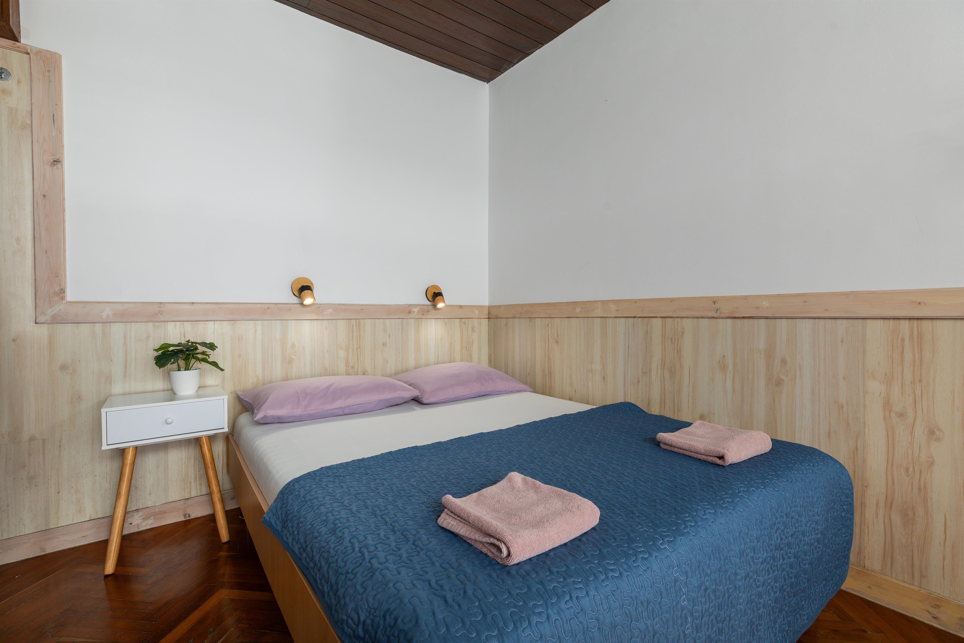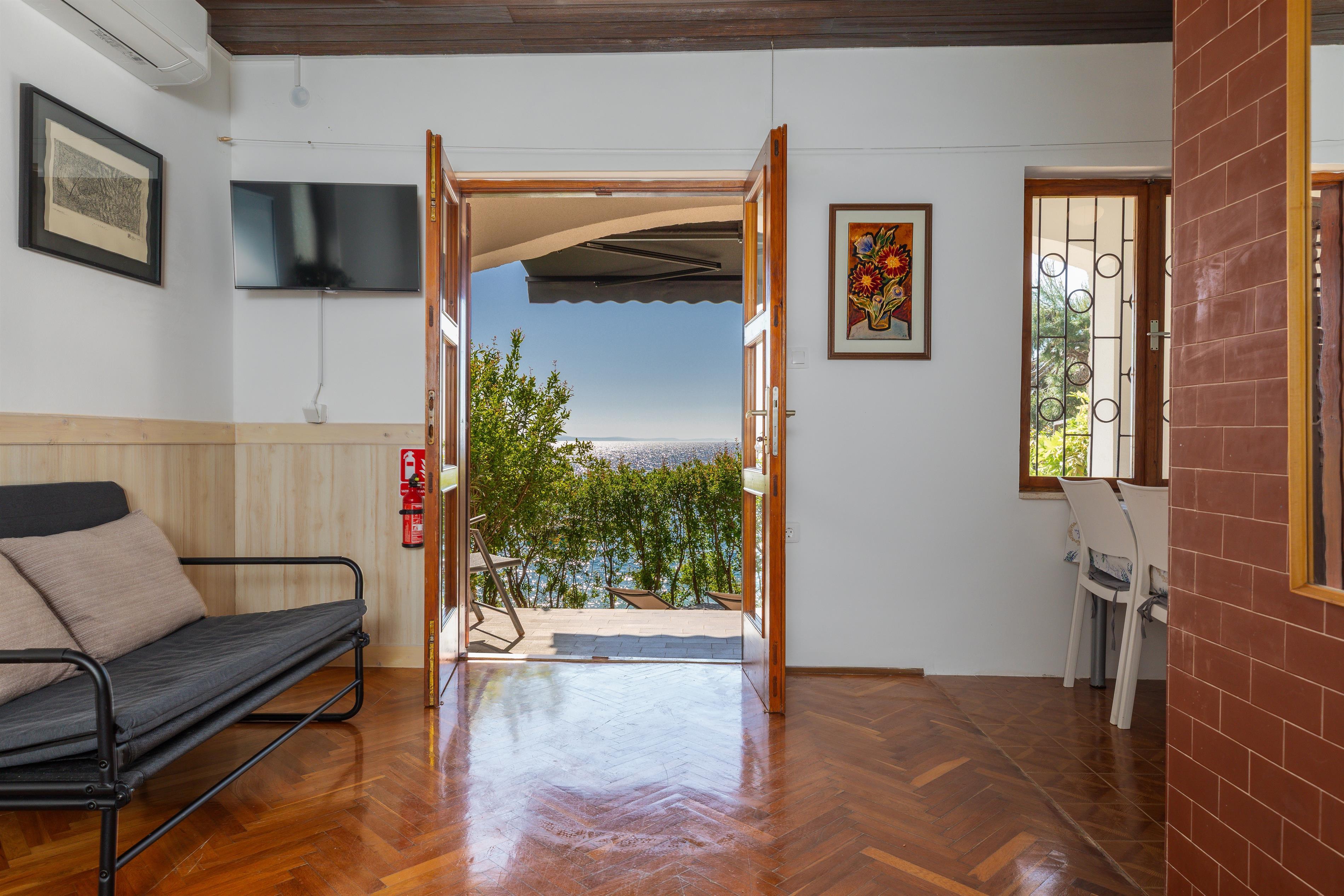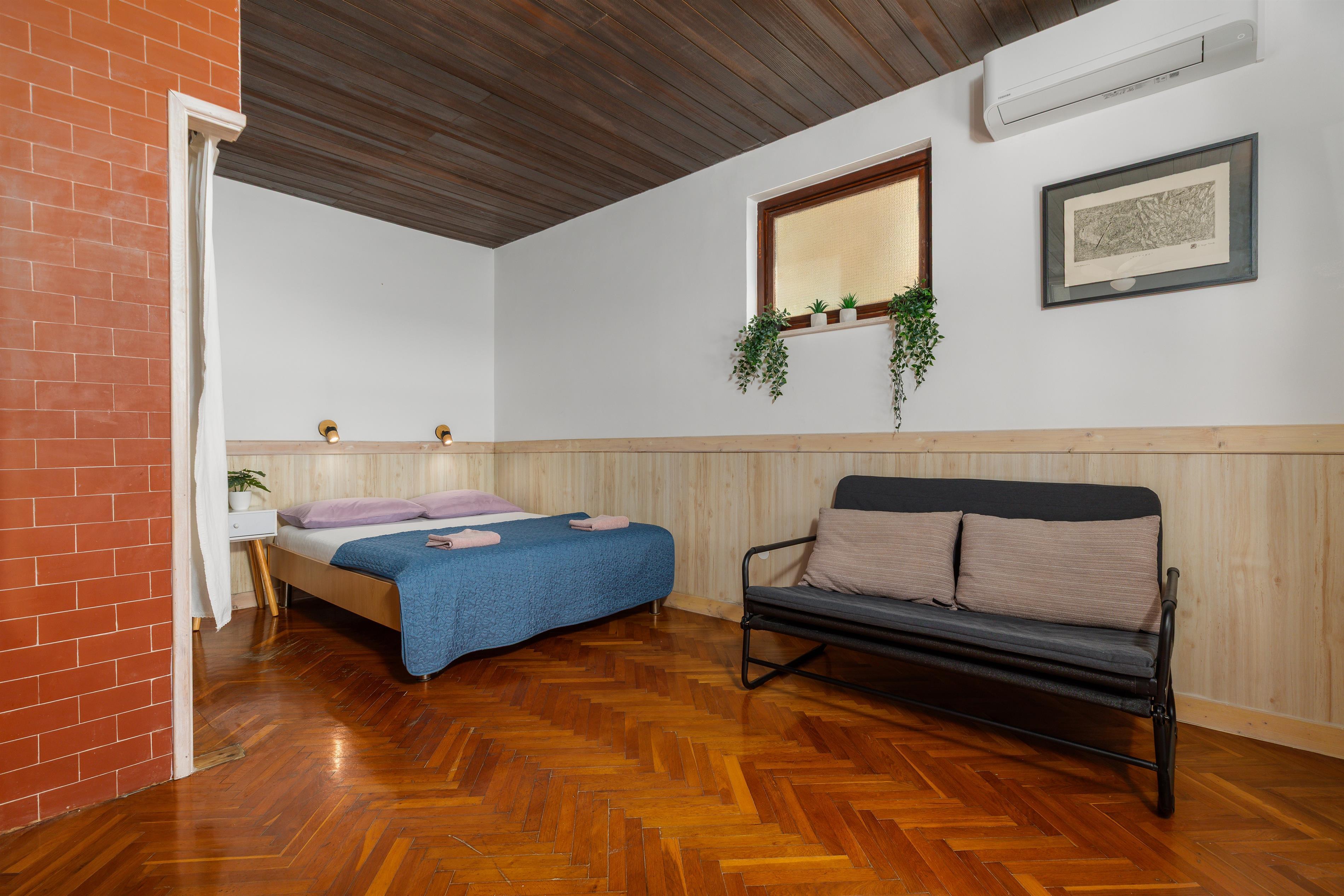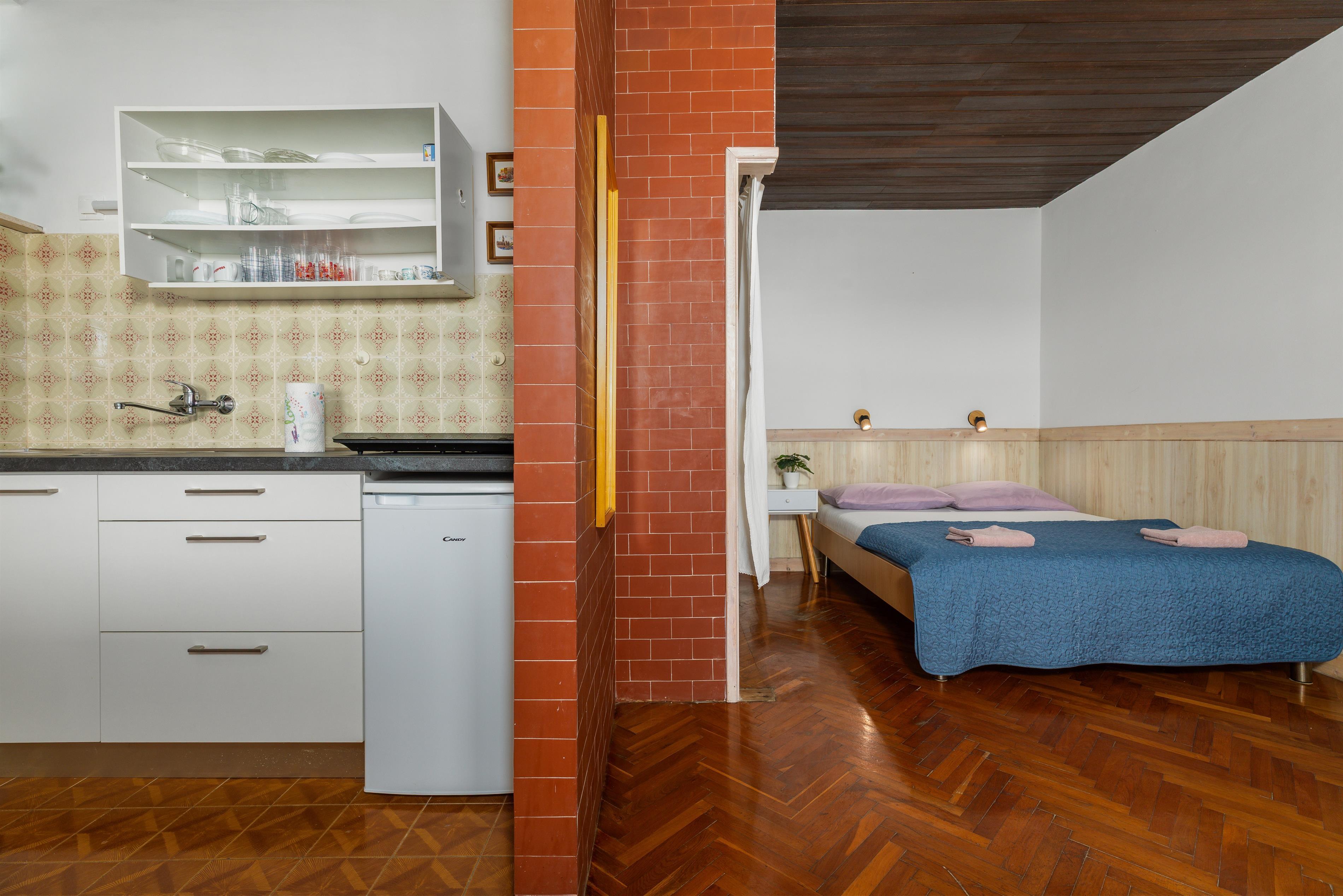 Studio flat can accommodate 2 guests. Beds are situated in 1 sleeping rooms, within 24m2. Guests can use a private terrace to enjoy the warm summer evenings. The studio offers the sea view. Food can be prepared using barbecue which is shared with other guests too. This accommodation unit welcomes pets at an additional charge.