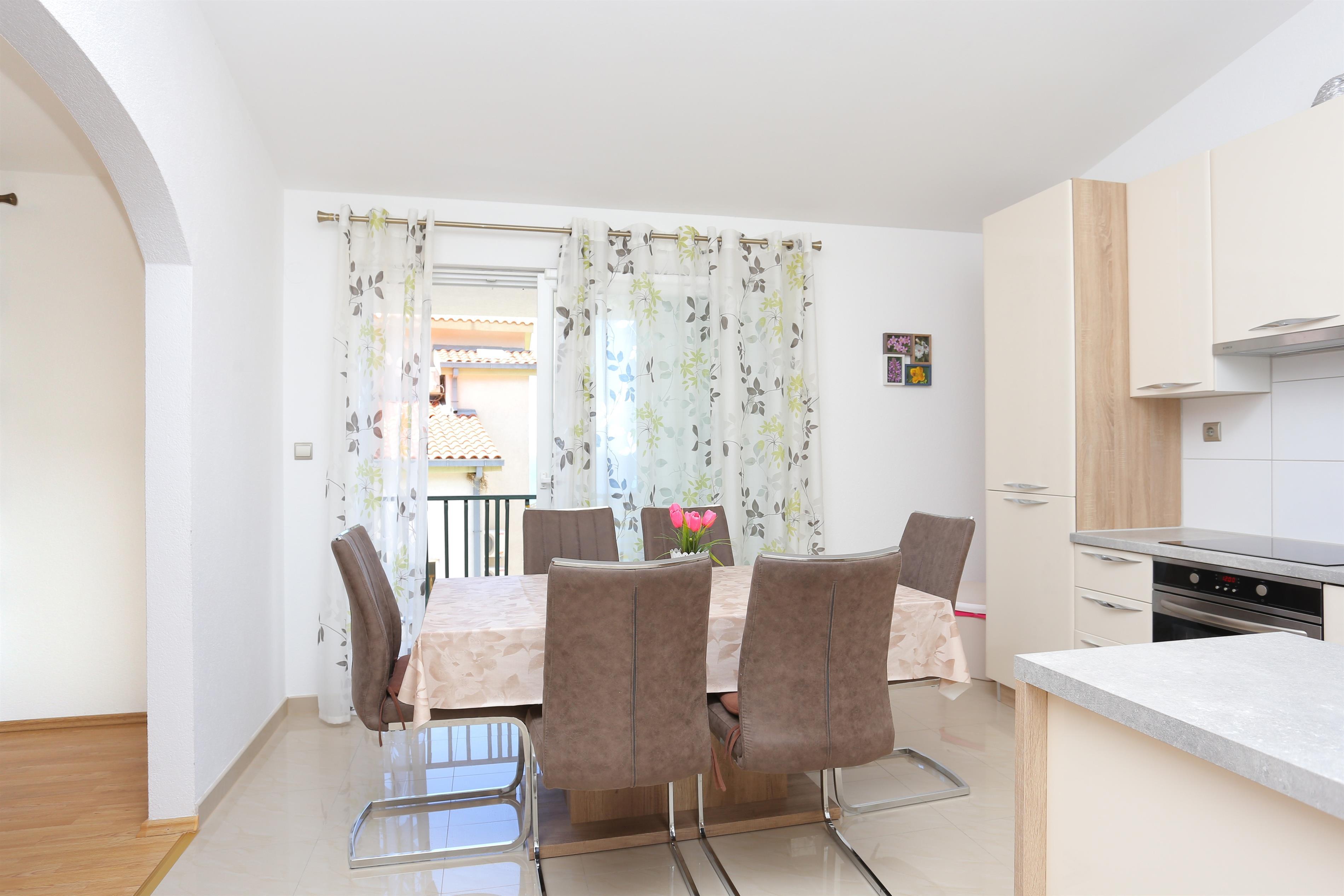 Apartment can accommodate 8 guests. Beds are situated in 3 sleeping rooms, but also in the living room, within 104m2. Guests can use a private balcony to enjoy the warm summer evenings. The apartment offers the sea view. Food can be prepared using barbecue which is shared with other guests too.