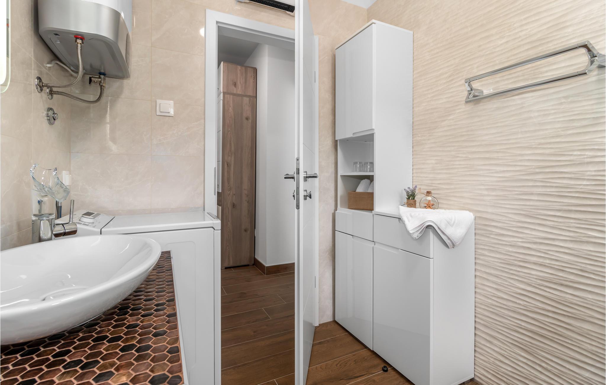 Hierbei handelt es von einer Ferienwohnung im dritten Stock, wodurch Sie einen wunderbaren Meerblick auf die Kvarner Bucht genießen können. Ihnen steht ein schöner Balkon zur Verfügung, wo Sie gemeinsam frühstücken und Ihren ersten Kaffee am Morgen trinken, während Sie die Aussicht genießen und den bevorstehenden Tag planen. Im Innenraum erwartet Sie eine funktionelle Ausstattung und heimelige, sowie gemütliche Einrichtung, die Ihnen den Charme Kroatiens vermitteln kann.