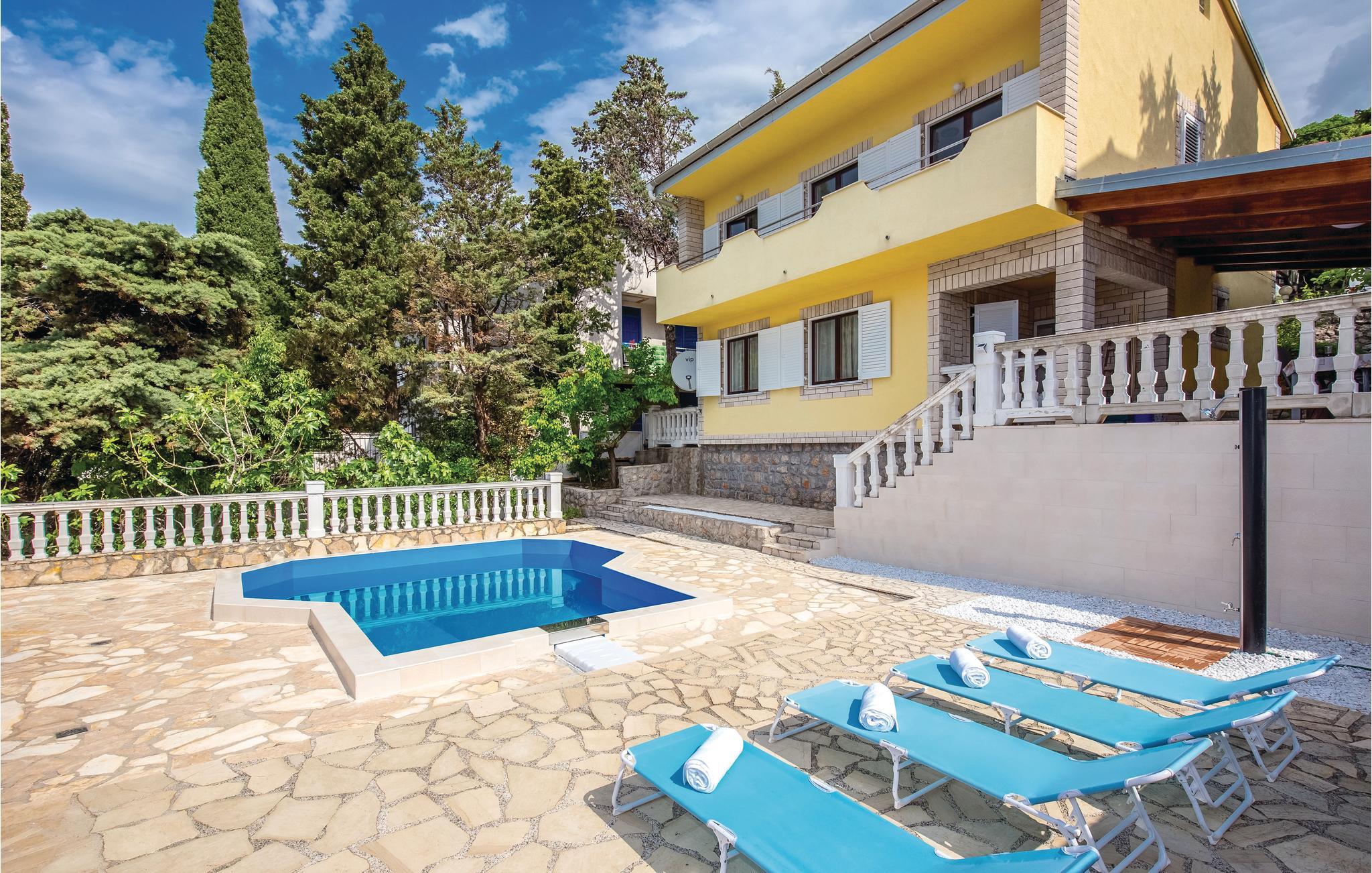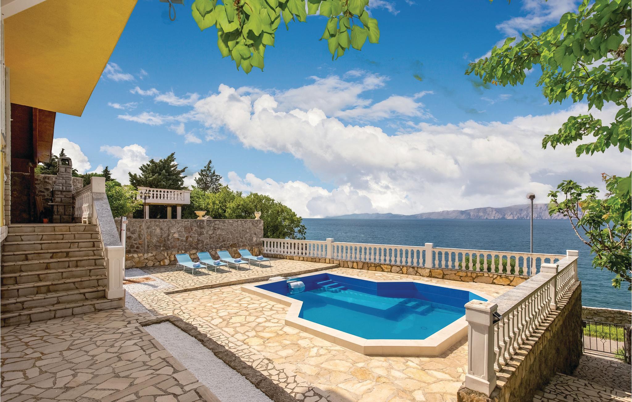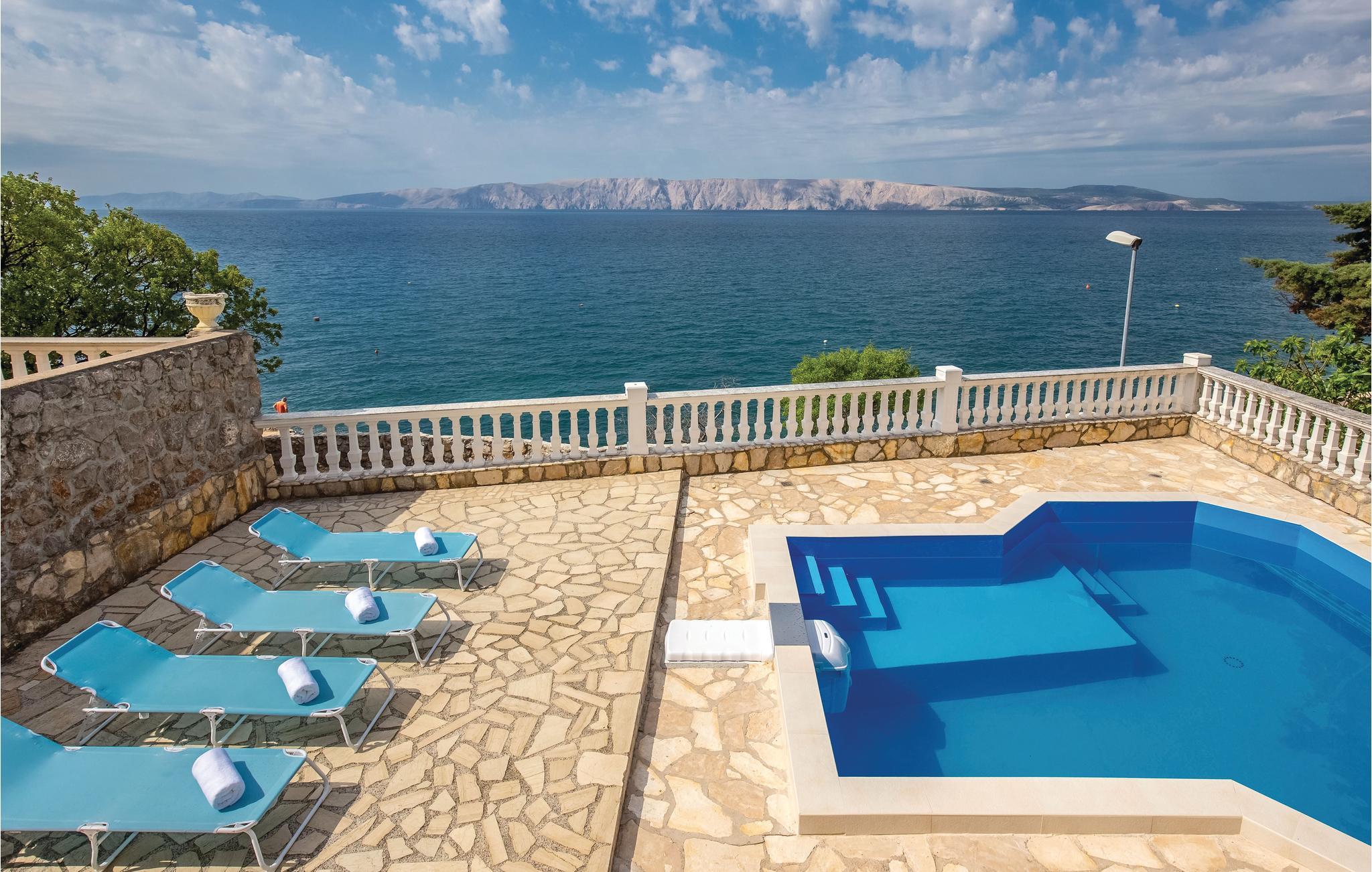 Am Meer in dem kleinen charmanten Ort Smokvica Krmpotska befindet sich dieses schöne Ferienhaus. Weit weg vom Stadttrubel werden Sie hier die nötige Ruhe und Erholung finden. Das Haus besteht aus drei separaten Wohnungen, die extern verbunden sind, so dass Sie die Möglichkeit haben, Ihre Privatsphäre zu genießen. Vor dem Haus, neben dem Pool, gibt es eine große überdachte Terrasse, wo Sie die meiste Zeit verbringen können, ein erfrischendes Getränk genießen oder Köstlichkeiten auf dem Grill zubereiten können. Hier gibt es keine Restaurants und Cafés, aber diese erreichen Sie in ein paar Fahrminuten in Klenovica oder Novi Vinodolski. Besuchen Sie während Ihres Urlaubs die Insel Krk, Crikvenica und nahe gelegene Nationalparks.