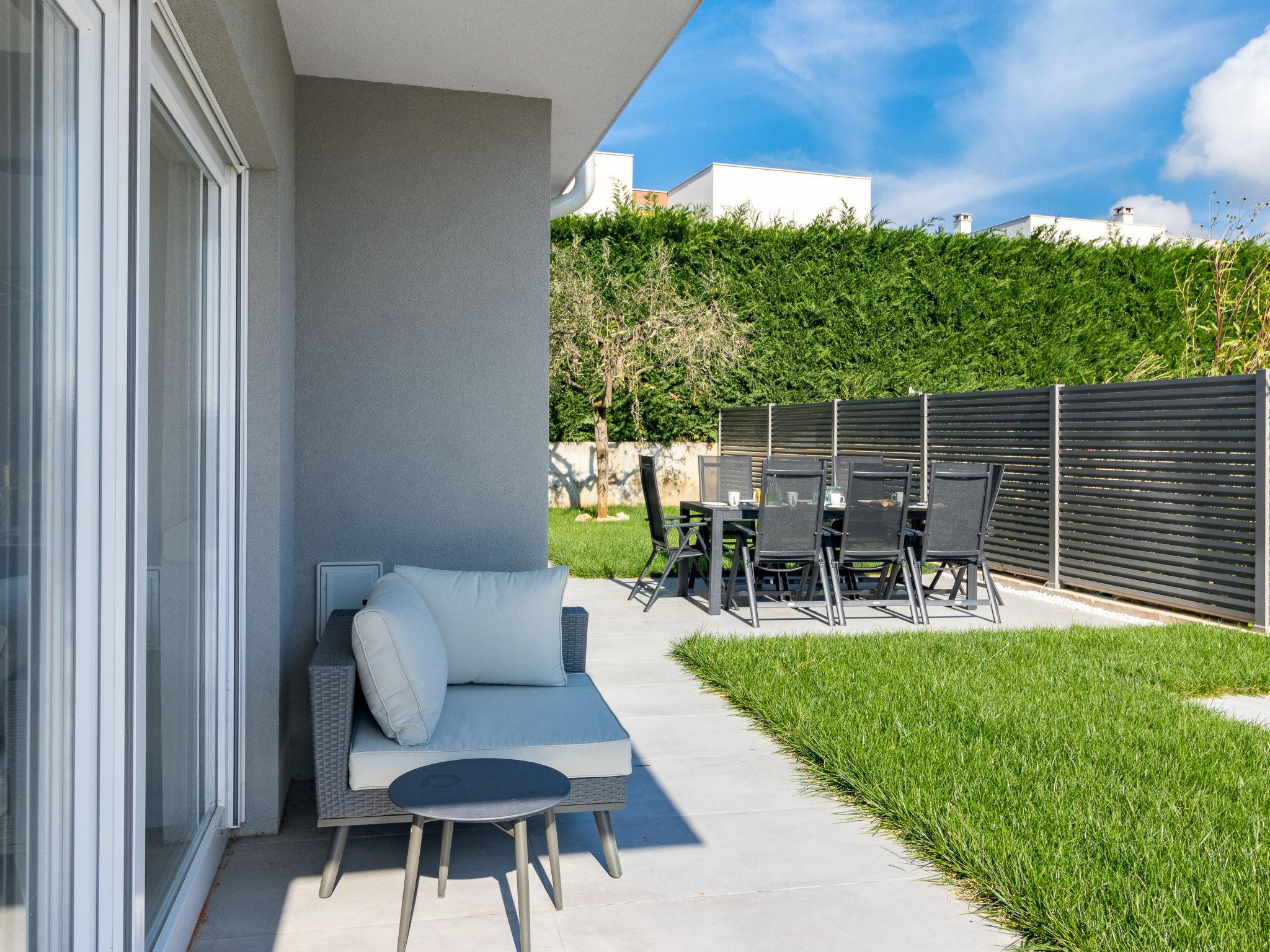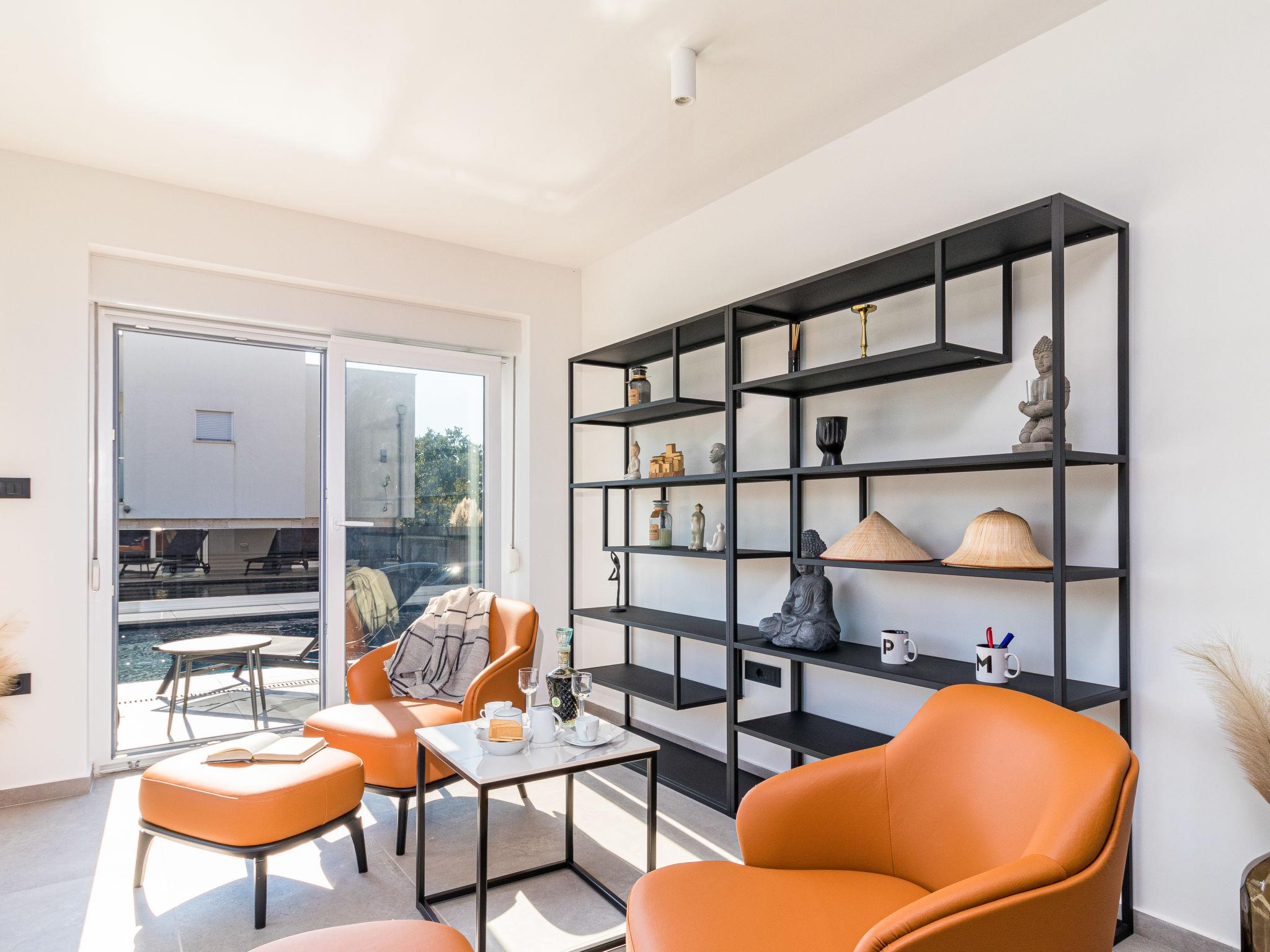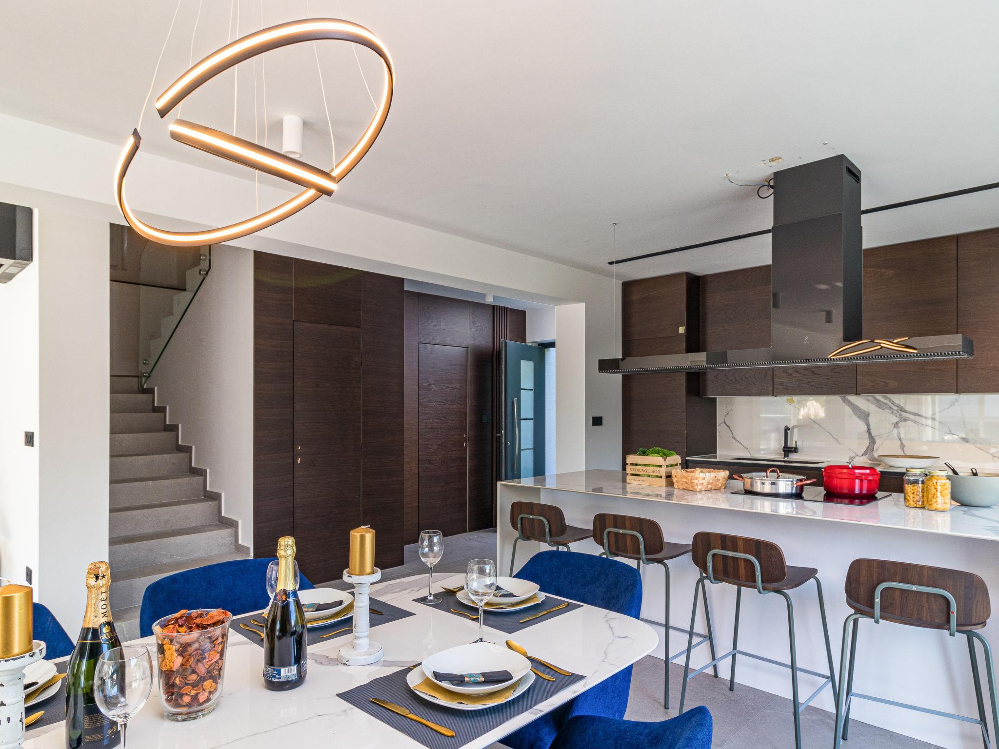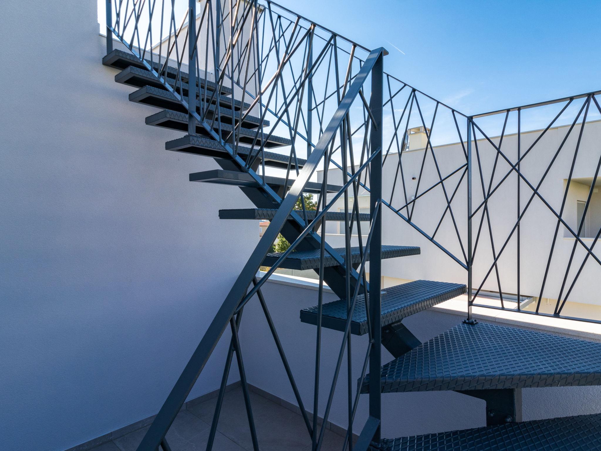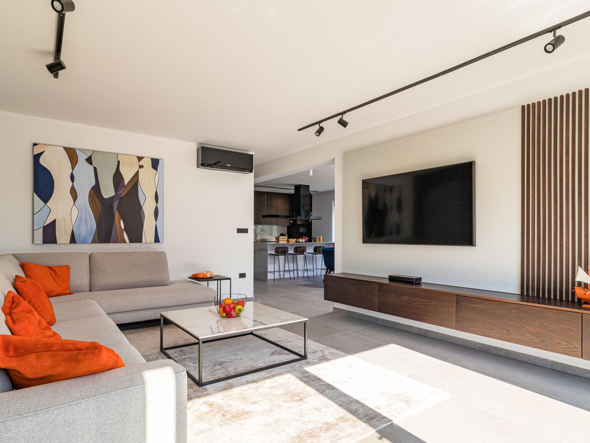 Modern, beautiful villa "Athos", 2 storeys, built in 2020. In the hamlet Karigador 4 km from the centre of Novigrad, in a quiet, sunny position, from the sea, 200 m from the beach. Private: property 550 m2 (fenced), lawn 300 m2, swimming pool angular, heated (8 x 4 m, depth 150 cm, seasonal availability: 01.Jan. - 31.Dec.) with internal staircase. Outdoor shower, arbour (16 m2), pergola (16 m2), garden furniture, barbecue. In the house: internet access, hot tub, roof terrace, burglar alarm system, washing machine. Airport transfer (extra). Parking (for 2 cars) at the house on the premises. Shop 100 m, supermarket 4 km, restaurant, café 100 m, bus stop 400 m, sandy beach, rocky beach 200 m. Children's playground 100 m. Please note: suitable for families. The owner does not accept any youth groups. Swimming pool with hydromassage. It is necessary to announce 7 days in advance if the pool heating is required. Hot tub for 5 persons, garden furniture are situated on the roof terrace (80 m2, exterior staircase).