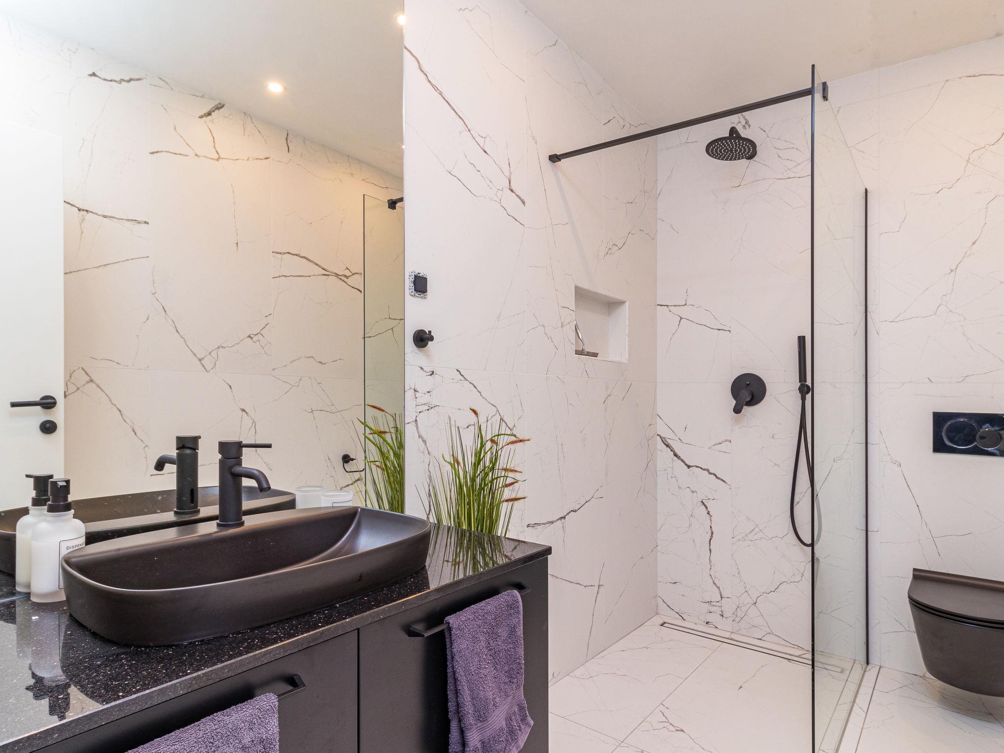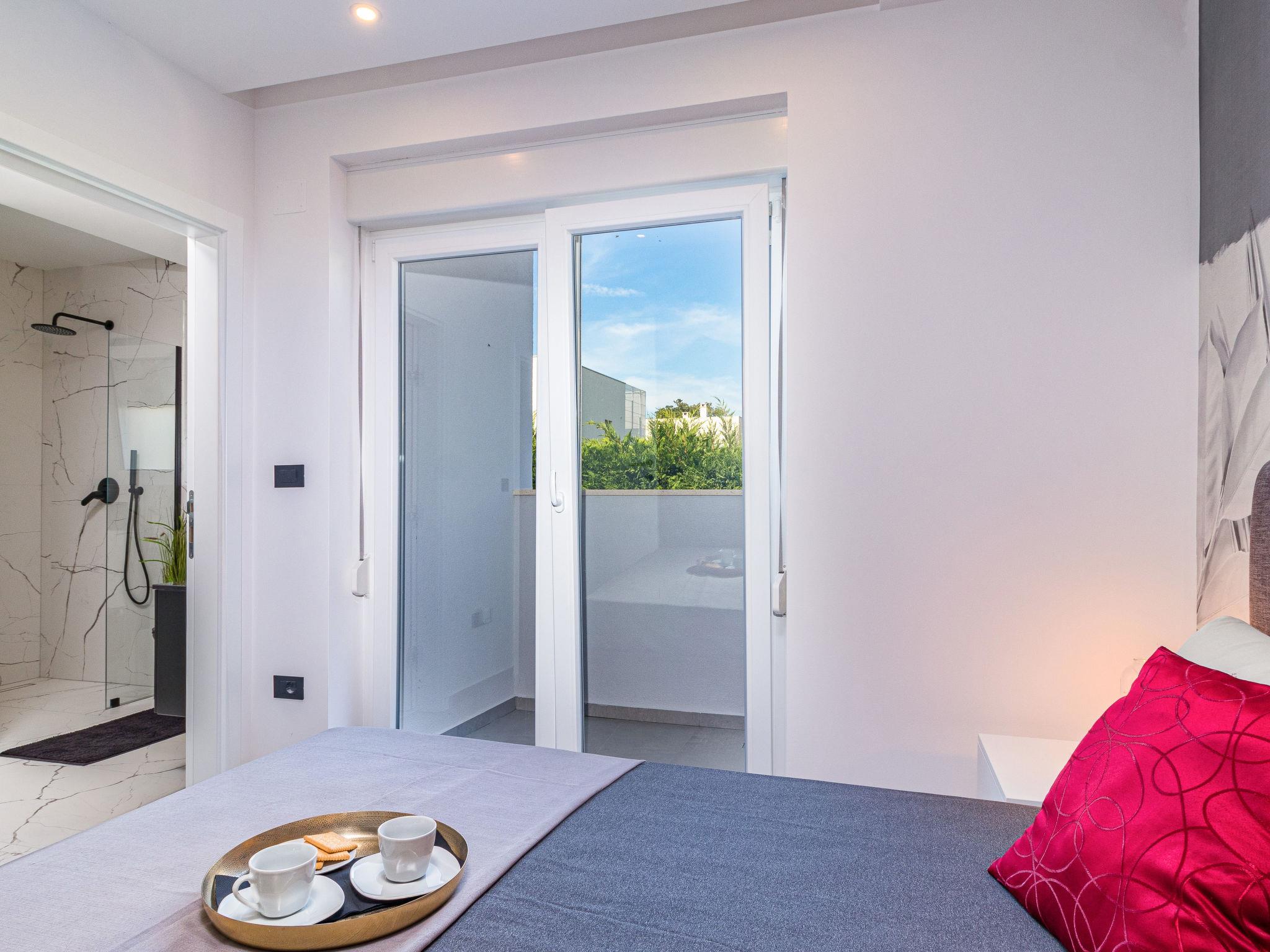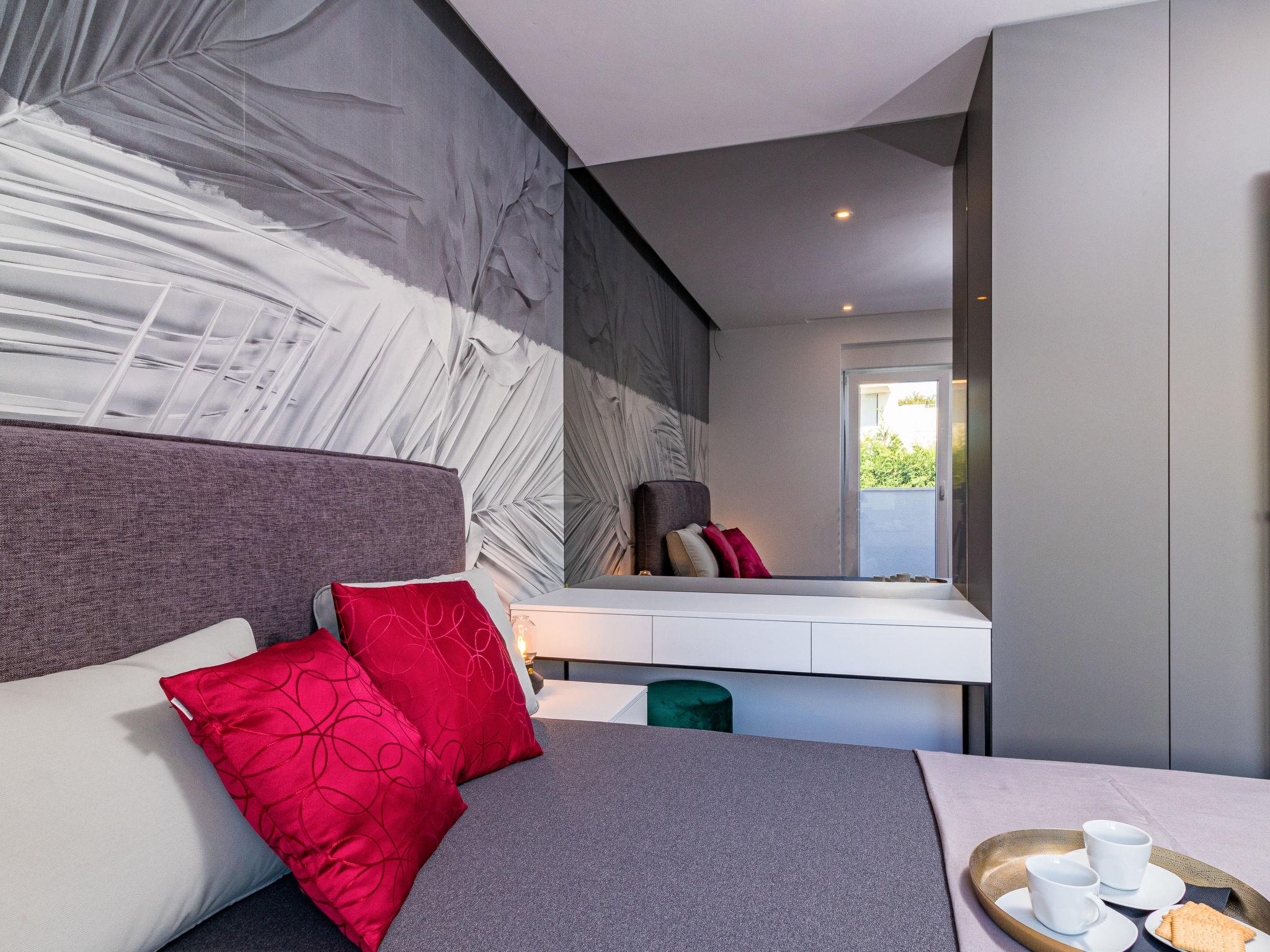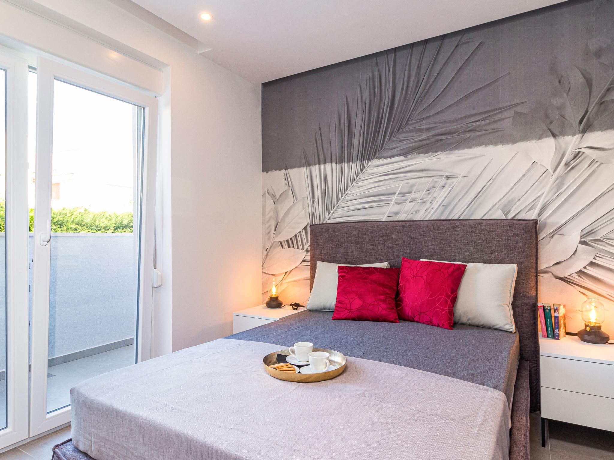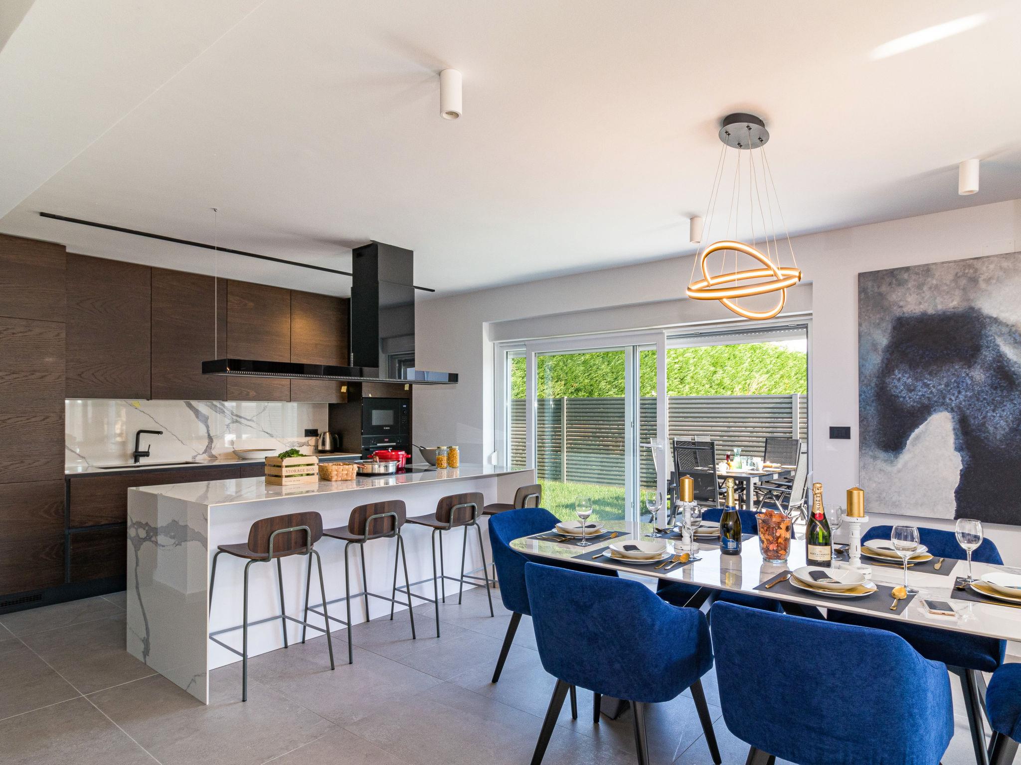 Modern, beautiful villa "Athos", 2 storeys, built in 2020. In the hamlet Karigador 4 km from the centre of Novigrad, in a quiet, sunny position, from the sea, 200 m from the beach. Private: property 550 m2 (fenced), lawn 300 m2, swimming pool angular, heated (8 x 4 m, depth 150 cm, seasonal availability: 01.Jan. - 31.Dec.) with internal staircase. Outdoor shower, arbour (16 m2), pergola (16 m2), garden furniture, barbecue. In the house: internet access, hot tub, roof terrace, burglar alarm system, washing machine. Airport transfer (extra). Parking (for 2 cars) at the house on the premises. Shop 100 m, supermarket 4 km, restaurant, café 100 m, bus stop 400 m, sandy beach, rocky beach 200 m. Children's playground 100 m. Please note: suitable for families. The owner does not accept any youth groups. Swimming pool with hydromassage. It is necessary to announce 7 days in advance if the pool heating is required. Hot tub for 5 persons, garden furniture are situated on the roof terrace (80 m2, exterior staircase).