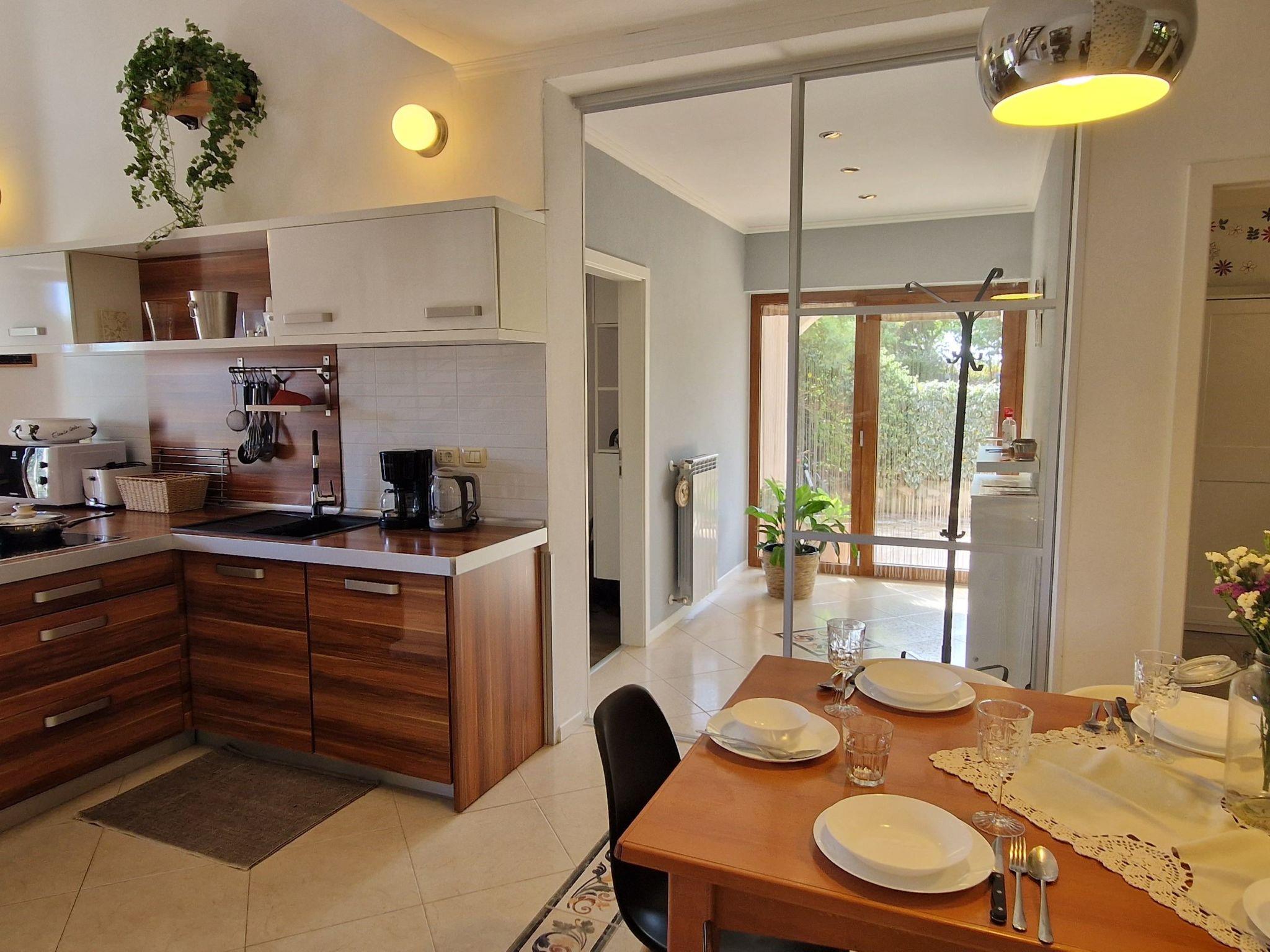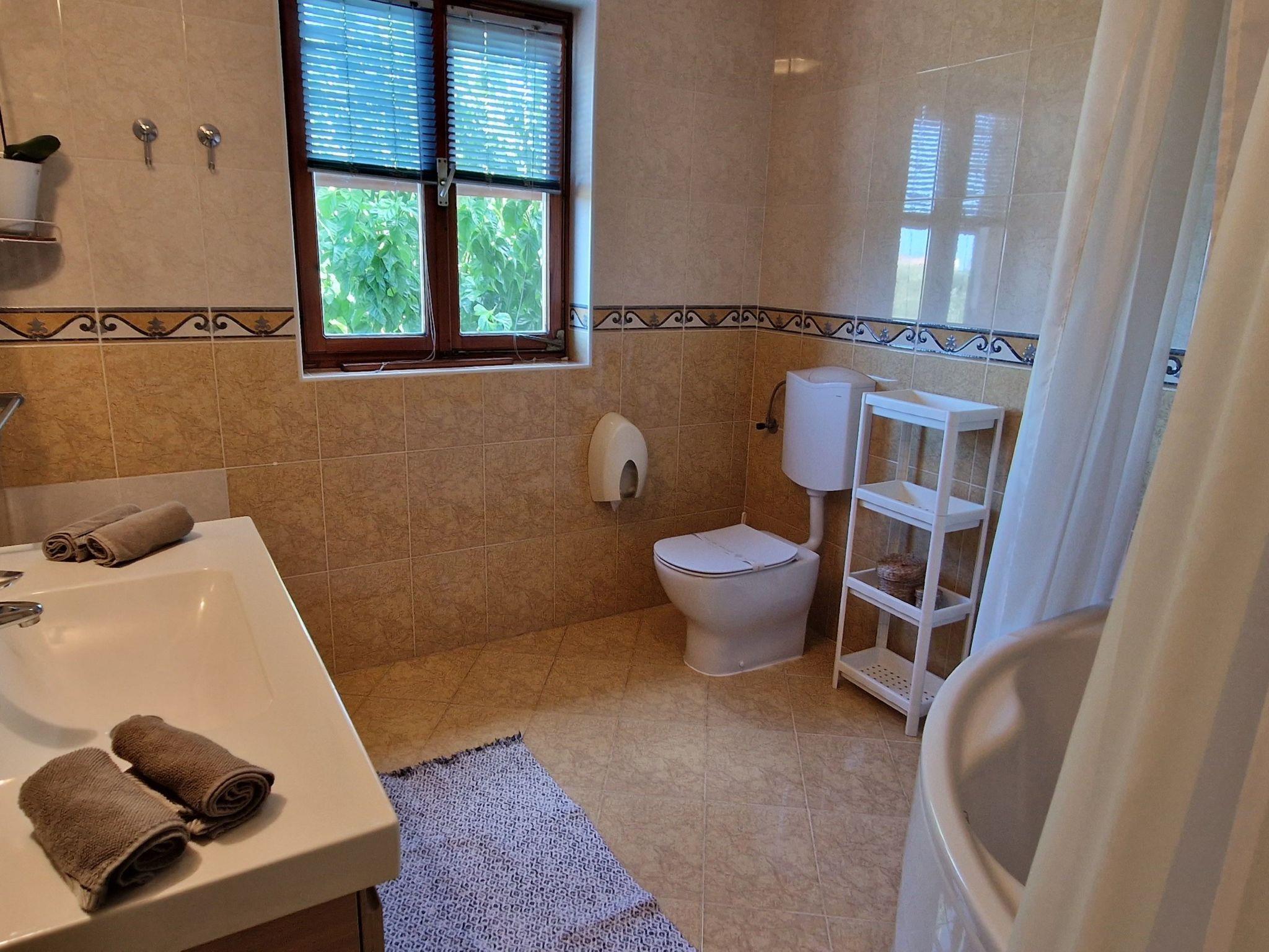 The villa has 4 bedrooms, 3 bathrooms, a large living room with a beautiful table. The kitchen is well equipped with everything you need; oven, stove, dishes, dishwasher, freezer, etc. The three bedrooms are on the ground floor, as are the 2 bathrooms. The fourth bedroom has an artistic touch 'so to speak', located on the first floor of the house, in the gallery, in front of a lovely balcony where you can spend romantic evenings..In addition, the villa has one more floor where you will find the third bathroom, an equally well-equipped kitchen, living room with satellite TV and sofa bed, relaxation room with karaoke and gym equipment.