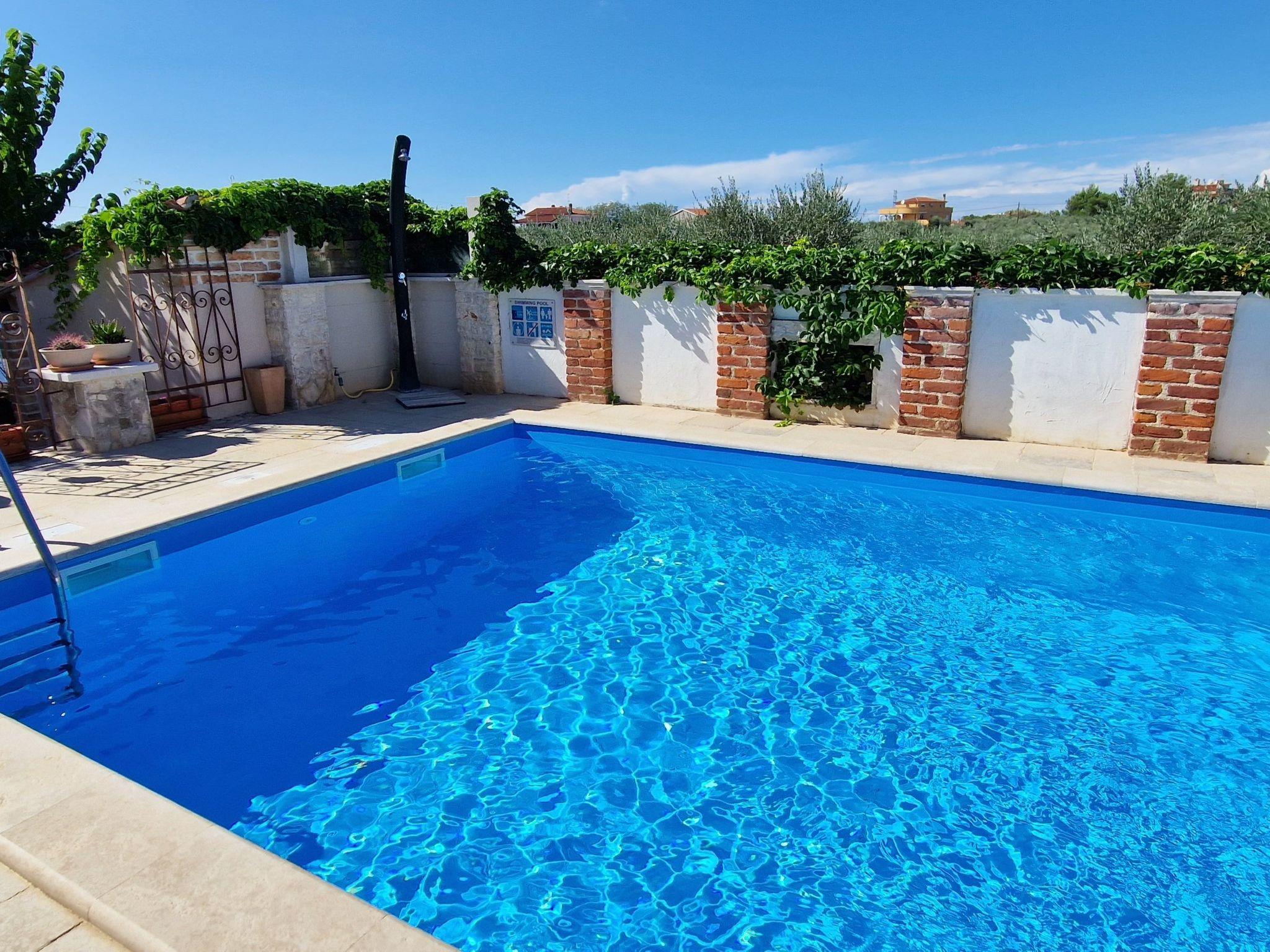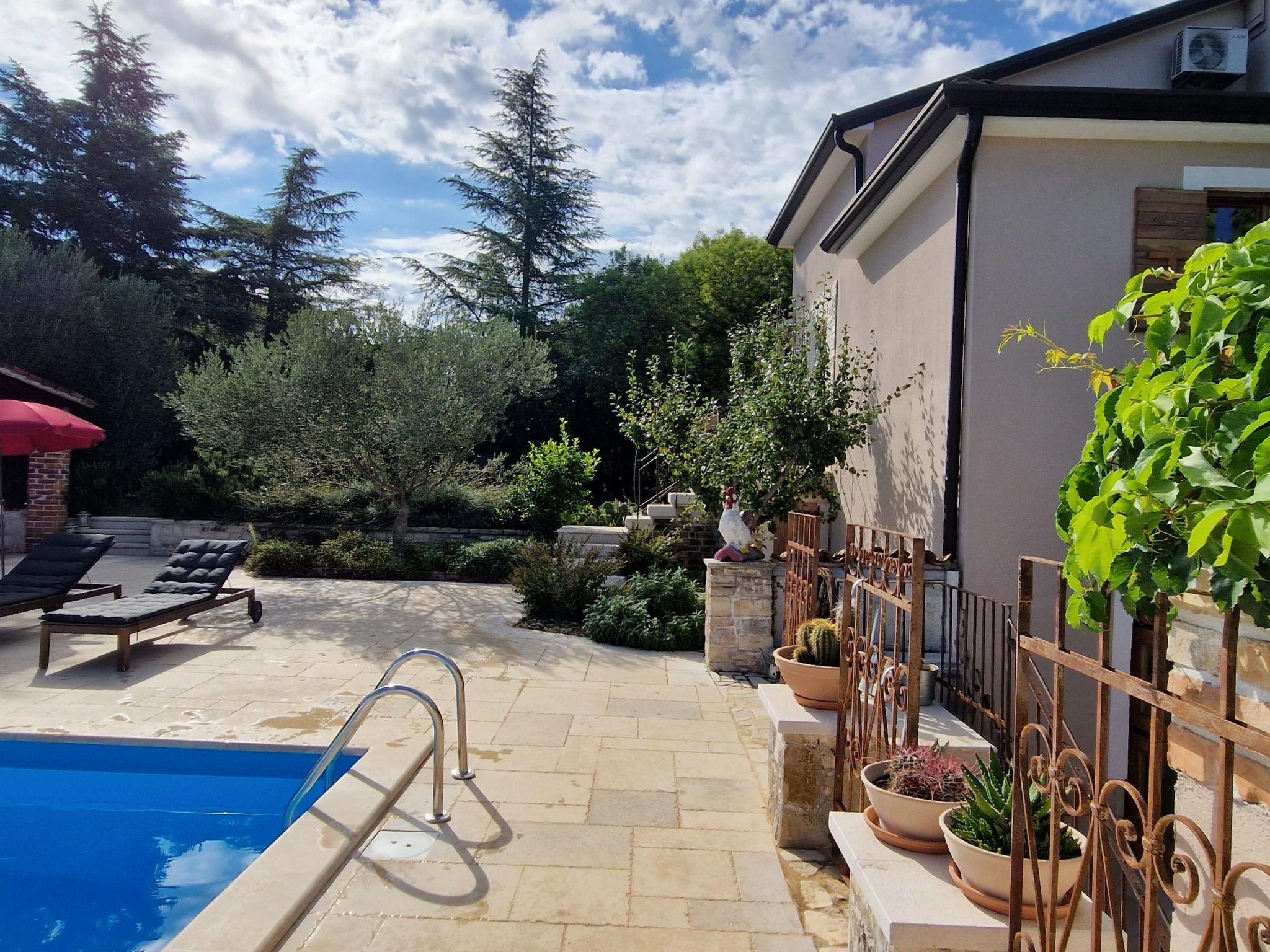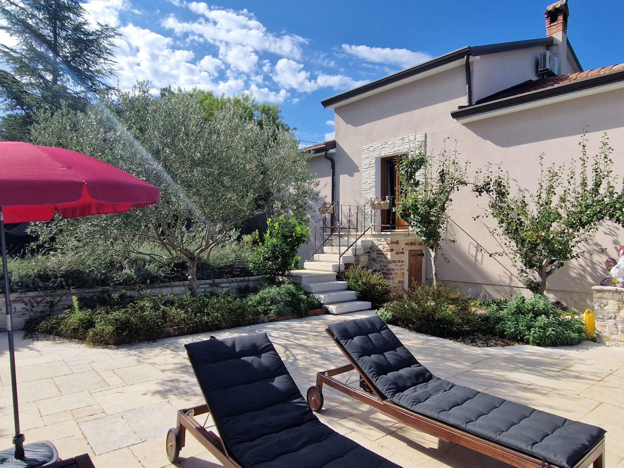 Beautiful villa with a large pool and private garden. Surrounded by greenery in the village of Bužinija, near the forest, surrounded by olive groves and vineyards. Very quiet area. You can reach the town centre, which is 2.5 km away, via a beautiful path through the forest, either on foot or by bicycle. Excellent for families with children and for those who want to enjoy some peace and quiet.