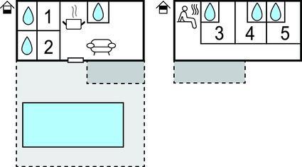 Badezimmer 5m2 (nr. 6) - WC. Warmes und kaltes Wasser. Dusche