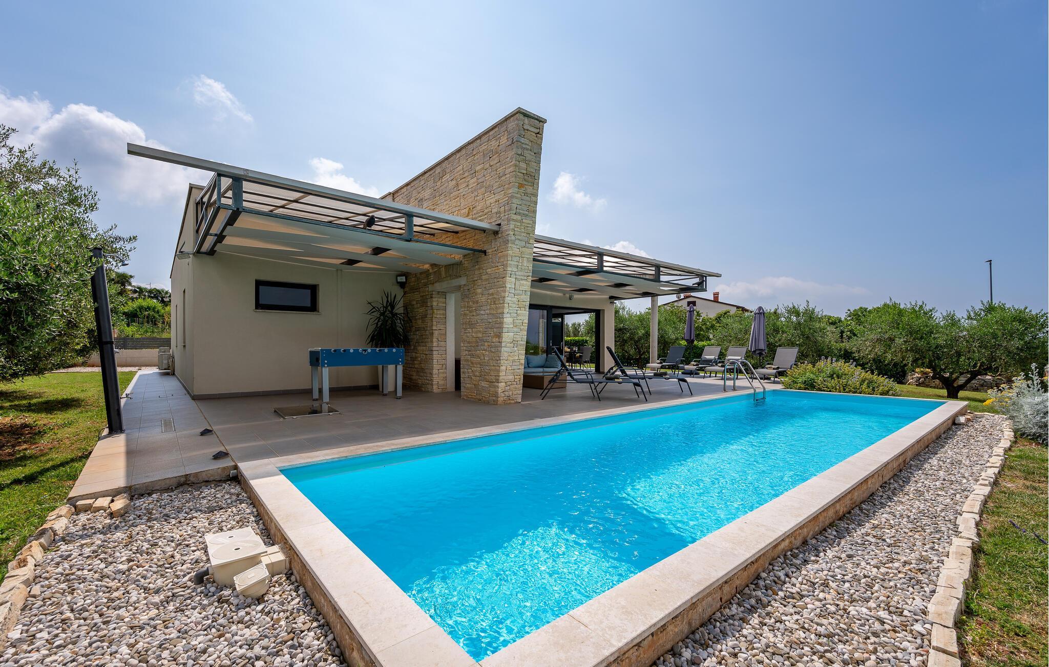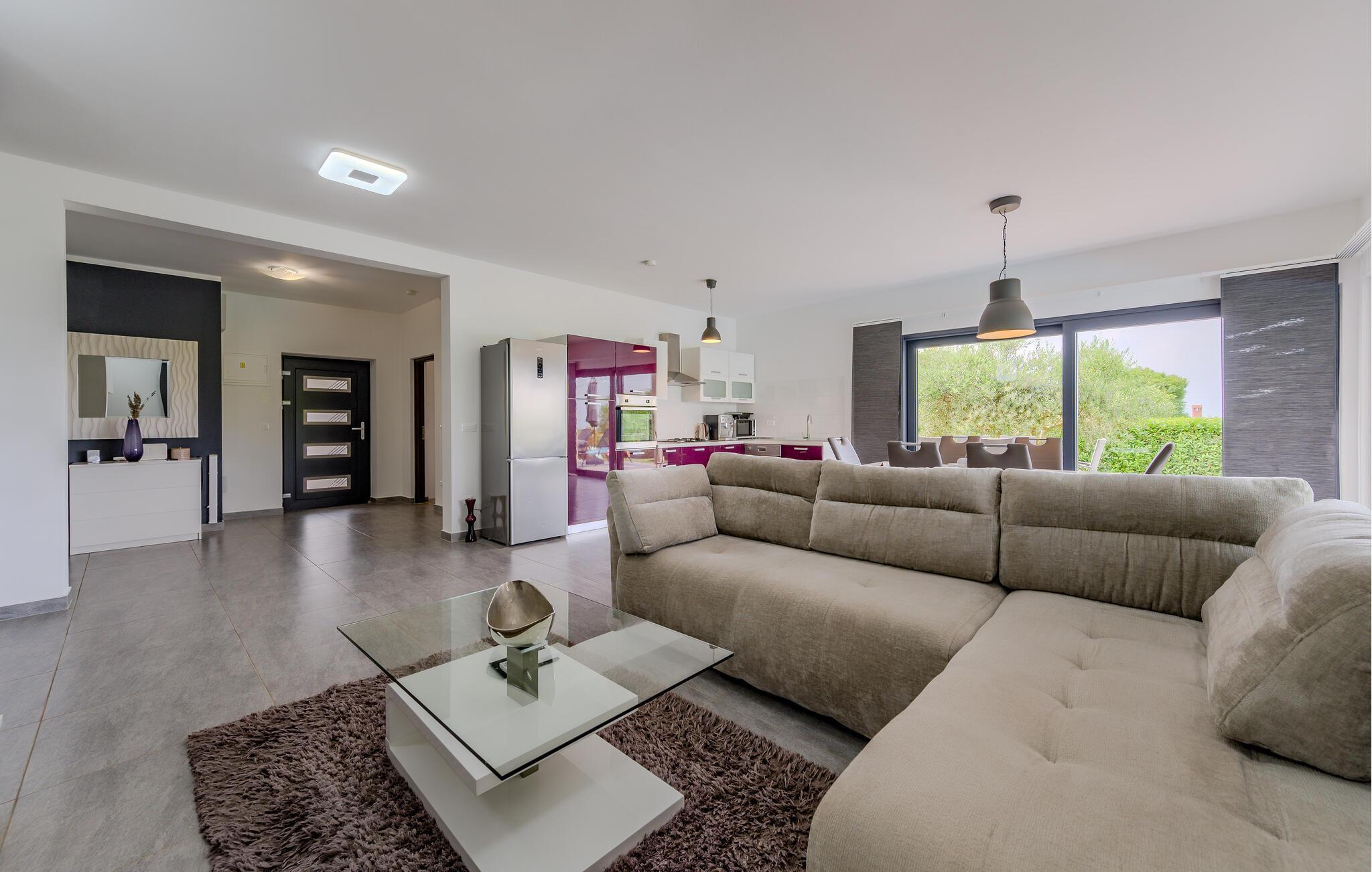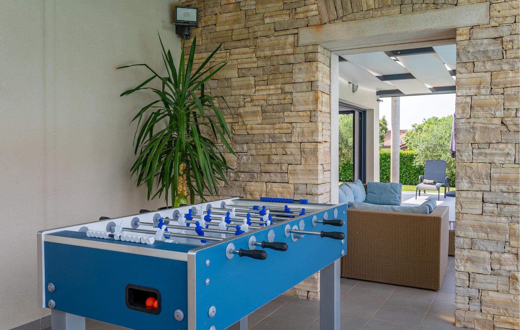 Willkommen in dieser modernen und stilvollen Villa, die Sie mit zahlreichen Extras verwöhnt, die Sie gemeinsam mit der Familie oder guten Freunden genießen können. Der elegante, offene Wohnbereich lädt zu geselligen Kochabenden und behaglichen Mahlzeiten ein. Plaudern Sie bei einem Glas Wein über vergangene Zeiten, spielen Sie Tischfußball oder Billard und machen Sie es sich abends auf der großzügigen Sofalandschaft gemütlich.