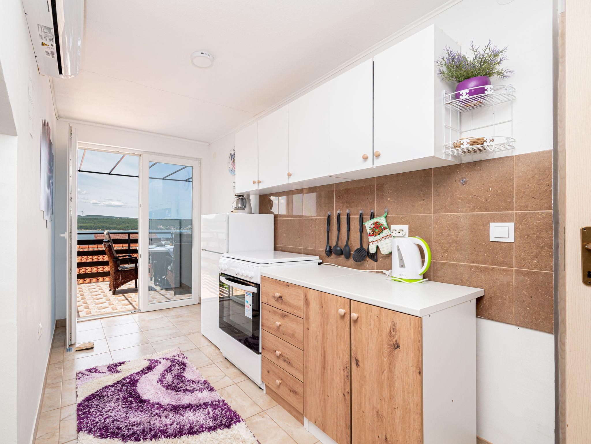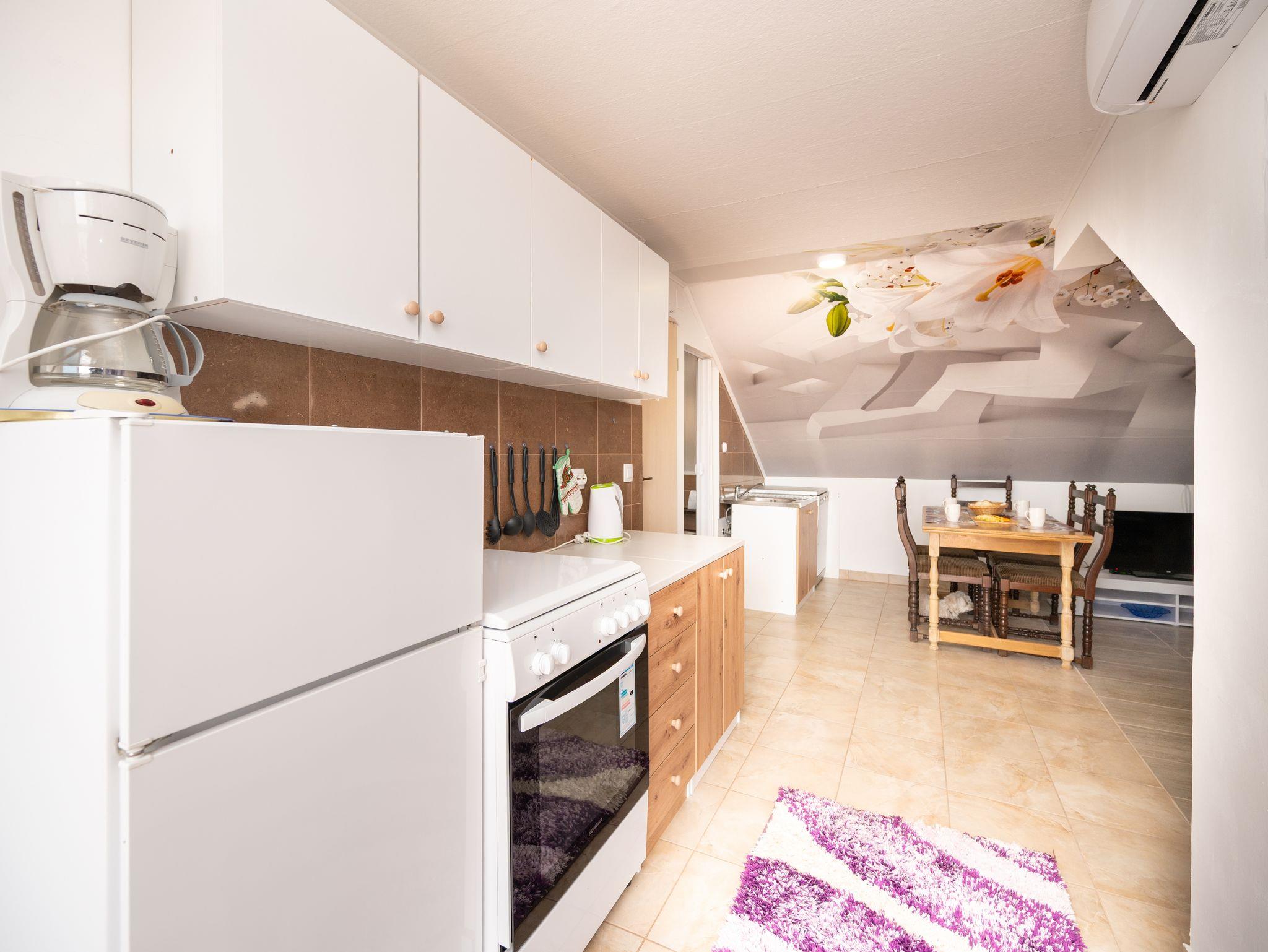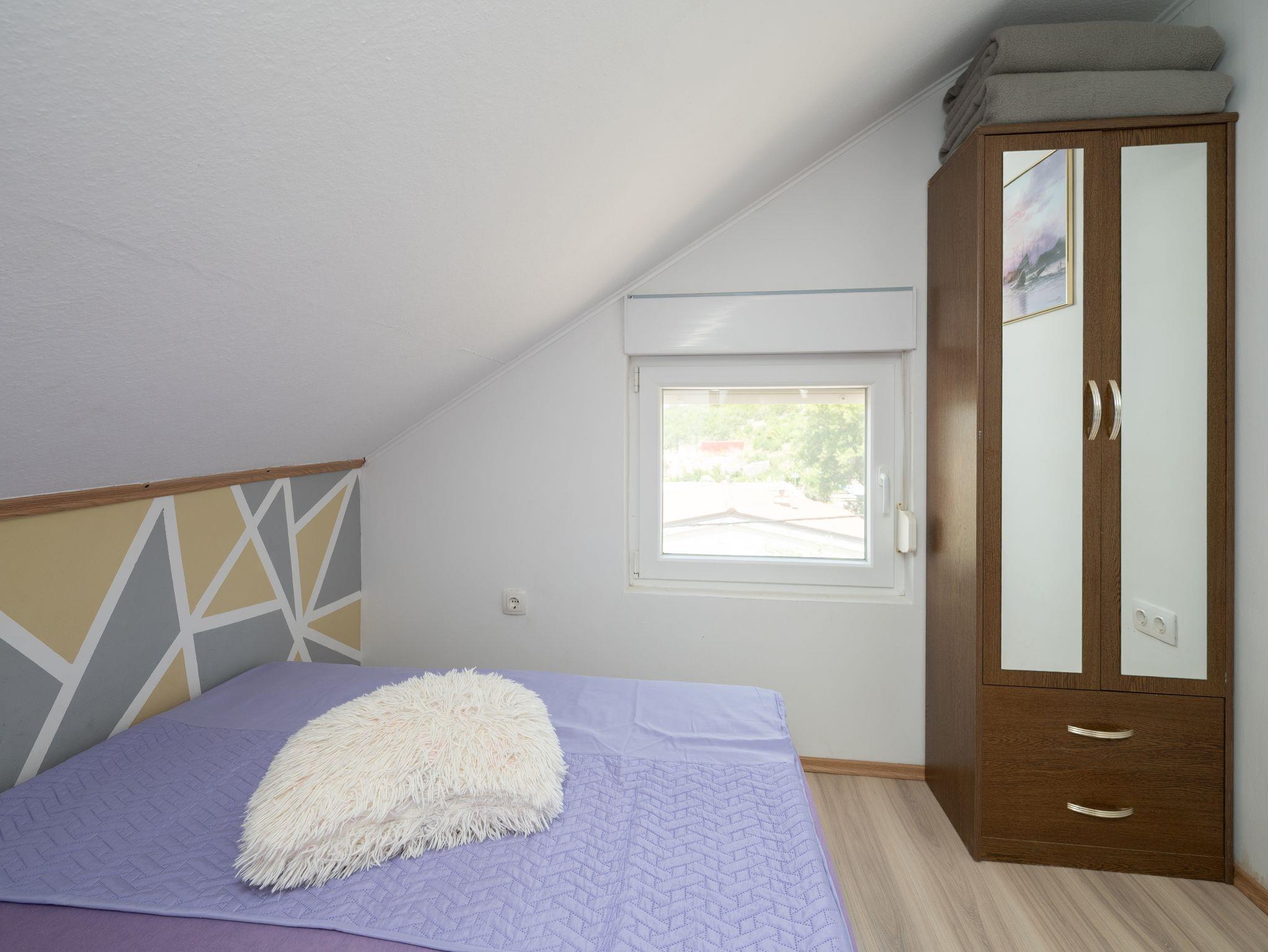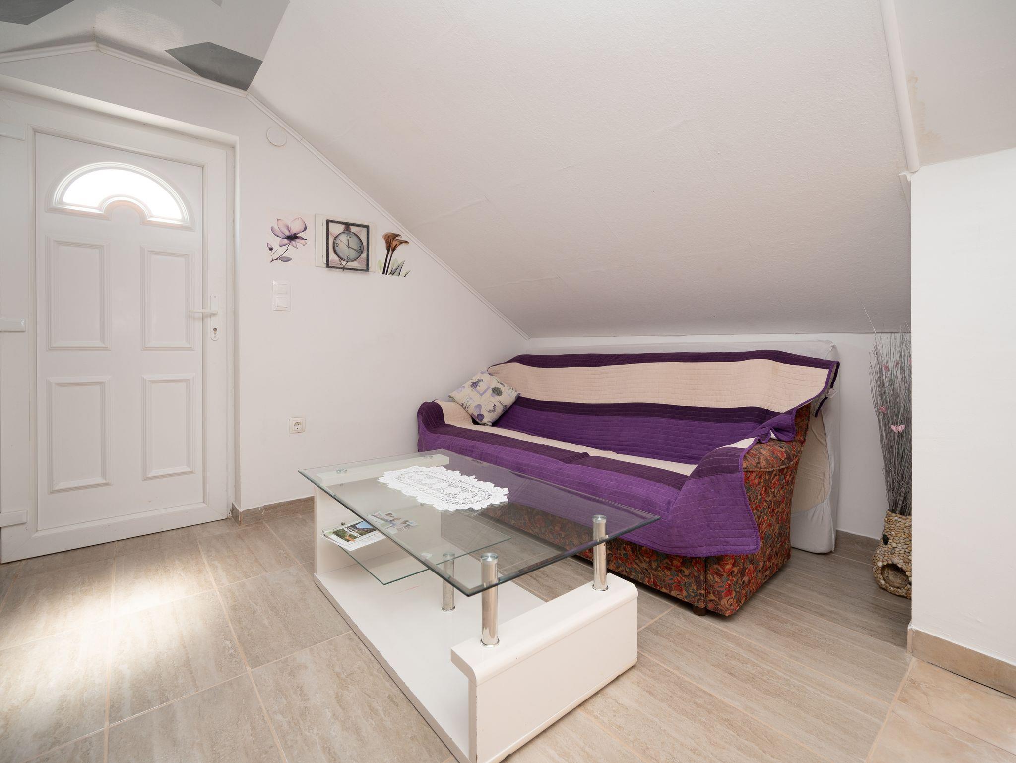 Ferienwohnung bietet Platz für 4 Gäste. Die Betten sind in Schlafzimmern, die es 1 gibt, und in Wohnzimmer, innerhalb einer Gesamtfläche von 33m2, angeordnet. Die Gäste haben eine eigene Terrasse zur Verfügung, auf der sie in warmen Sommernächten genießen können. Das Apartment bietet Meerblick. Es ist erlaubt, Speisen auf dem Gemeinschafts-Grill vorzubereiten. IM PREIS INBEGRIFFEN: Kurtaxe, Endreinigung, Klimatisierung, Parkplatz, Internet, Kinderbett, Zusatzbett, Bügeleisen, Bügelbrett, Föhn. VERBINDLICHE ZUSÄTZLICHE KOSTEN: Aufzahlung für Kurzaufenthalte (prozentualer Zuschlag pro Nächtigungsanzahl: 30% - 1, 20% - 2, 10% - 3). Die Verfügbarkeit zusätzlicher Dienstleistungen in Ihrem reservierten Termin und die Preise derselben (falls nicht aufgeführt) müssen im Voraus überprüft werden. Zusätzliche Dienstleistungen die in der Zahlungsaufforderung nicht aufgeführt sind werden direkt beim Vermieter bezahlt, angenommen der Gast nutzt auch diese. Ermäßigung auf den Grundpreis: Gratistag 21=19 (bei einem Aufenthalt von 21 Tagen oder mehr erhalten Sie 2 Gratistage für den Aufenthalt bis 31.12.26).