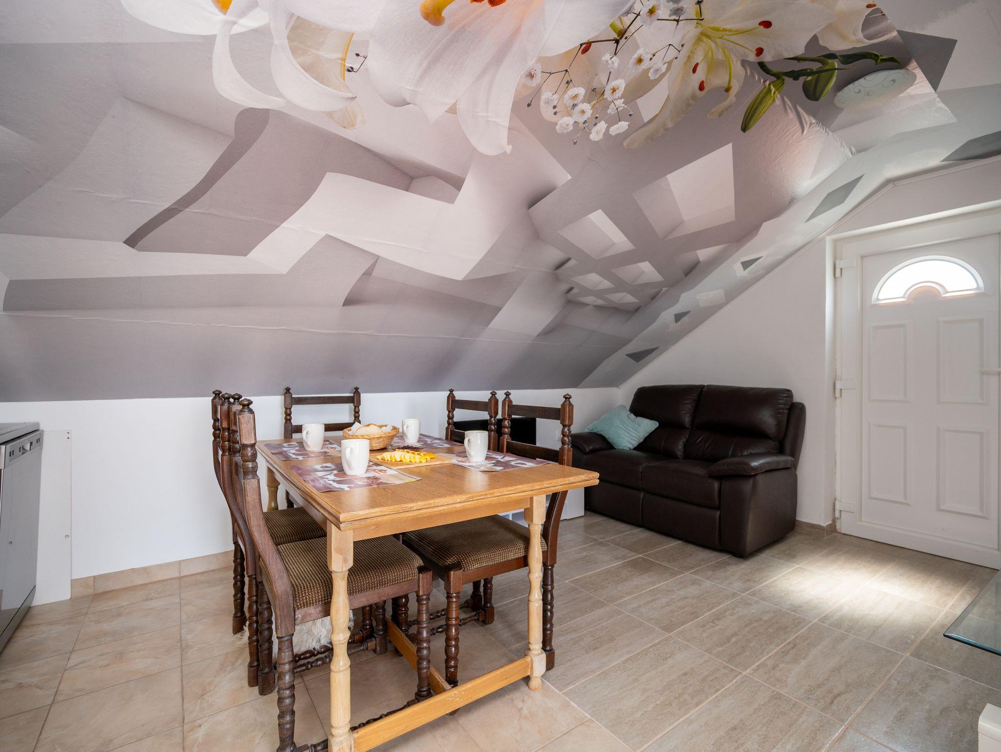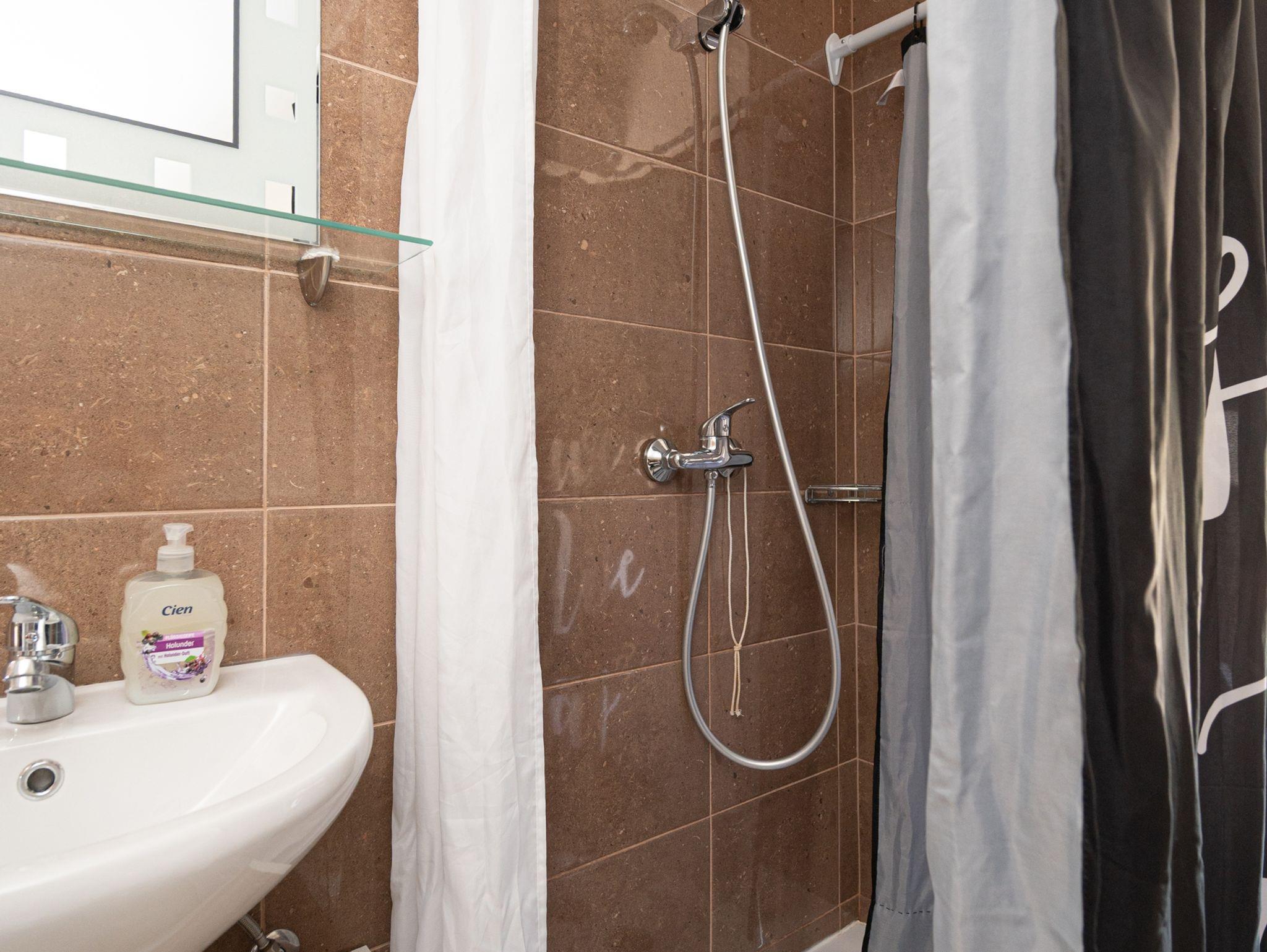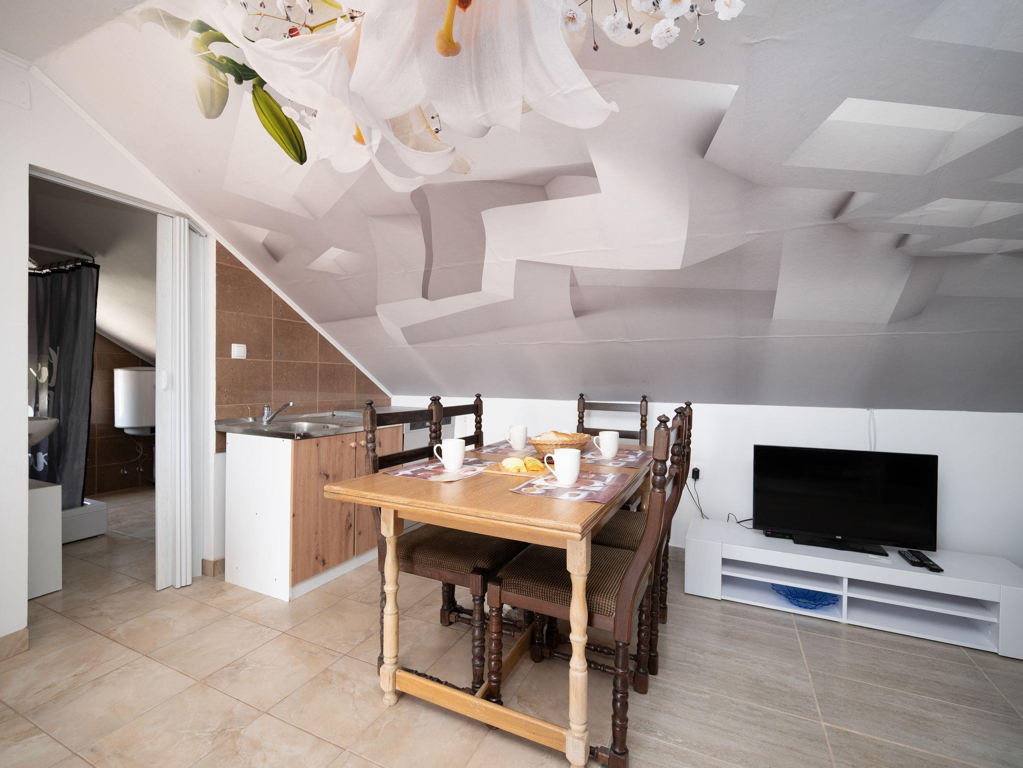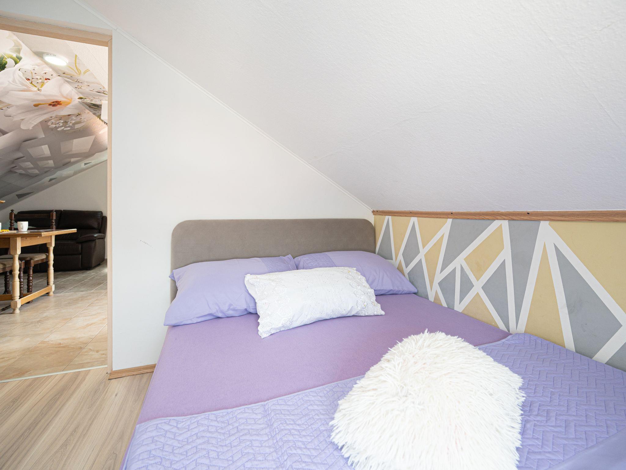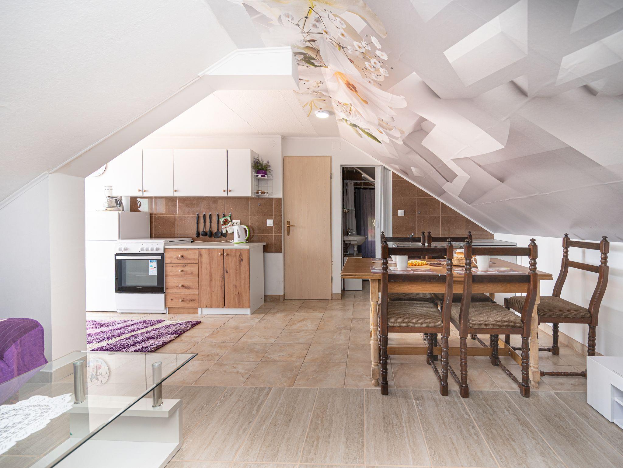 Ferienwohnung bietet Platz für 4 Gäste. Die Betten sind in Schlafzimmern, die es 1 gibt, und in Wohnzimmer, innerhalb einer Gesamtfläche von 33m2, angeordnet. Die Gäste haben eine eigene Terrasse zur Verfügung, auf der sie in warmen Sommernächten genießen können. Das Apartment bietet Meerblick. Es ist erlaubt, Speisen auf dem Gemeinschafts-Grill vorzubereiten. IM PREIS INBEGRIFFEN: Kurtaxe, Endreinigung, Klimatisierung, Parkplatz, Internet, Kinderbett, Zusatzbett, Bügeleisen, Bügelbrett, Föhn. VERBINDLICHE ZUSÄTZLICHE KOSTEN: Aufzahlung für Kurzaufenthalte (prozentualer Zuschlag pro Nächtigungsanzahl: 30% - 1, 20% - 2, 10% - 3). Die Verfügbarkeit zusätzlicher Dienstleistungen in Ihrem reservierten Termin und die Preise derselben (falls nicht aufgeführt) müssen im Voraus überprüft werden. Zusätzliche Dienstleistungen die in der Zahlungsaufforderung nicht aufgeführt sind werden direkt beim Vermieter bezahlt, angenommen der Gast nutzt auch diese. Ermäßigung auf den Grundpreis: Gratistag 21=19 (bei einem Aufenthalt von 21 Tagen oder mehr erhalten Sie 2 Gratistage für den Aufenthalt bis 31.12.26).