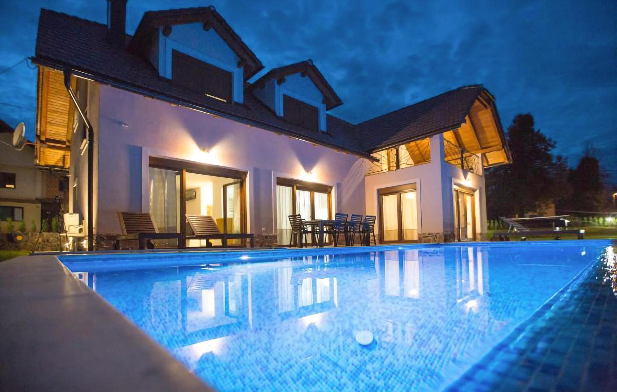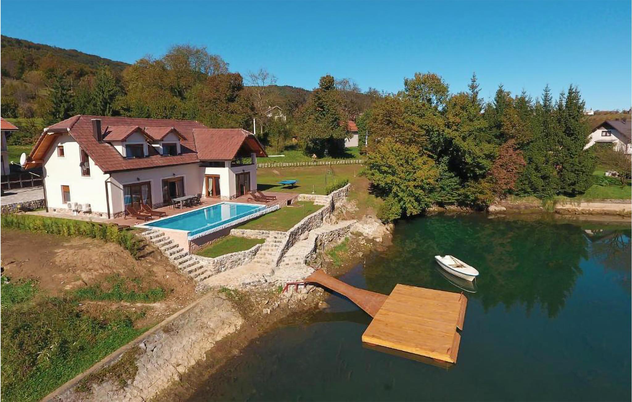 Willkommen in dieser geräumigen Villa in bester Lage. Sie wohnen hier in schönem Ambiente am See Sabljaci in der Nähe von Ogulin, und lassen sich in jedem Moment vom Seeblick faszinieren. Ein idealer Ort, um das Umfeld zu genießen, ist der nachts beleuchtete Infinity Pool und die Terrasse rundherum. Über Ihren eigenen Steg können Sie für ein erfrischendes Bad in den See einsteigen.