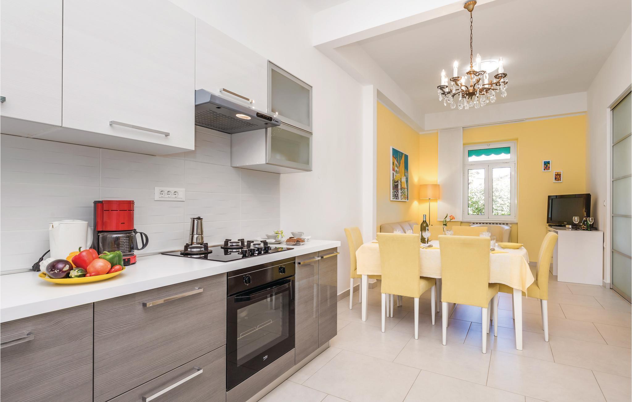 Die schöne Ferienwohnung befindet sich im Hochparterre eines Familienwohnhauses nahe der Altstadt von Lovran sowie dem Meer und den nächsten Stränden. Zu der Ferienwohnung führen einige Stufen hinauf. An der Wohnung befindet sich eine teilweise mit Markise überdachte Terrasse, die zum gemütlichen Zusammensitzen einlädt. Die Stadt Lovran ist ein beliebter Badeort an der Riviera von Opatija, die mit ausgezeichneten Restaurants und zahlreichen Veranstaltungen und Konzerten ihre Gäste nachhaltig begeistert. Für Naturliebhaber gibt es die Wanderwege am Naturpark Ucka, während Aktivurlauber hier Paragliding und viele verschiedene Wassersportarten ausprobieren können.