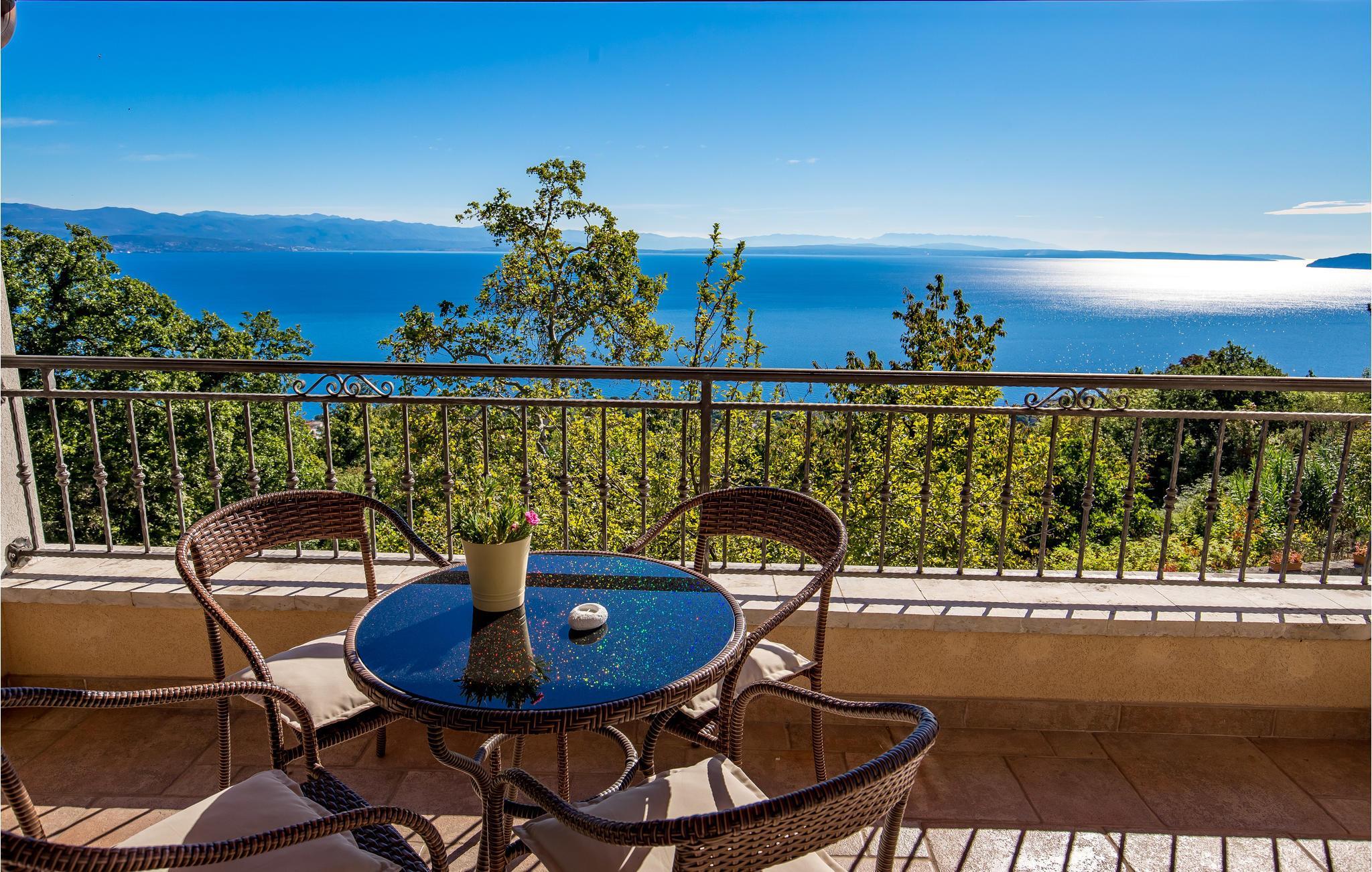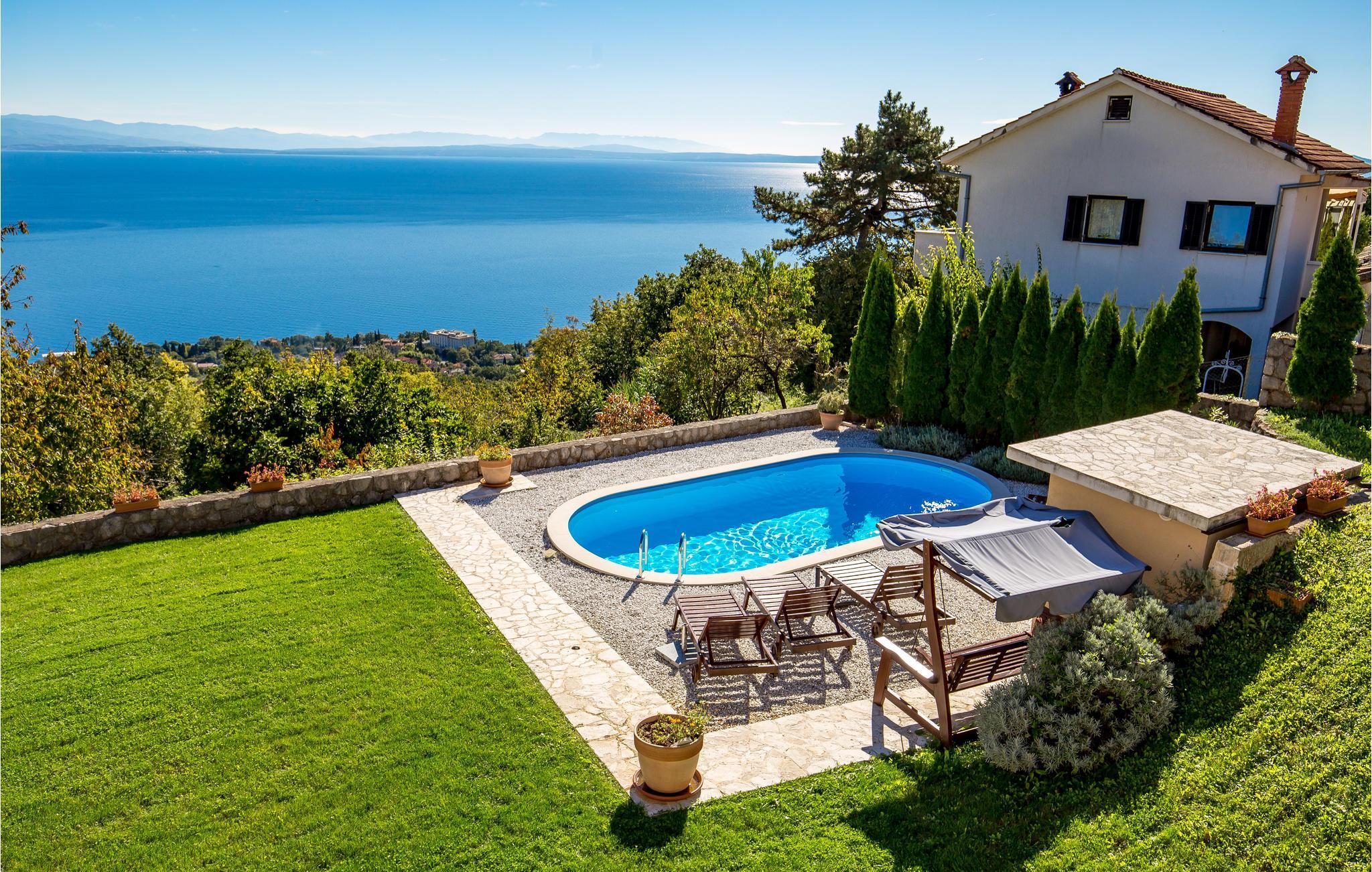 Diese schöne, angenehme Villa liegt in einem ruhigen Ort über dem Städtchen Lovran, wo sich Ihnen ein spektakulärer Blick auf das Meer und die umliegenden Gebiete bietet. Die Räumlichkeiten sind geräumig und sehr komfortabel und ideal für einen angenehmen Urlaub. Die Innenräume sind mit modernen Möbeln ausgestattet, die jeglichen Komfort bieten und außerdem finden Sie auch Fitnessgeräte und eine Sauna vor. Der besondere Charme dieser Villa bietet einen großen, geschmackvoll eingerichteten und eingezäunten Garten mit einem Außenpool, wo Sie schöne Stunden mit der Familie und Freunden verbringen können. Nutzen Sie auch den Grill im Garten, um leckere Gerichte zuzubereiten und sie anschließend auf der überdachten Terrasse zu genießen. Dieses Haus ist ideal für einen entspannten Urlaub. Das Seebad Opatija, das auch die Perle des Kvarner genannt wird, liegt in der Nähe. Besuchen Sie auch den Naturpark Ucka, der sich an der Riviera von Opatija befindet.