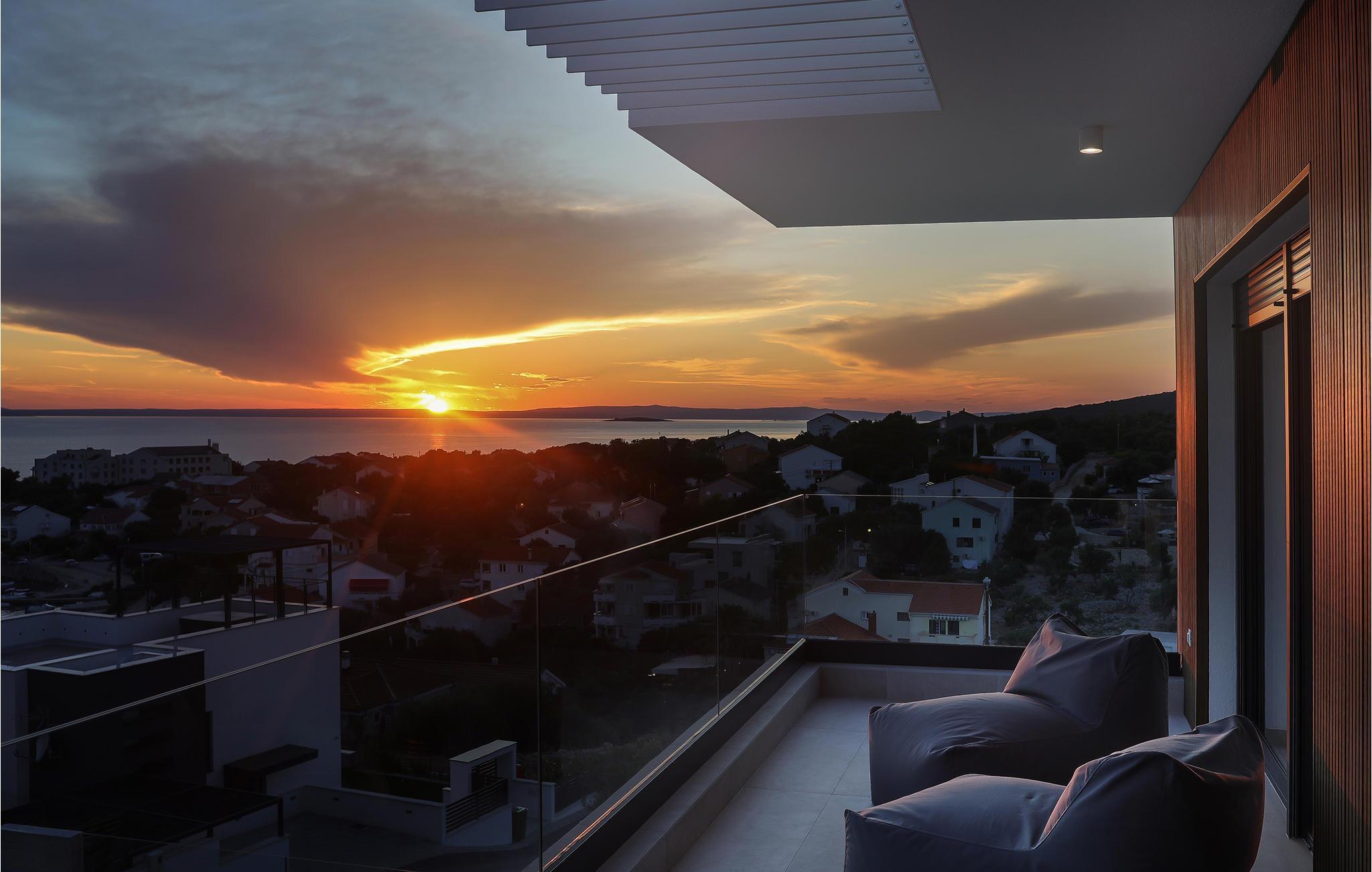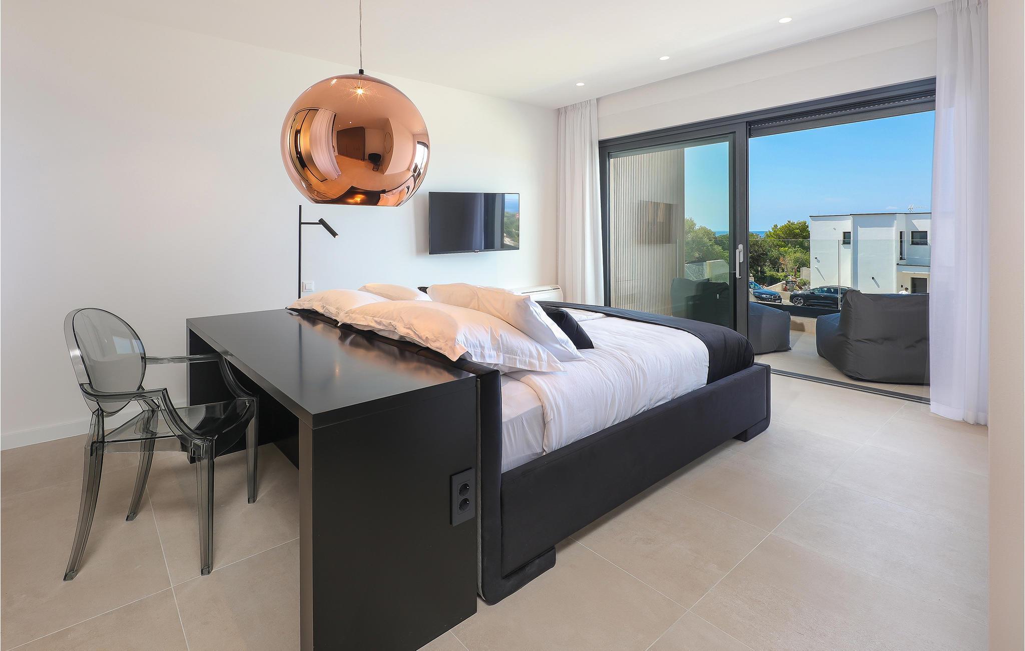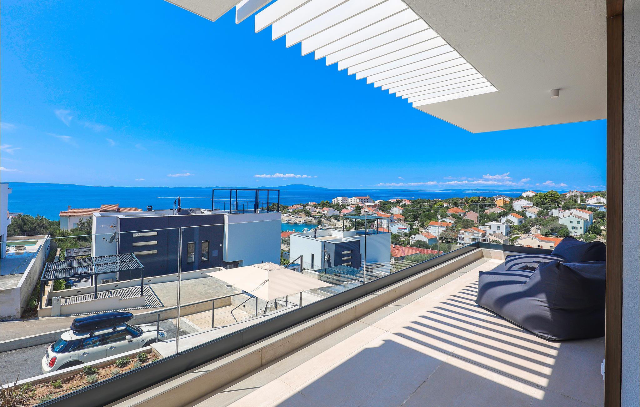 Genießen Sie eine fantastische Aussicht auf das Meer in diesem attraktiven Ferienhaus mit Pool und Sauna.