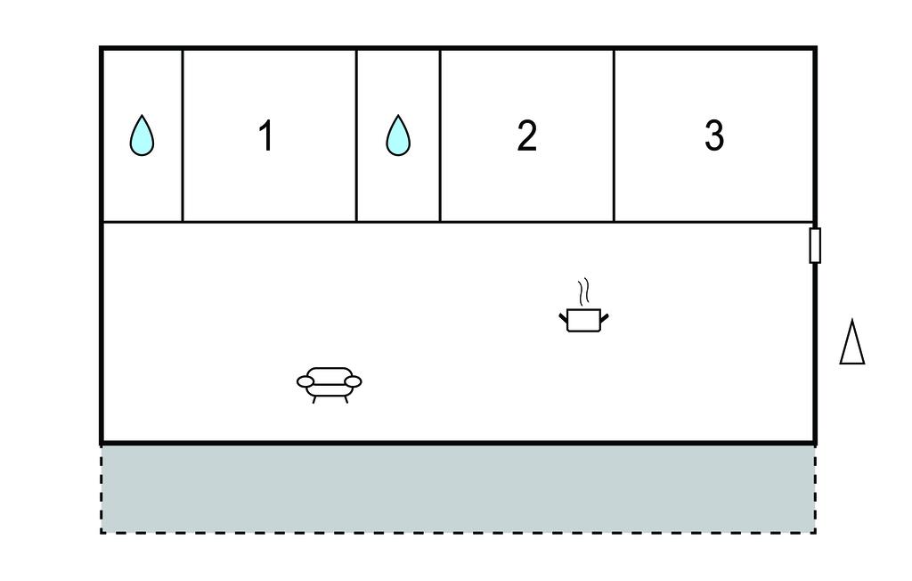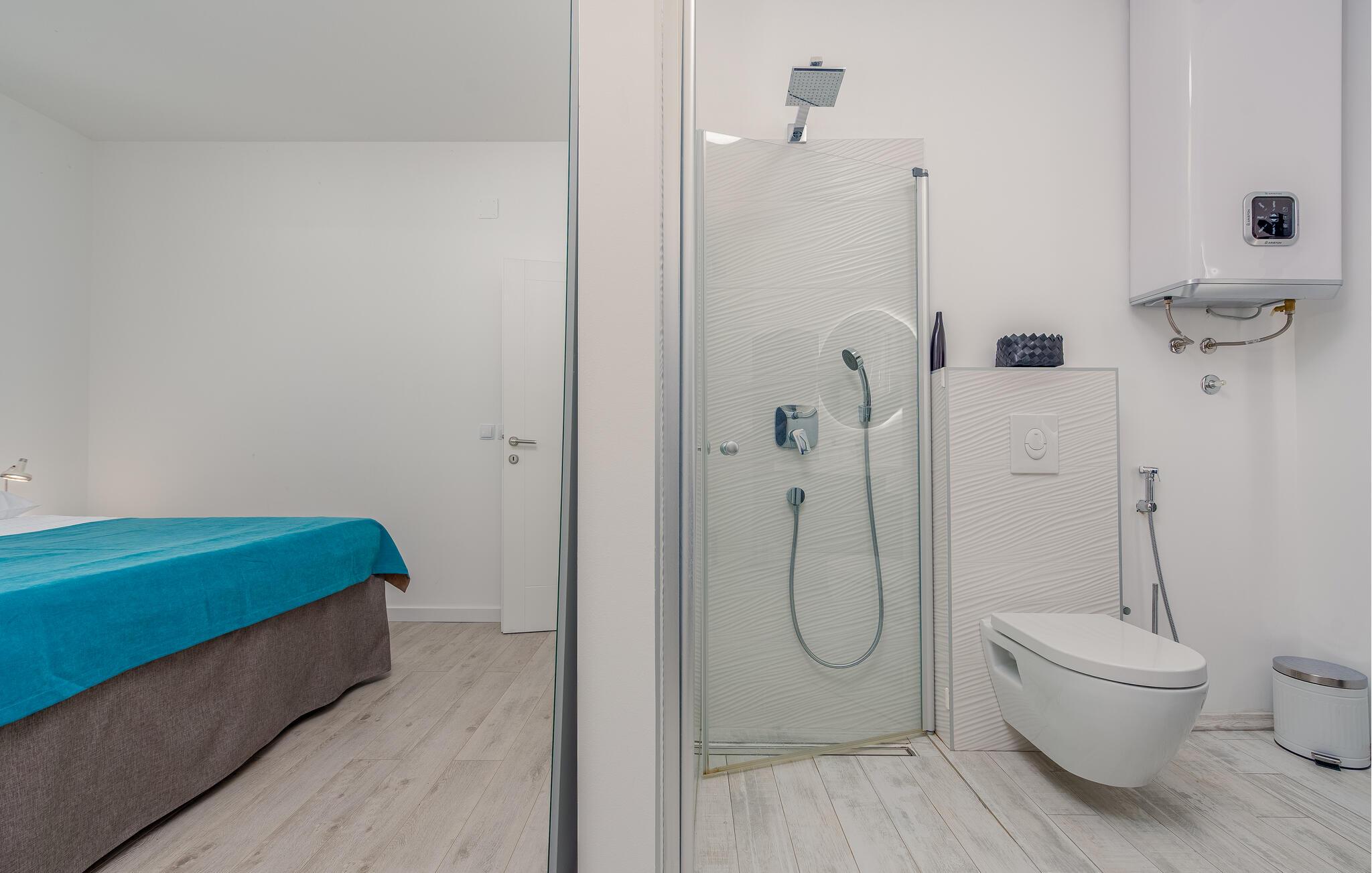 Badezimmer 6m2 (nr. 1) - WC. Warmes und kaltes Wasser. Dusche