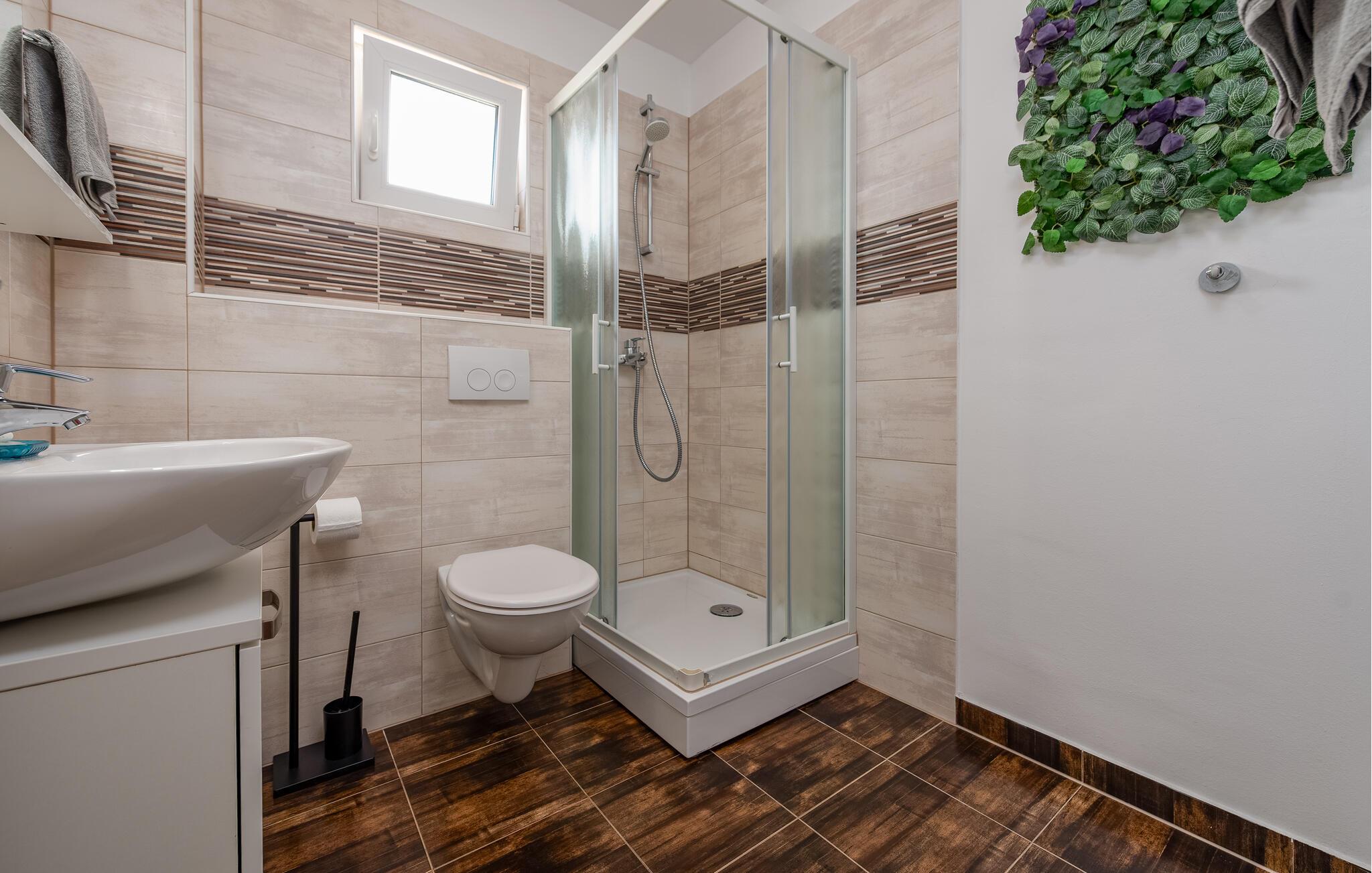 Badezimmer 4m2 (nr. 1) - WC. Warmes und kaltes Wasser. Dusche
