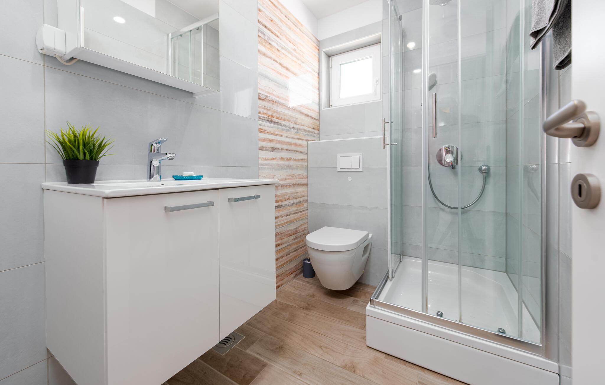 Badezimmer 4m2 (nr. 1) - WC. Warmes und kaltes Wasser. Dusche