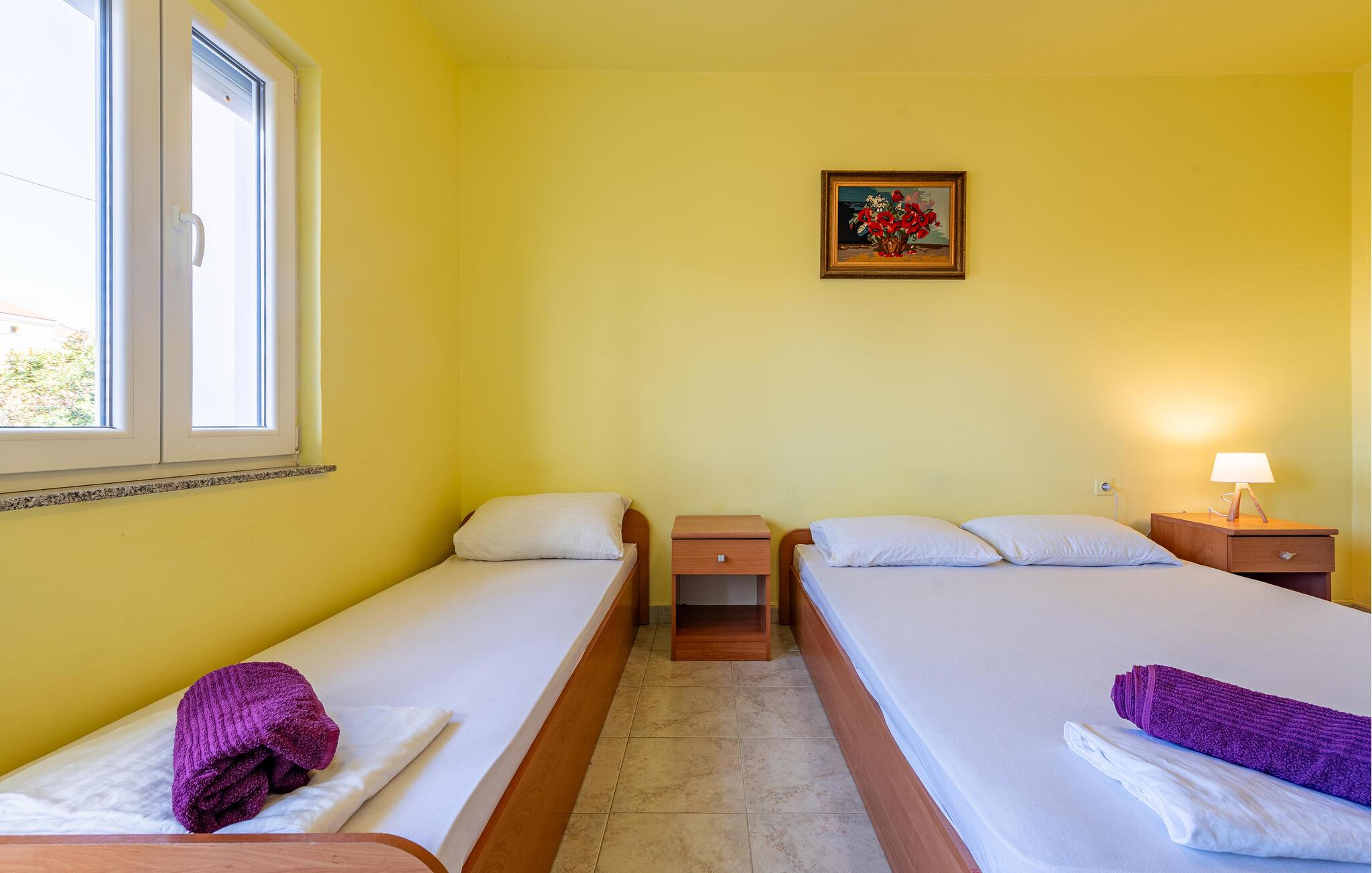 Schlafzimmer 14m2 (nr. 1) - 1 Schlafmöglichkeit. (Einzelbett(en)). 2 Schlafmöglichkeiten. (Doppelbett(en)).