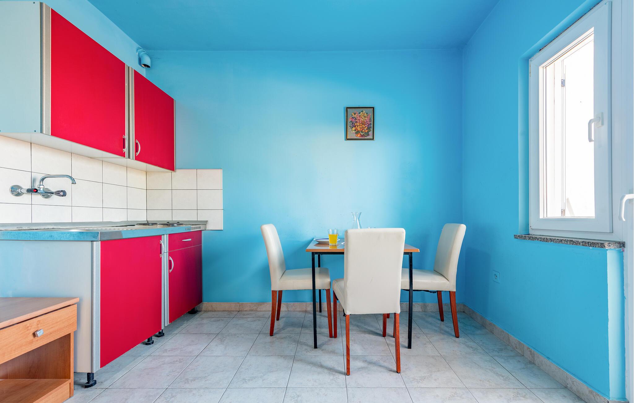 Nur wenige Schritte vom nächsten Sandstrand entfernt, erwartet Sie diese praktische Unterkunft zu einem unkomplizierten Badeurlaub mit gutem Essen und naturnaher Umgebung. Die helle Ferienwohnung ist kompakt, funktional und bietet Ihnen alles, was Sie für entspannte Urlaubstage benötigen. Bereiten Sie in der kleinen Küchenzeile leichte Mahlzeiten und Snacks für Ihre Ausflüge zu. Entspannen Sie anschließend auf dem Sofa und lassen Sie die Seele baumeln.