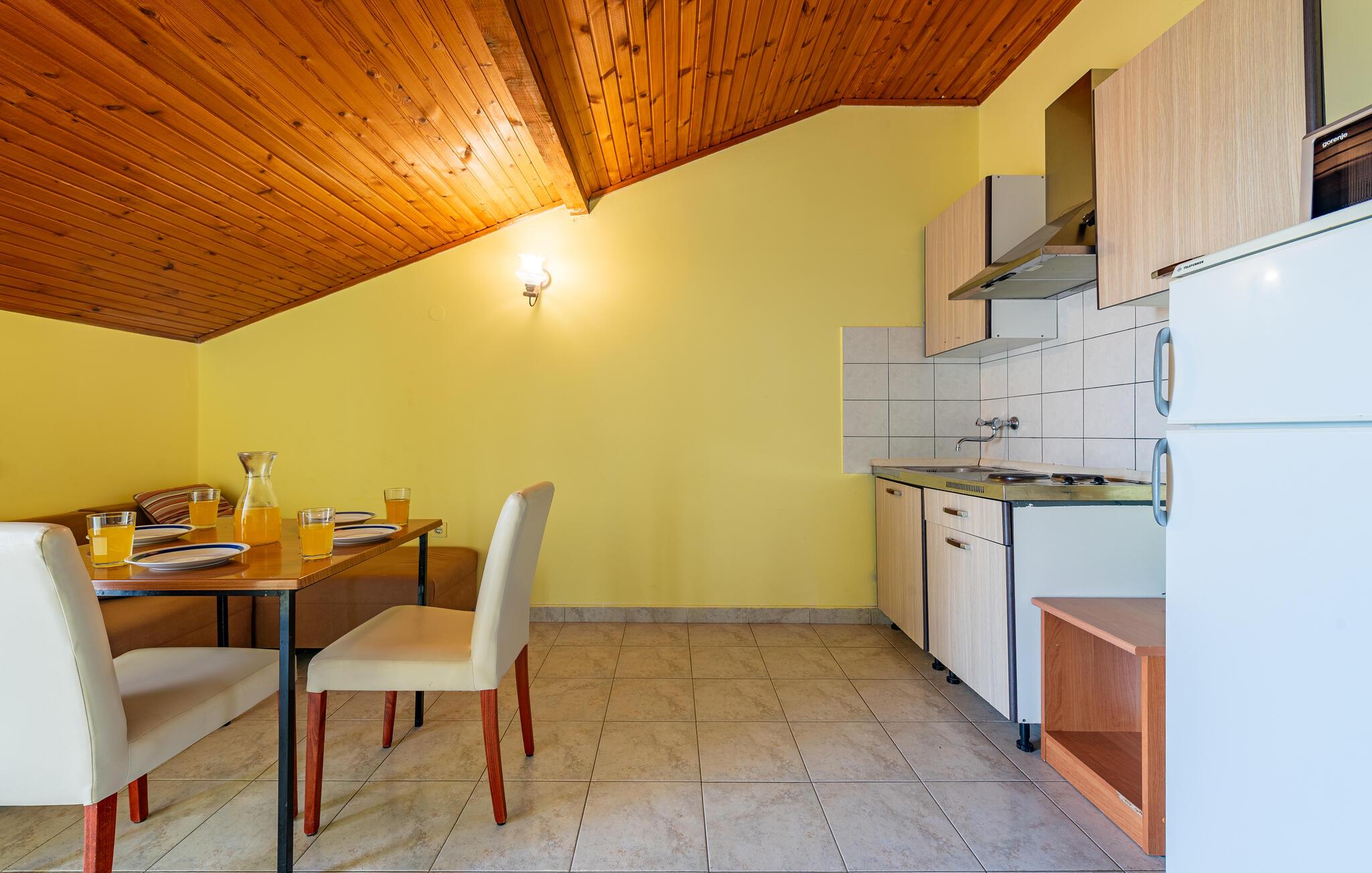 Diese charmante Ferienwohnung lädt Sie zu einer entspannten Auszeit auf der wunderschönen Insel Pag ein. Nutzen Sie die moderne Küchenzeile, um Ihre Lieblingsmahlzeiten zuzubereiten. Lassen Sie die wohltuende Meeresbrise durch die hellen Räume ziehen und erholen Sie sich nach ausgiebigem Sonnenbaden bei einer Siesta oder widmen Sie sich einem guten Buch, für das Sie im Alltag keine Zeit finden.