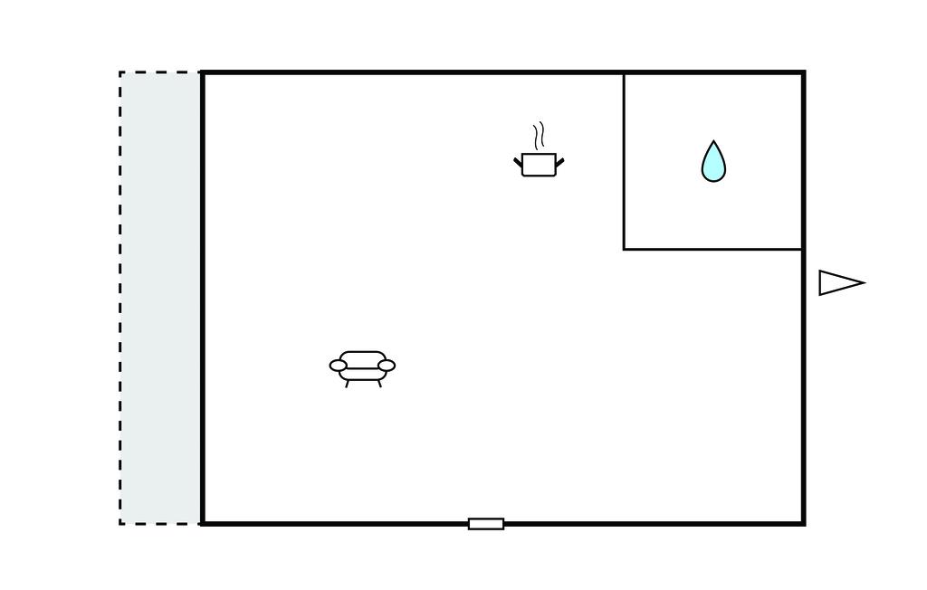 Wohnraum/Küche 28m2 - 1 Schlafmöglichkeit. (Einzelbett(en)). 2 Schlafmöglichkeiten. (Doppelbett(en)).