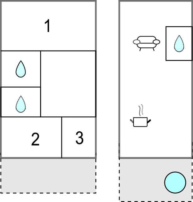 Badezimmer 5m2 (nr. 1) - WC. Warmes und kaltes Wasser. Dusche