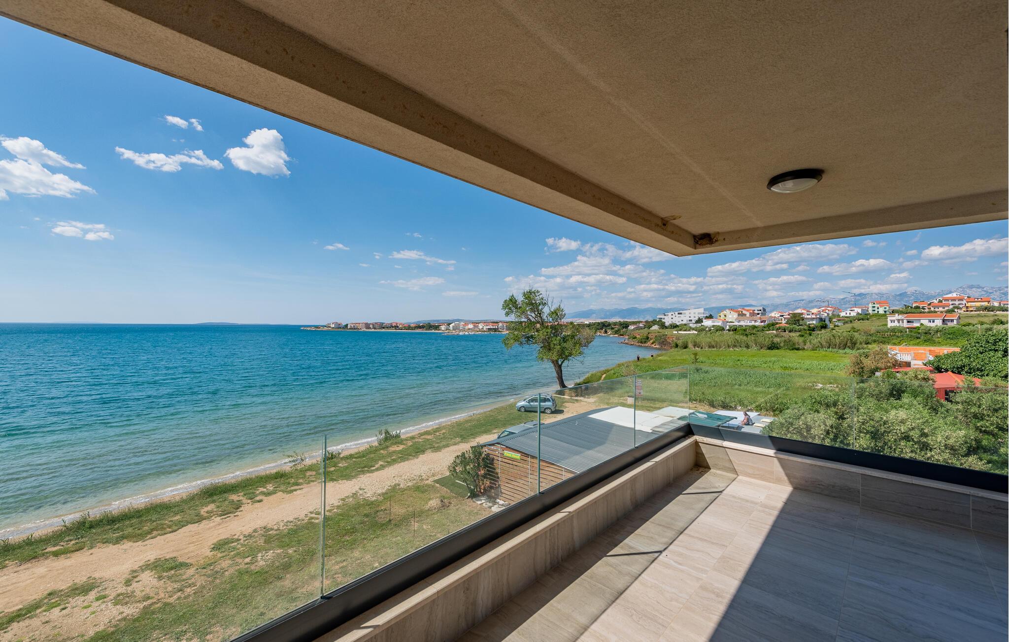 Willkommen in dieser zweistöckigen und wunderschönen Ferienwohnung, die Sie nicht nur mit ihrer fantastischen Einrichtung, hochwertigem Design und großartigem Design begeistern wird, sondern auch mit dem traumhaften Meerblick, den Sie von beiden Terrassen genießen können. Gemeinsames Kochen wird in der Luxusküche zu einem Genuss, ebenso das Entspannen auf dem gemütlichen Sofa. Wellnessliebhaber können sich im Whirlpool Ihre Muskeln massieren lassen und dabei auf das Meer blicken und die Seele baumeln lassen. Am Abend können Sie hier die Sonnenuntergänge verfolgen und sich an den Farben am Himmel erfreuen.