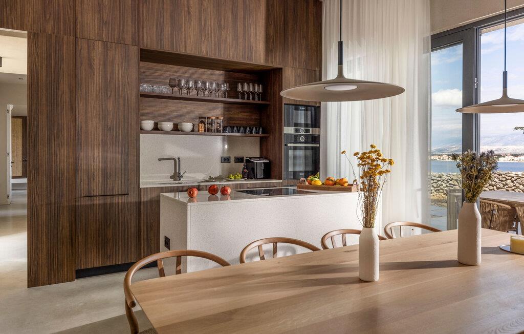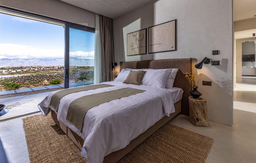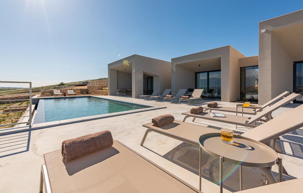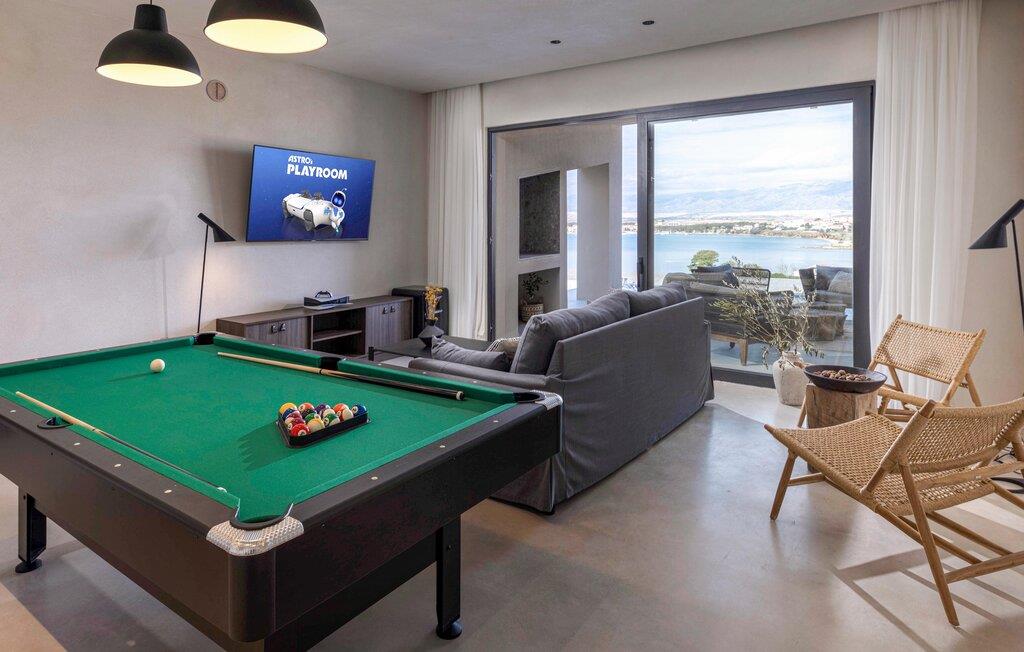 In diesem fantastischen Ferienhaus auf der Insel Pag wird es Ihnen an nichts fehlen. Das luxuriöse, moderne Ambiente, die komplette Ausstattung und die vielen Aktivitätsmöglichkeiten sorgen hier für einen gelungenen Wohlfühlurlaub. Genießen Sie gleich morgens die atemberaubende Panoramaaussicht auf das Meer durch die großflächigen Fensterfronten Ihrer Schlafzimmer. Auch beim gemeinsamen Frühstück am stilvollen Esstisch im Innenbereich oder auf einer der vielen Terrassen Ihres Ferienhauses haben Sie Meerblick. Planen Sie danach die Ausflüge des Tages. Oder spielen Sie im Entertainment-Bereich Ihres Ferienhaus eine Partie Billard oder ein Spiel auf der Spielkonsole. Auch mit Meerblick können Sie draußen im Pool planschen oder auf den Sonnenliegen ein kühles Getränk genießen. In der voll ausgestatteten, stilvollen Küche können Sie lokale Zutaten zu köstlichen Gerichten verarbeiten. Der offene Raum ist eine Oase der Gemütlichkeit und lädt dazu ein, gemeinsam zu kochen und zu gemeinsamen Familienabenden zusammenzukommen.
