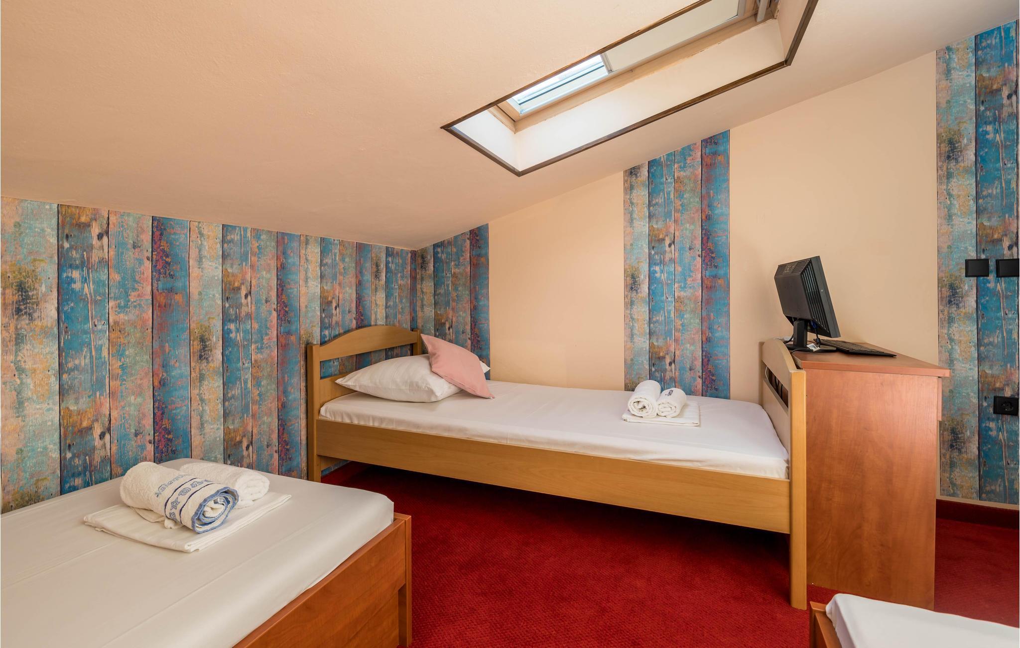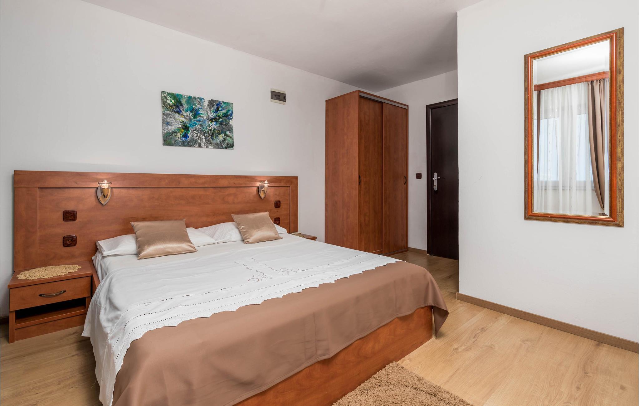 Dieses traumhafte und großzügige Ferienhaus beherbergt 14 Schlafzimmer mit Badezimmern und Klimaanlage. Bis zu 28 Personen wohnen hier in wunderbarer Strandnähe und können im großen Erdgeschoss mit Wohnbereich und mit einer professionell ausgestatteten Küche viele gesellige Stunden verbringen. Genießen Sie die Aussicht auf das Meer von Garten aus während Sie mit Ihren Freunden köstliche Mahlzeiten auf dem klassischen oder auf dem gasbetriebenen Grill zubereiten. Der Swimmingpool sorgt für Erfrischung und Badespaß. Die Insel Pag ist voll von schönen Stränden und versteckten Buchten. Das reiche gastronomische Angebot, der weltweit bekannte Käse von Pag und das besondere Lammfleisch werden Sie mit einem besonderen Geschmack begeistern. Am bekannten Strand Zrce finden während der Sommermonate täglich zahlreiche Festivals mit elektronischer Musik statt.