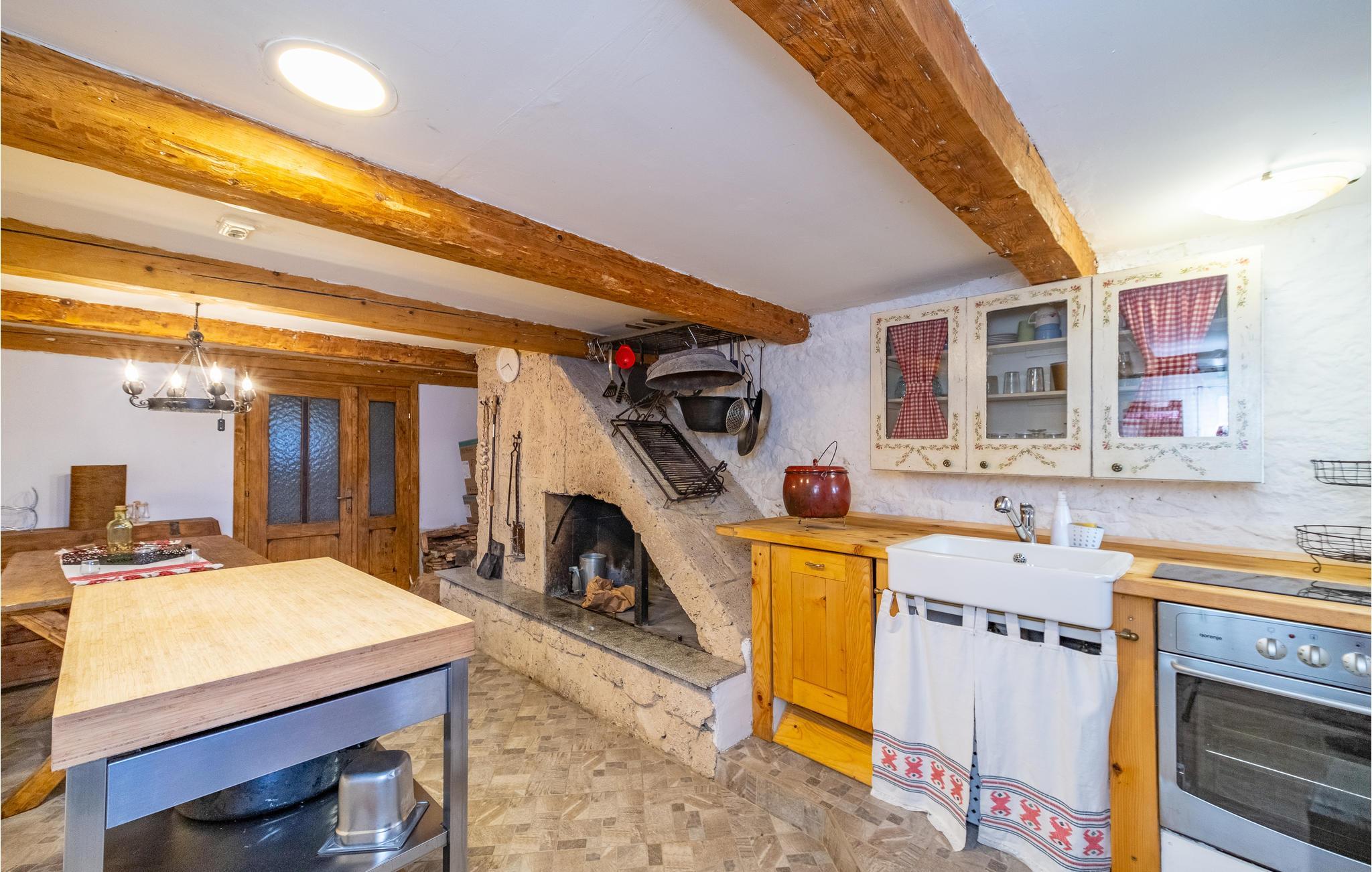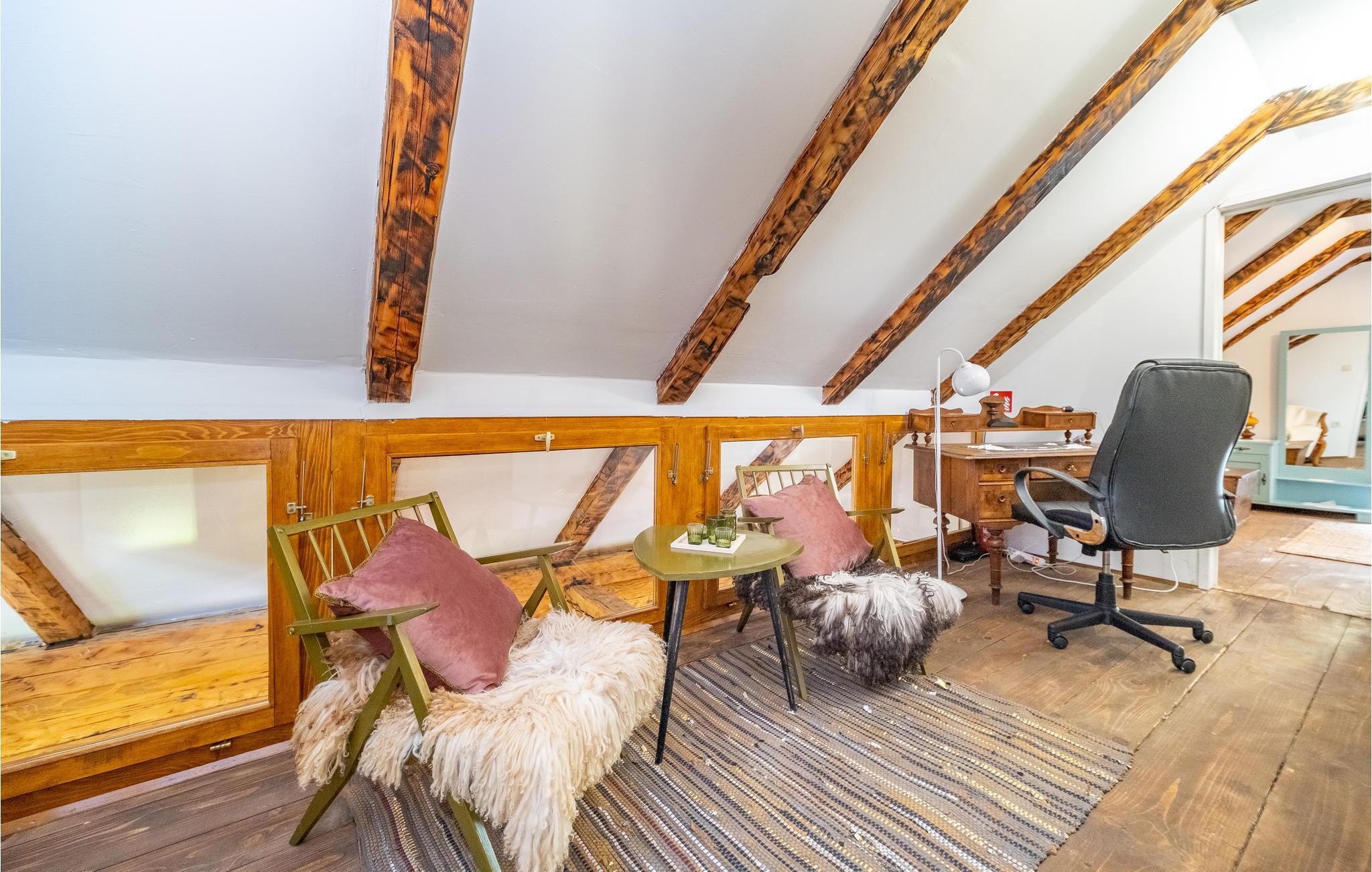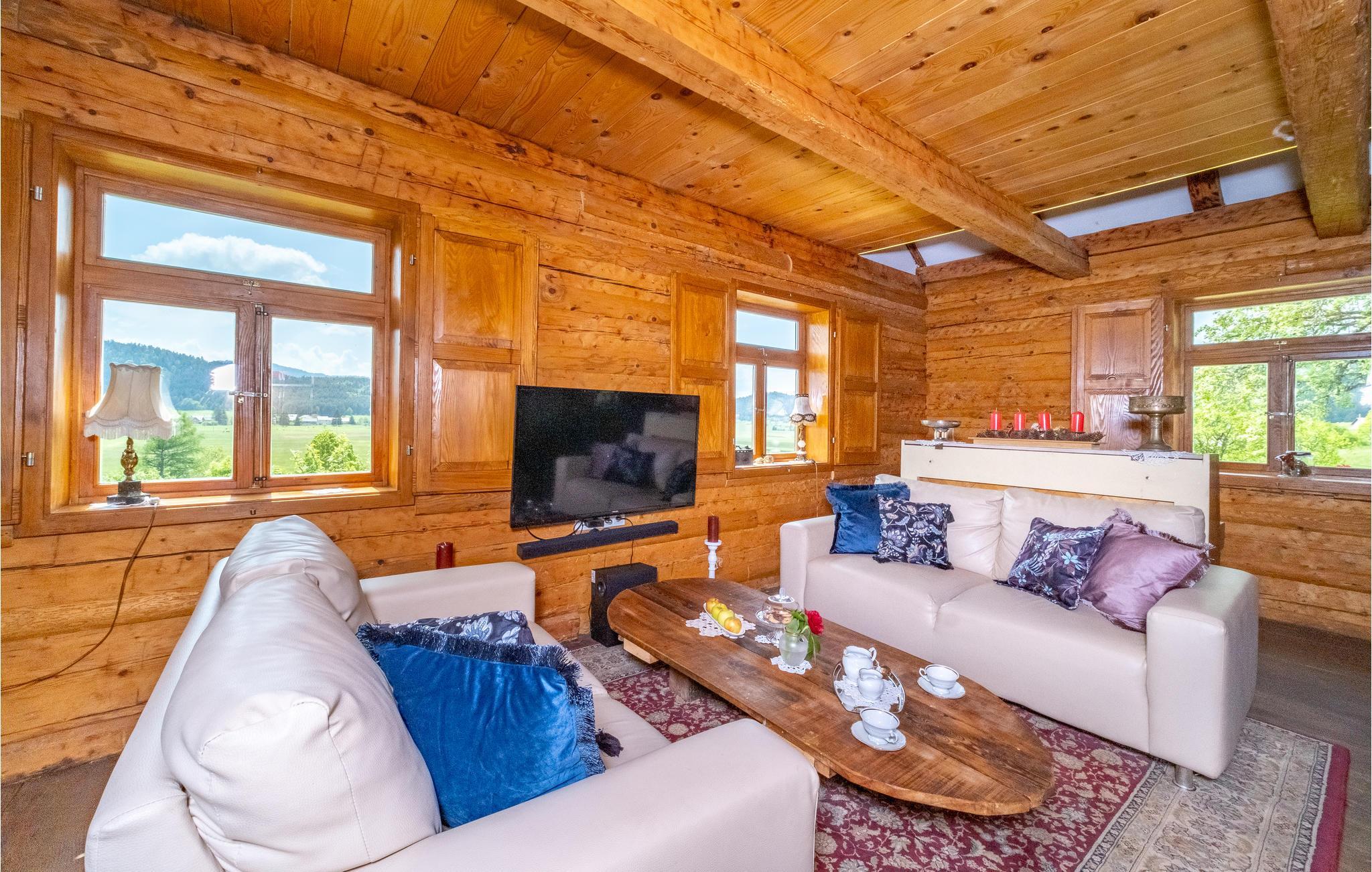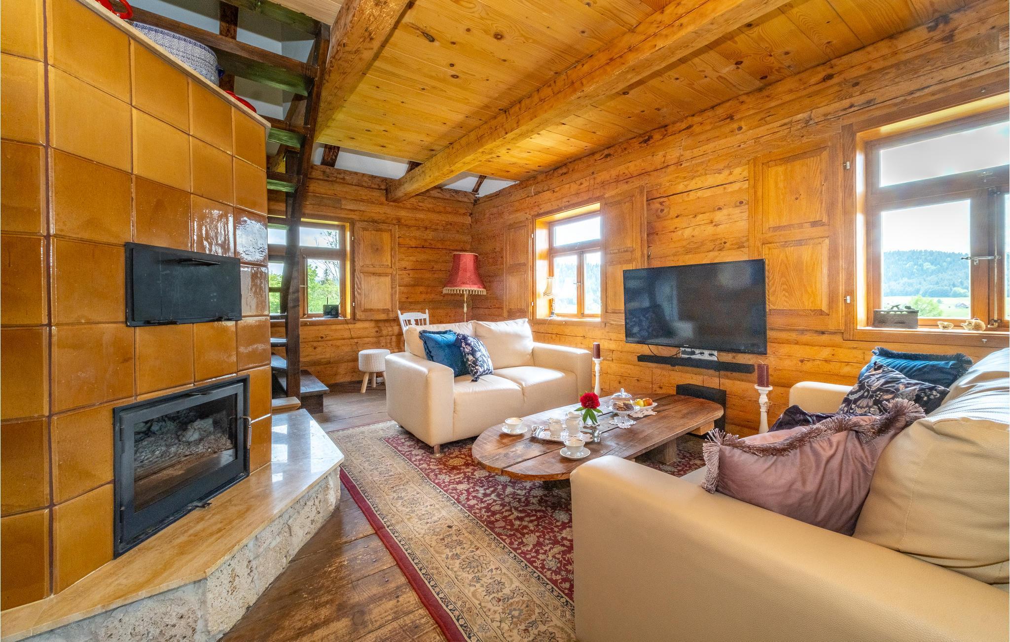 In diesem komfortablen Haus, das Sie in attraktiver Alleinlage inmitten einer pittoresken Landschaft empfängt, fühlen sich alle Familienmitglieder vom ersten Tag an wohl, da hier auch an die Bedürfnisse der Kleinsten gedacht ist. Entspannen Sie in den gemütlichen Räumen, denen die schönen Holzdecken und sichtbaren Balken einen urigen Ausdruck verleihen. Das Wohnzimmer wird schnell zum Zentrum der gemeinsamen Aktivitäten. Nach einem erlebnisreichen Tag können Sie es sich hier mit einem Film gemütlich machen, auf dem Sofa entspannen und das herrliche Landschaftspanorama genießen und im Kaminofen anfeuern, der eine behagliche Atmosphäre schafft.