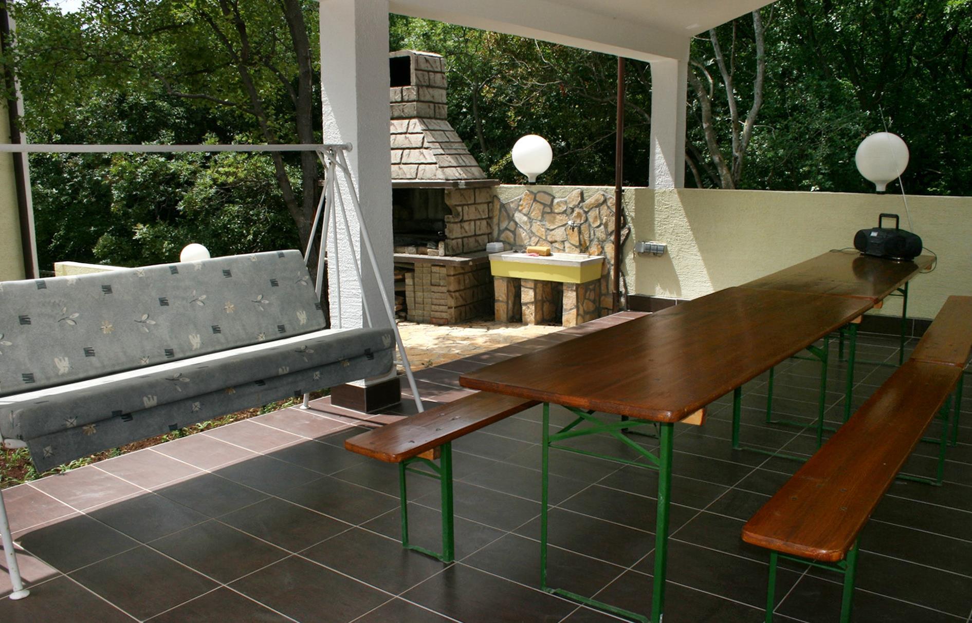 Apartment can accommodate 5 guests. Beds are situated in 1 sleeping rooms, but also in the living room, within 42m2. Guests can use a private terrace to enjoy the warm summer evenings. Food can be prepared using barbecue which is shared with other guests too. This accommodation unit welcomes pets at an additional charge.