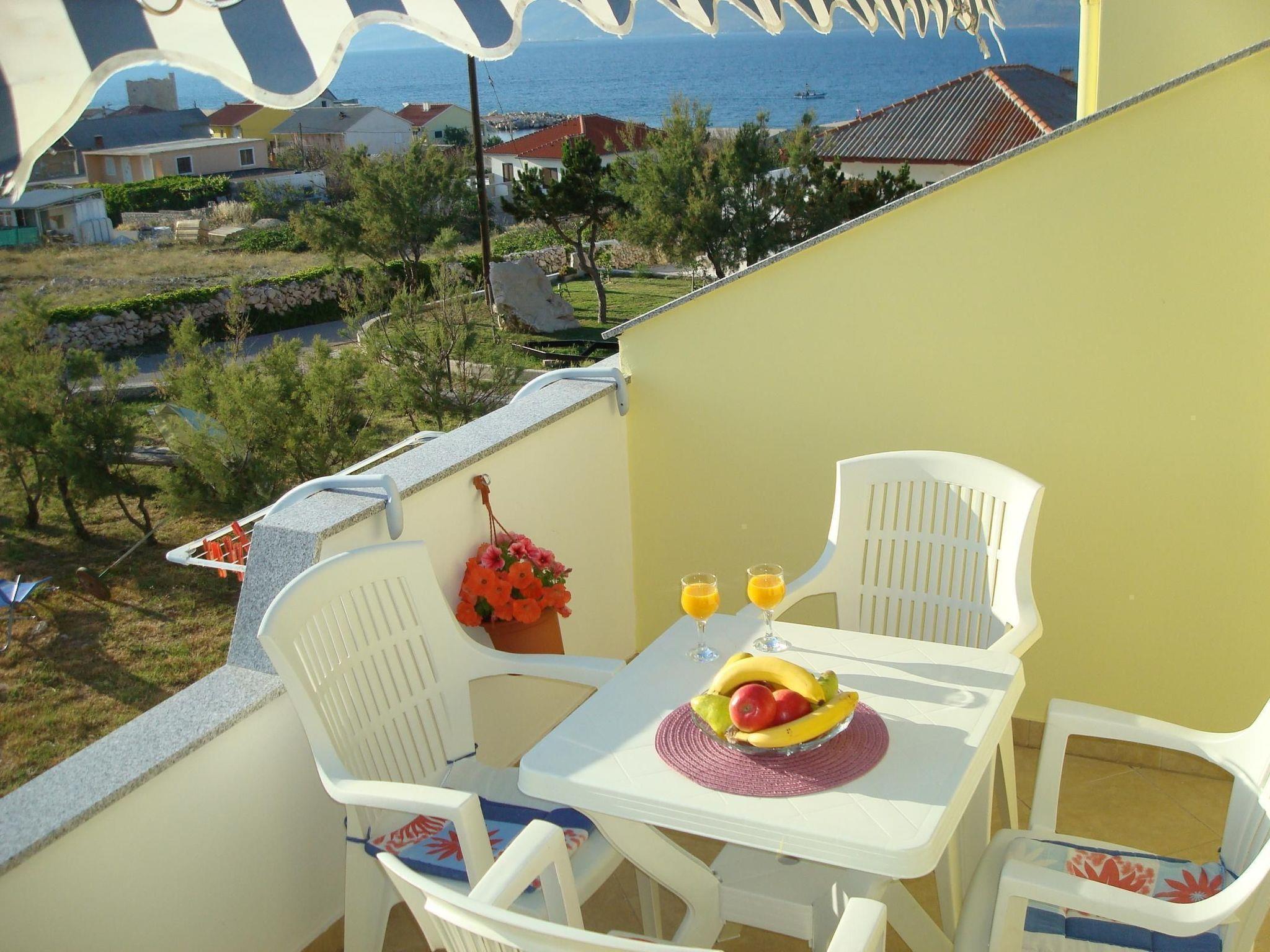 You can enjoy a wonderful view of the sea and the Velebit mountain from the balcony with garden furniture.