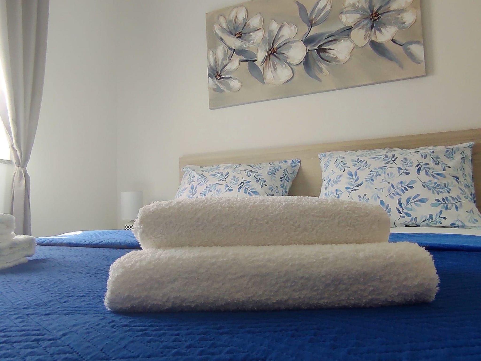 The apartment is on the first floor and can accommodate up to four people. It has a bedroom with a double bed and a sofa bed in the living room. The living and dining room also has satellite TV, a dining table with chairs and a small kitchen unit with all the necessary appliances. The bathroom provides a shower. Air conditioning and wireless Internet access are available.