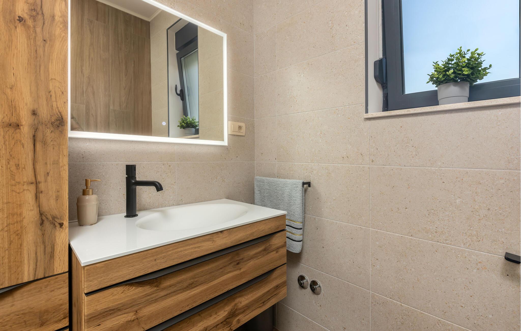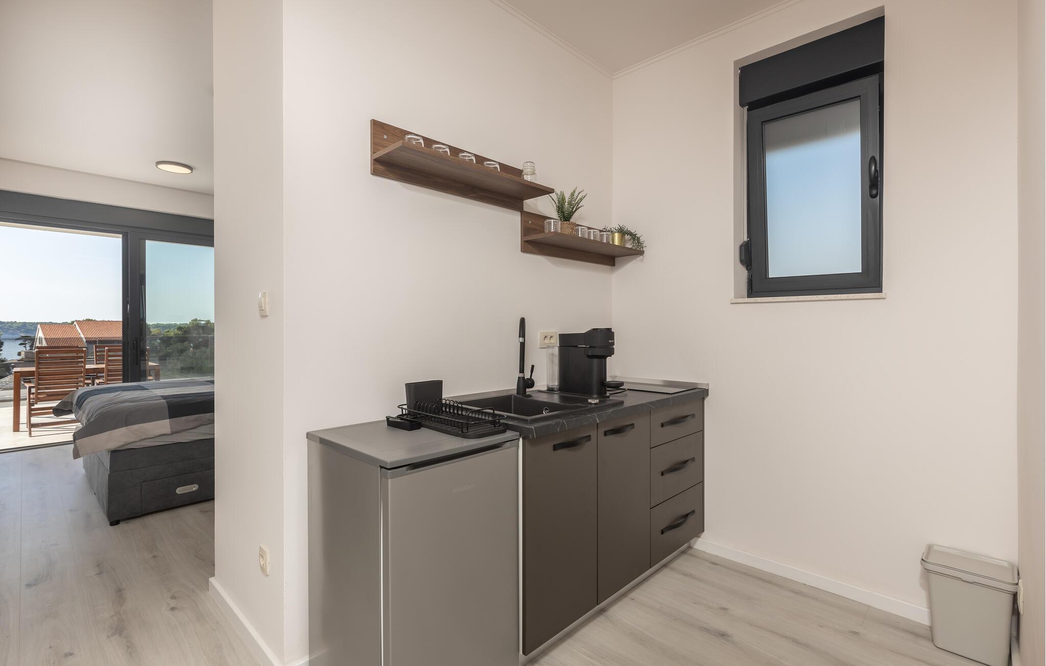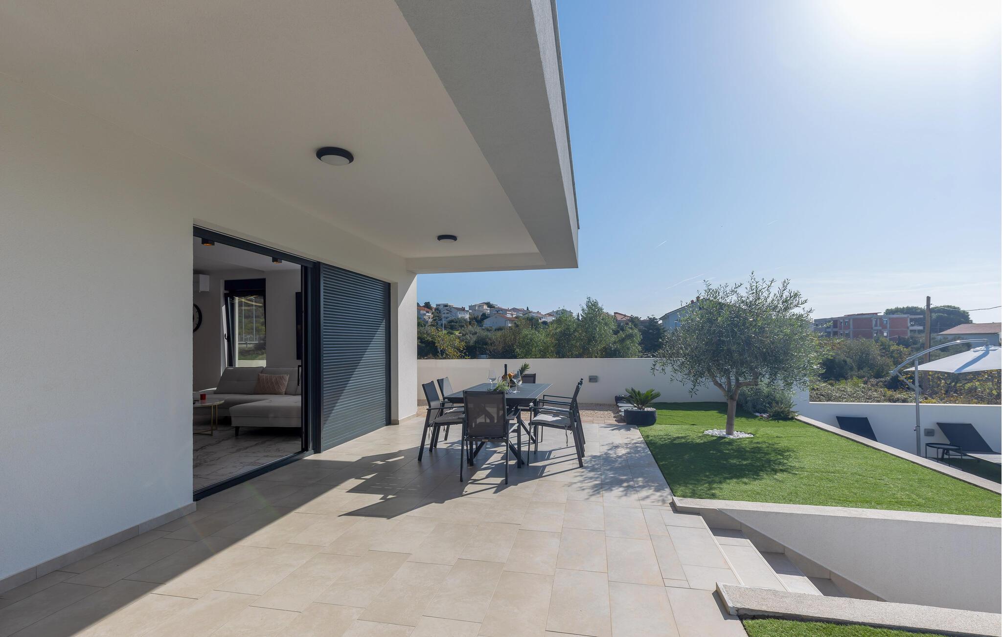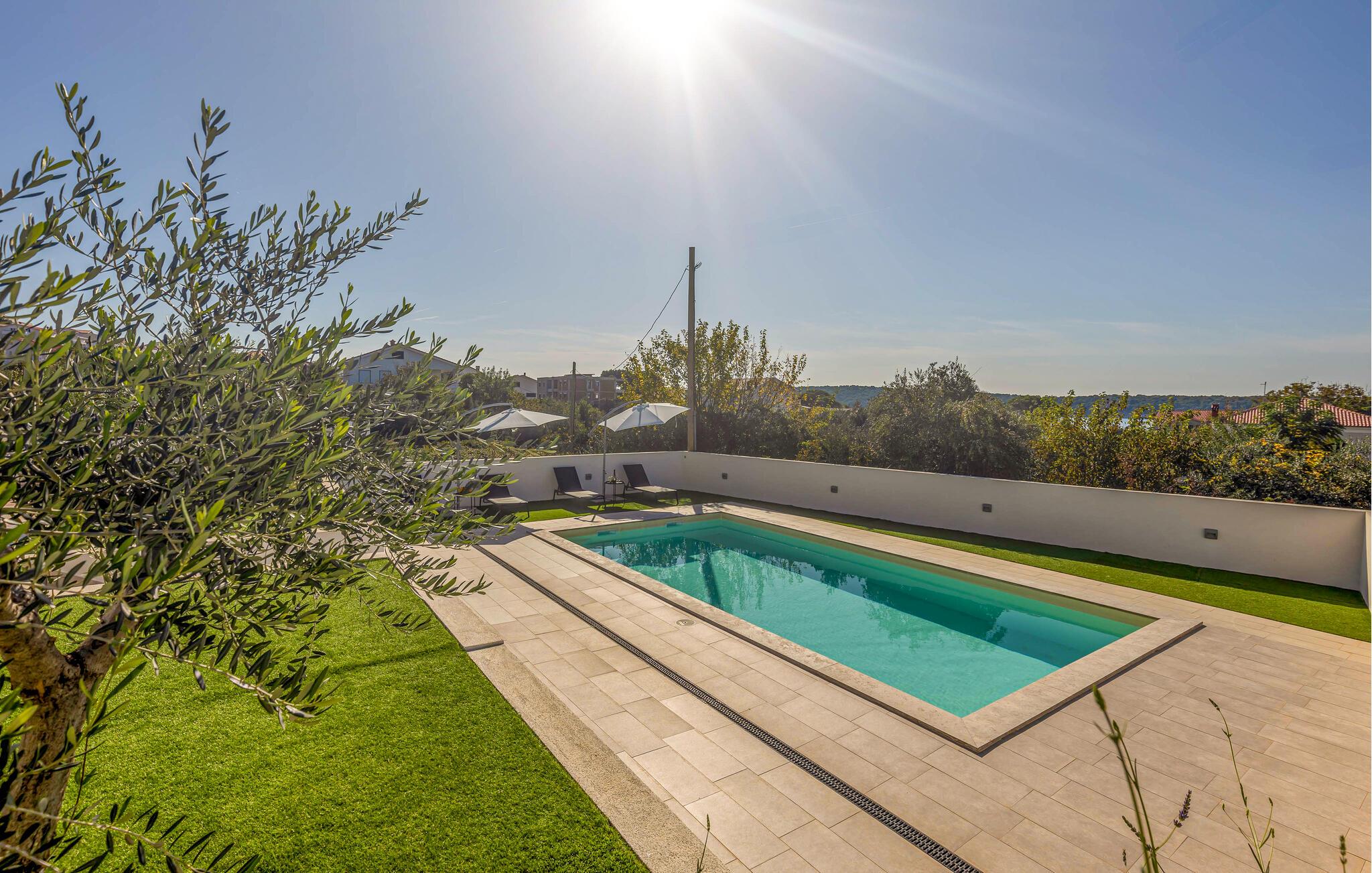 Dieses moderne Ferienhaus in Banjol bietet Ihnen und Ihrer Familie oder Freunden auf zwei Etagen ein stilvolles Ambiente und herrlichen Blick auf das Meer. Die hochwertigen, individuell eingerichteten Schlafzimmer sorgen für Komfort und Entspannung, während der offene Wohnbereich Raum zum gemeinsamen Kochen, Essen und Relaxen bietet. Die Sommerküche im Freien lädt Sie zu geselligen Abenden ein, und der beheizte Außenpool sorgt für Erfrischung und Entspannung. Umgeben von einem gepflegten, umzäunten Garten mit hochwertigen Gartenmöbeln können Sie hier die Sonne genießen.