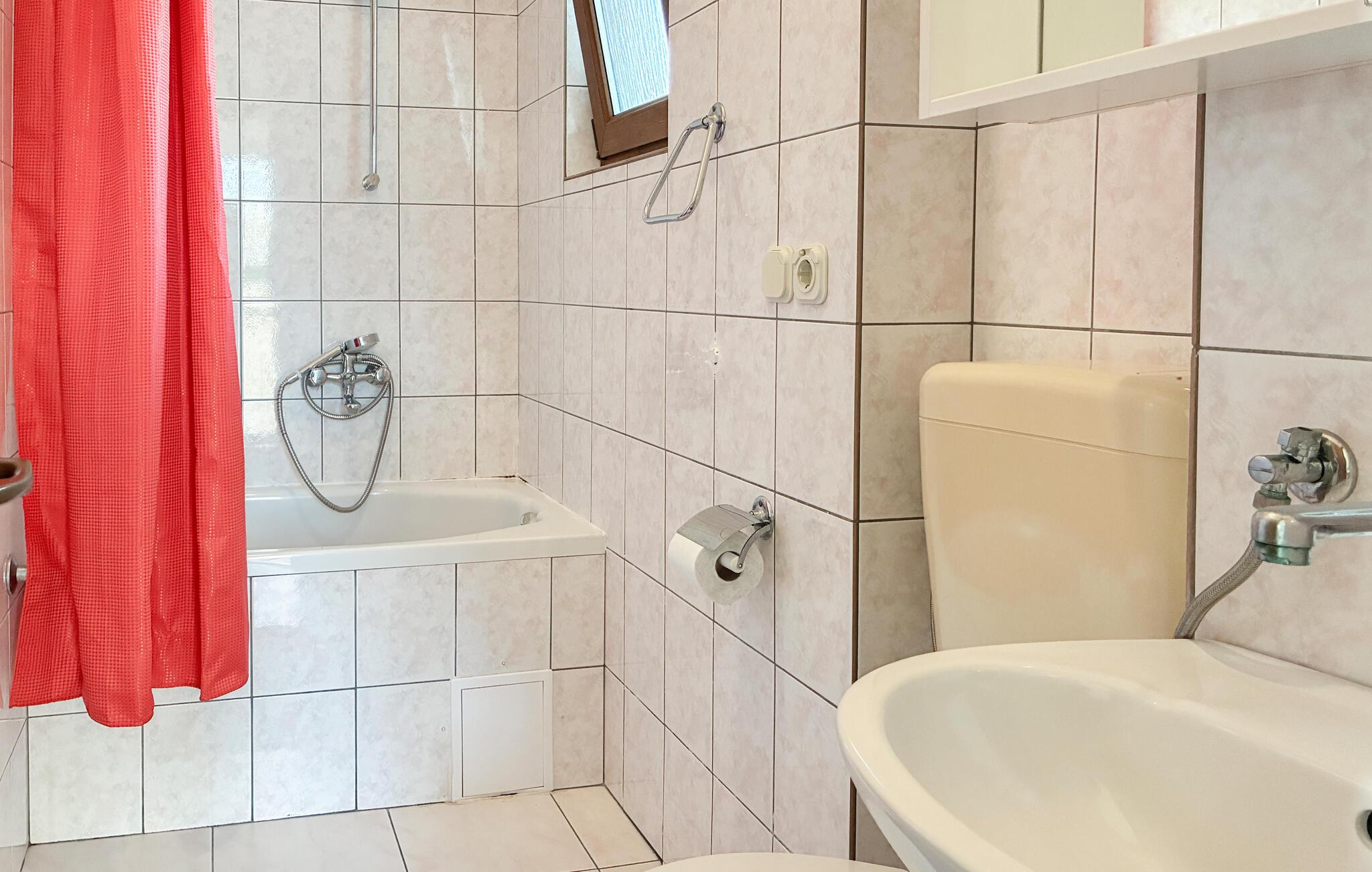 - WC mit warmem und kaltem Wasser, Badewanne
