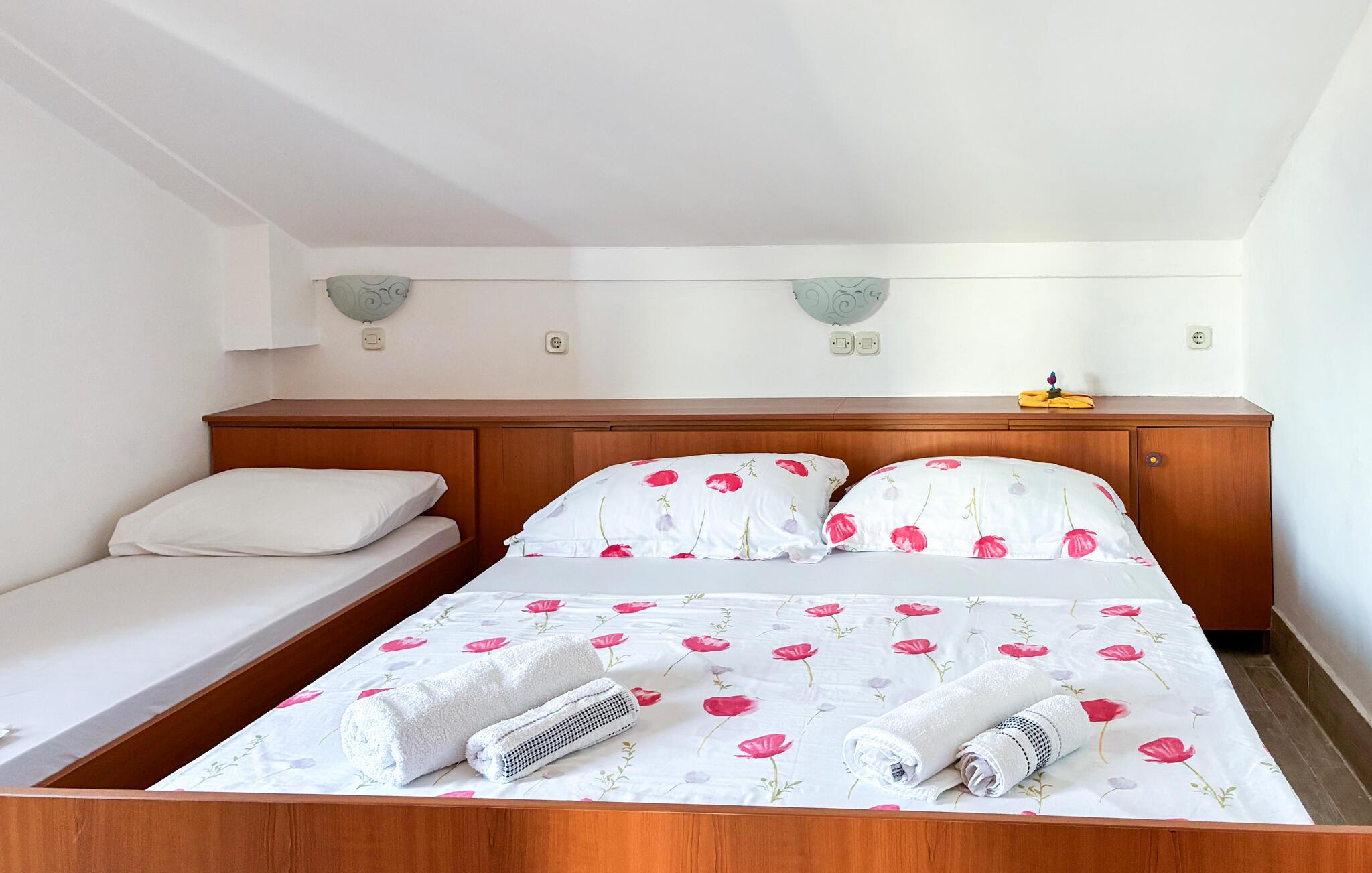 Schlendern Sie zur Adria mit ihrem klaren Wasser und verbringen Sie sonnige Tage am Strand oder beim Schwimmen. Unternehmen Sie Spaziergänge entlang der Uferpromenade, spazieren Sie durch den charmanten Ortskern und entdecken Sie kleine Cafés und Restaurants. Fahren Sie zu den malerischen Buchten entlang der Insel oder besuchen Sie die historische Altstadt von Rab mit ihren engen Gassen und dem alten Hafen.