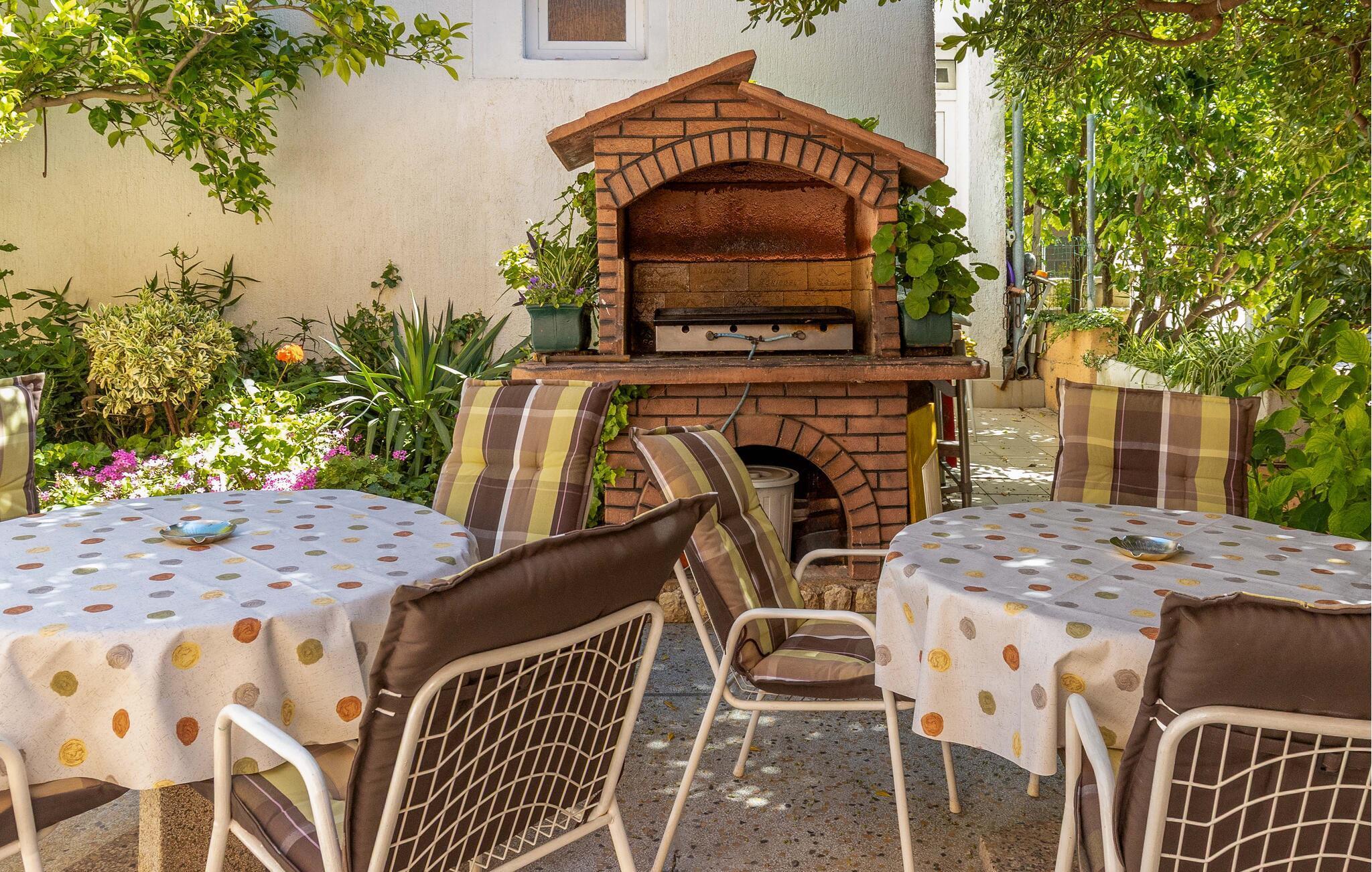 Im Erdgeschoss eines schicken Hauses befindet sich diese Wohnung, die ideal für eine kleine Familie ausgelegt ist. Obwohl es sehr nahe am Meer liegt, ist dies eine ruhige Gegend, was Sie während Ihres Urlaubs zu schätzen wissen werden. Sie können es sich in der gemütlichen, schlichten Ausstattung wunderbar bequem machen und von der Terrasse aus die Sonnenstrahlen in Empfang nehmen. Nutzen Sie den Gemeinschaftsgrill, um auf eigene Faust lokale Spezialitäten auszuprobieren.