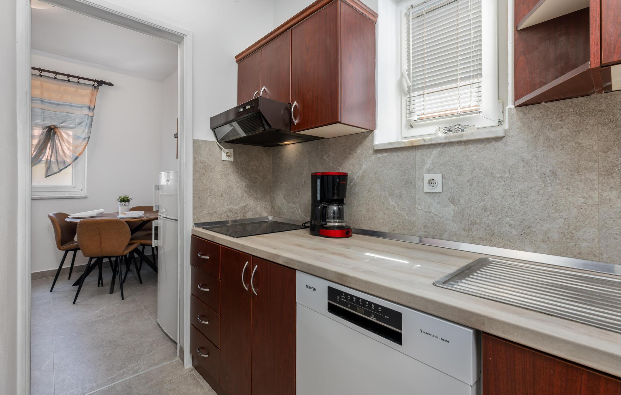 Im ersten Stockwerk eines schicken Häuschens befindet sich diese Wohnung, die ideal für eine kleine Familie ausgelegt ist. Obwohl es sehr nahe am Meer liegt, ist dies eine ruhige Gegend, was Sie während Ihres Urlaubs zu schätzen wissen werden. Sie können es sich in der gemütlichen, schlichten Ausstattung wunderbar bequem machen und vom Balkon aus die Sonnenstrahlen in Empfang nehmen. Hier erblicken Sie auch schon das Meer, das Sie in nur 2 Minuten zu Fuß erreichen. Nutzen Sie den Gemeinschaftsgrill, um auf eigene Faust lokale Spezialitäten auszuprobieren.