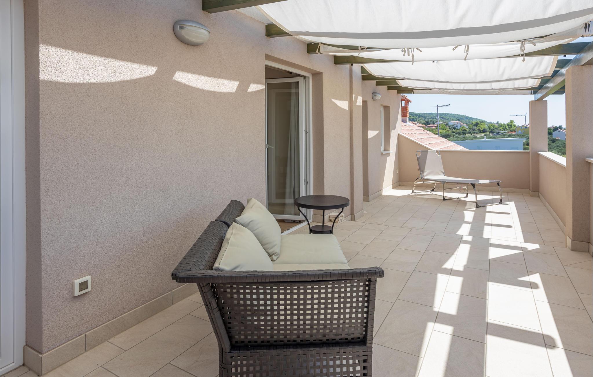 Lassen Sie sich auch auf der oberen Terrasse vom Meerblick verzaubern, auf der Terrasse im Erdgeschoss können Sie grillen und gemütlich im Freien zu Abend essen.