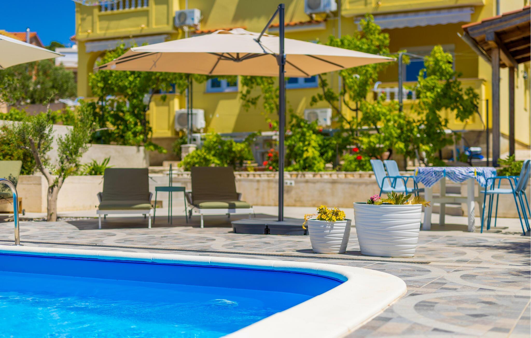Entspannen Sie in vollen Zügen in der Ferienwohnung mit gemeinsamem Pool.