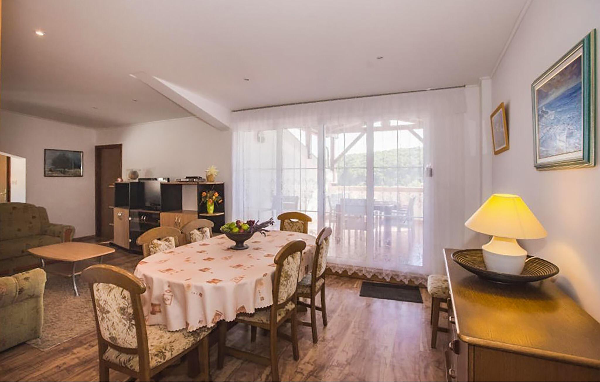 Diese großzügige Ferienwohnung bietet Platz für die ganze Familie und überzeugt mit ihrer klassischen und durchdachten Einrichtung. Der offene Wohn- und Essbereich lädt Sie zu gemeinsamen Stunden ein, während Ihnen mehrere Schlafzimmer Raum für Privatsphäre bieten. Genießen Sie entspannte Momente auf der überdachten Terrasse oder nutzen Sie den gemeinschaftlichen Pool – egal ob drinnen oder draußen. Diese Unterkunft bietet alles, was Sie für einen erholsamen Urlaub benötigen.