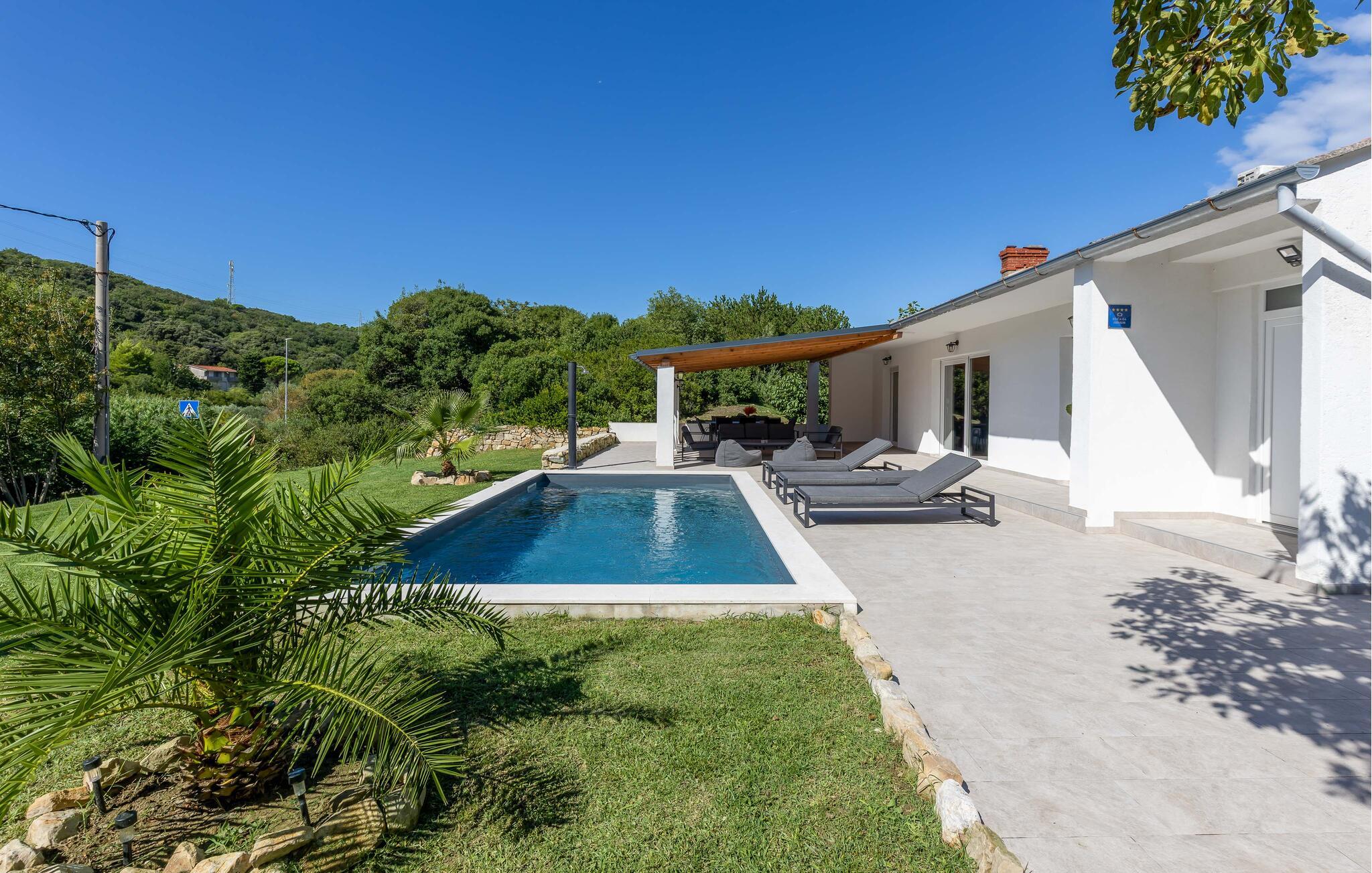 Im Herzen der Insel Rab empfängt Sie dieses helle und einladende Ferienhaus mit Swimmingpool.