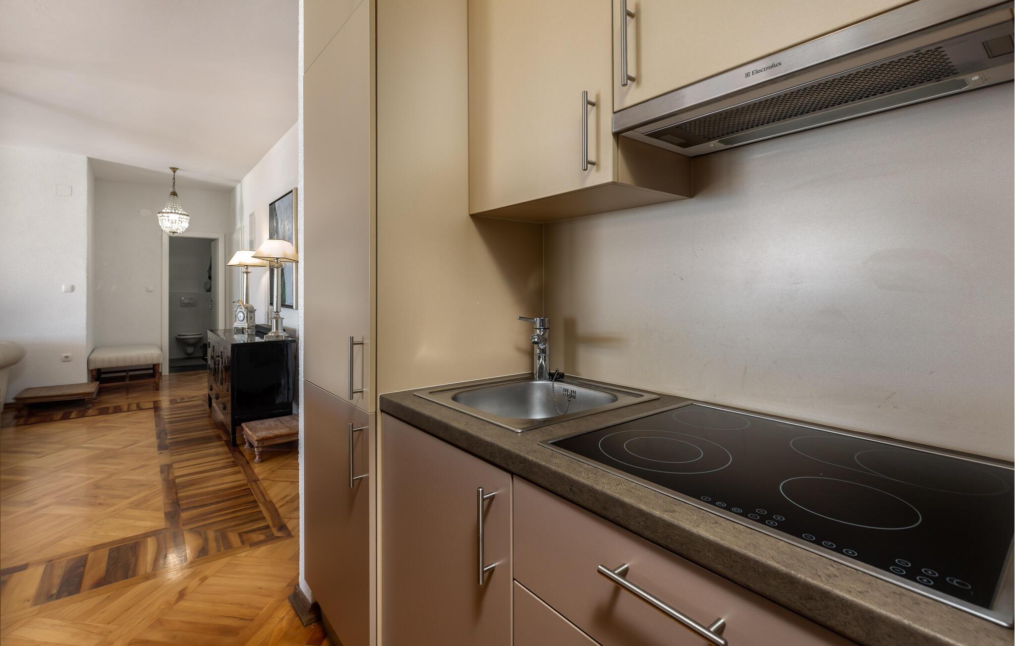 Diese schöne Wohnung verspricht Ihnen einen Urlaub der Extraklasse. Elegantes Mobiliar, schönes Parkett und ausgesuchte Details schaffen eine erholsame Atmosphäre, in der Sie schnell abschalten und neue Energie schöpfen können. Lehnen Sie sich entspannt zurück, genießen Sie ein Glas Wein oder bereiten Sie frische Mahlzeiten in der modernen Küche zu.