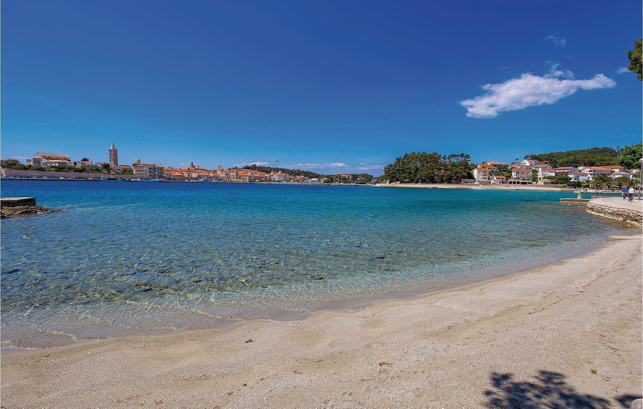 Der Strand liegt nur wenige Schritte entfernt und lädt zum Schwimmen im klaren Wasser sowie zu erholsamen Stunden in der Sonne ein. Entdecken Sie die Altstadt von Rab mit ihren historischen Kirchtürmen, charmanten Gassen und stimmungsvollen Plätzen. Unternehmen Sie zudem Ausflüge entlang der Küste oder in den grünen Kalifront-Wald, die beide zu den besonderen Highlights der Insel zählen.