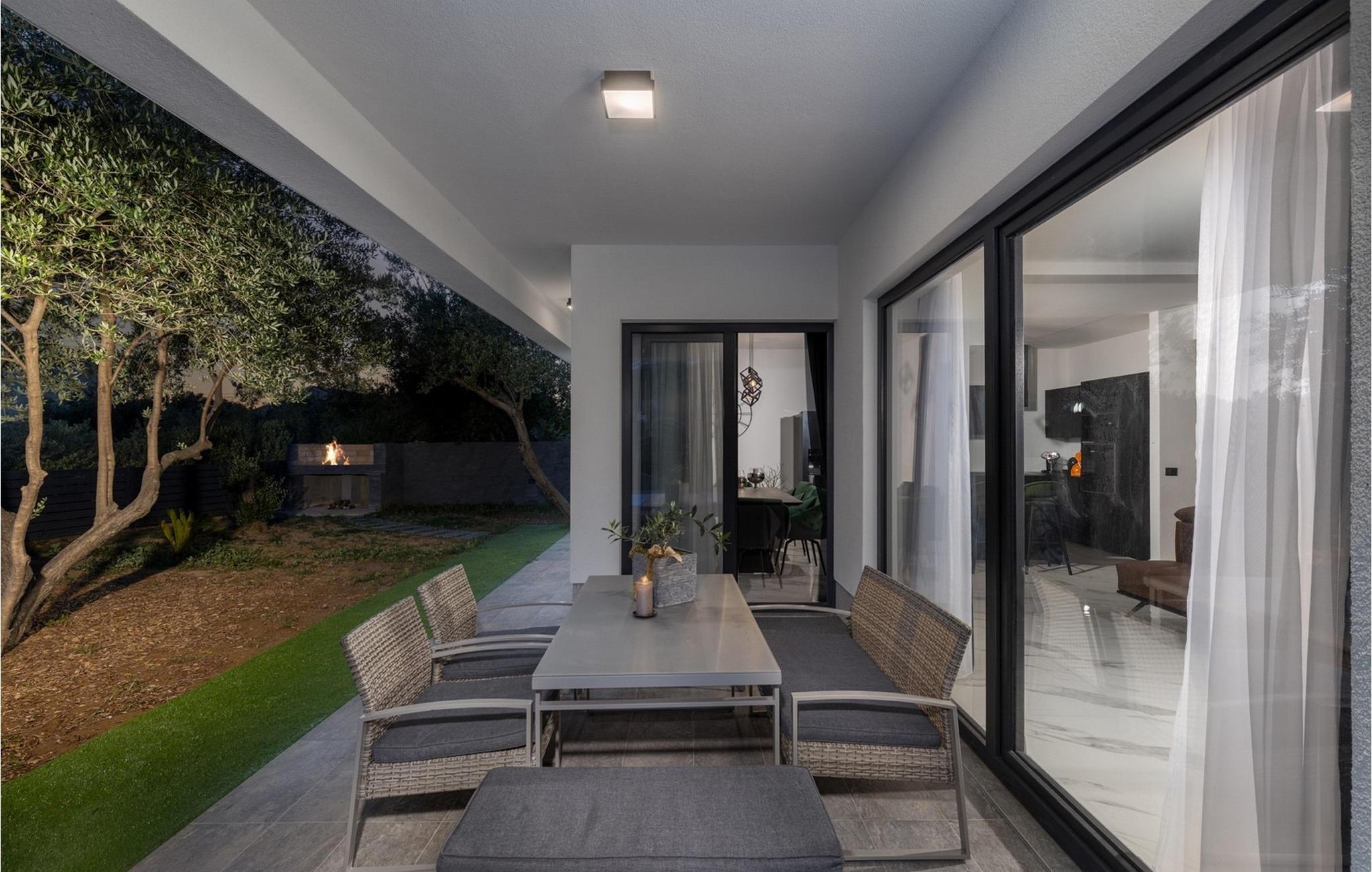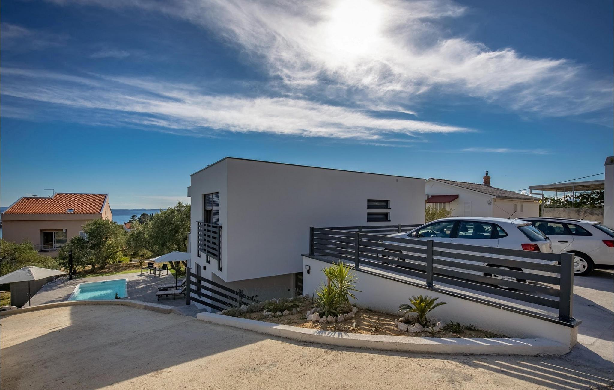 Die Villa Karla Rab liegt auf der Südwestseite der Insel Rab in Banjol, das für seine Buchten bekannt ist, in denen sich magische Sandstrände verbergen. Dieses luxuriöse, moderne Haus mit Meerblick wurde 2019 aus hochwertigen Materialien erbaut und ist komplett mit Möbeln im zeitgenössischen Design ausgestattet. Die Villa verfügt über vier schöne Schlafzimmer mit bequemen Doppelbetten, drei geräumige Badezimmer, eine separate Toilette und ein gemütliches Wohnzimmer. Die moderne Küche im Erdgeschoss der Villa ist komplett mit allen notwendigen Geräten ausgestattet und ein geräumiges Esszimmer mit einem großen Tisch und Sitzplätzen für acht Personen garantiert Komfort und Vergnügen mit Ihrer Familie und Freunden. Die gesamte Villa ist voll klimatisiert, mit WLAN, Kabel-/Satellitenfernsehen ausgestattet und es stehen private Parkplätze zur Verfügung. Genießen Sie während Ihres Aufenthalts in dieser modernen Schönheit den umzäunten Außenbereich mit einem schönen Swimmingpool und Sonnenliegen, der Ihnen an warmen Sommertagen Erfrischung und Entspannung bietet. Es gibt einen Außengrill und eine überdachte Veranda mit Esstisch, umgeben von einem Garten und einheimischer Vegetation, die sich perfekt für Hedonismus an Sommerabenden bei einem Glas guten lokalen Weins eignen. Wenn Sie in das kristallklare Meer eintauchen möchten, liegt es 500 Meter von der Villa Karla Rab entfernt und Sie wählen den schönsten Strand für sich und gönnen sich den Genuss. Versäumen Sie nicht, Ihren Aufenthalt in dieser wunderschönen Villa mit einem Besuch der nur 1,5 km entfernten Stadt Rab zu vervollständigen, einer wunderschönen Stadt mit einer reichen Geschichte, die Liebhaber mediterraner Architektur, Geschichte, Kunst und natürlicher Schönheit in Erstaunen versetzen wird. Haustiere sind in dieser Unterkunft nach Ermessen des Eigentümers oder gegen eine Gebühr gestattet. Bitte beachten Sie, dass diese Unterkunft keine Jugendgruppen oder Junggesellenabschiede akzeptiert. Eine Jugendgruppe in dieser Unterkunft besteht aus Personen unter 30 Jahren. Buchen Sie diese Unterkunft nicht, wenn Sie eine Jugendgruppe oder ein Junggesellenabschied sind, da Ihre Buchung nach der Buchung abgelehnt wird, was auch bei der Ankunft in der Unterkunft oder während Ihres Aufenthalts der Fall sein kann, und Sie keine Rückerstattung erhalten.