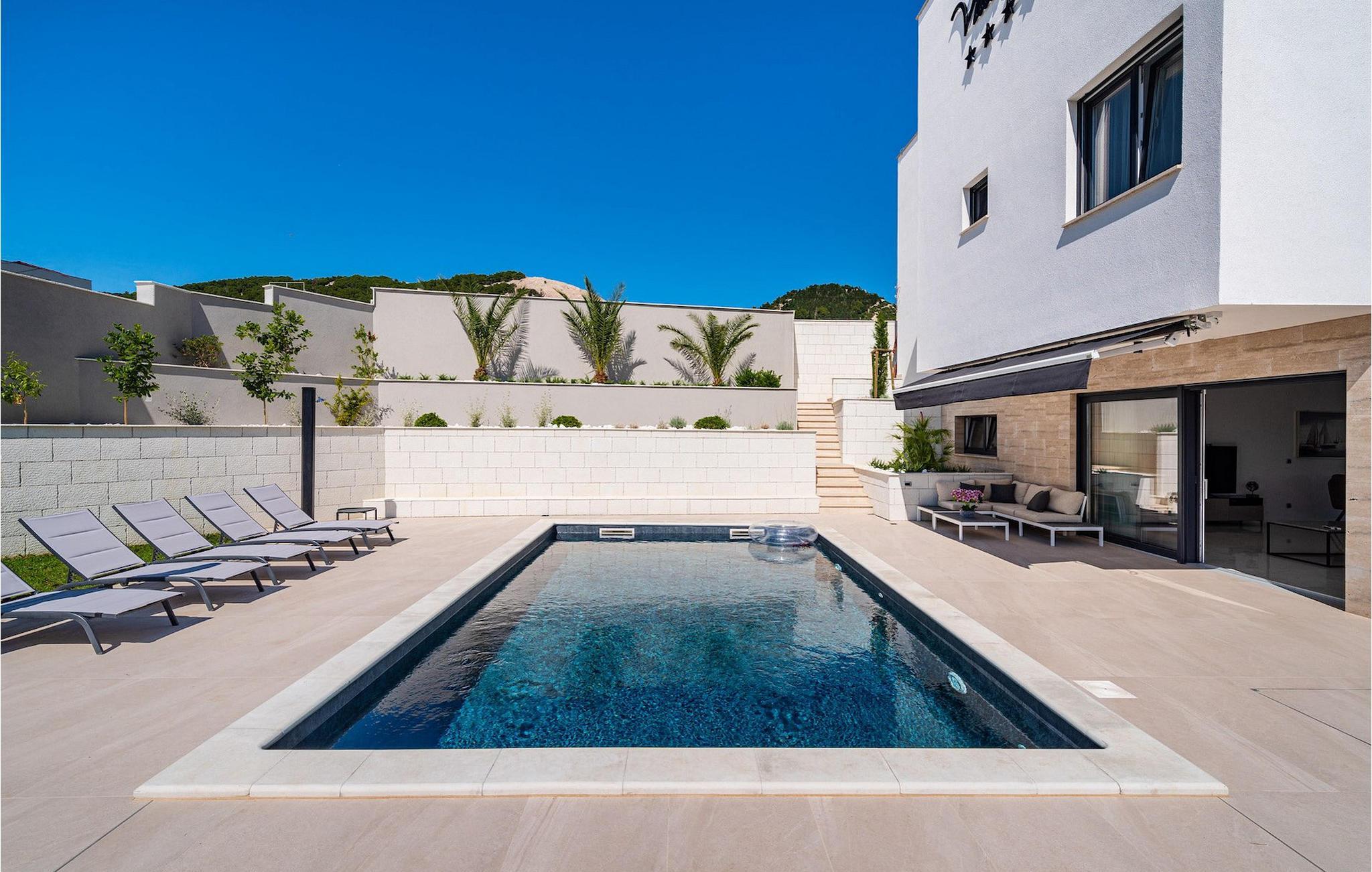 Villa Bura Rab ist eine atemberaubende, moderne Villa auf der wunderschönen Insel Rab in der Kvarner Bucht. Das moderne, neue Anwesen wurde so eingerichtet, alle Ihre Urlaubswünsche zu erfüllen! Die Villa hat insgesamt 3 Etagen, die mehr als genug Platz für 14 Gäste, was die maximale Kapazität der Villa ist, bieten. Im Erdgeschoss befindet sich ein geräumiges Wohnzimmer, das mit der voll ausgestatteten Küche sowie mit dem Essbereich verbunden ist. Im Erdgeschoss gibt es auch ein Schlafzimmer mit eigenem Bad sowie einen Loungebereich/privaten Fitnessraum. Hier können Sie entweder Sport treiben oder, wenn das nicht Ihren Urlaubsvorstellung entspricht, eine entspannte Zeit beim Tischfußball verbringen. Das Erdgeschoß bietet auch eine private Sauna mit zusätzlicher Dusche an, für die Gäste, die zusätzliche Entspannung benötigen.