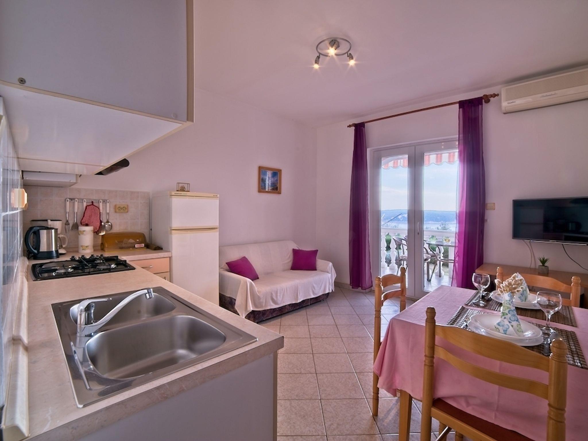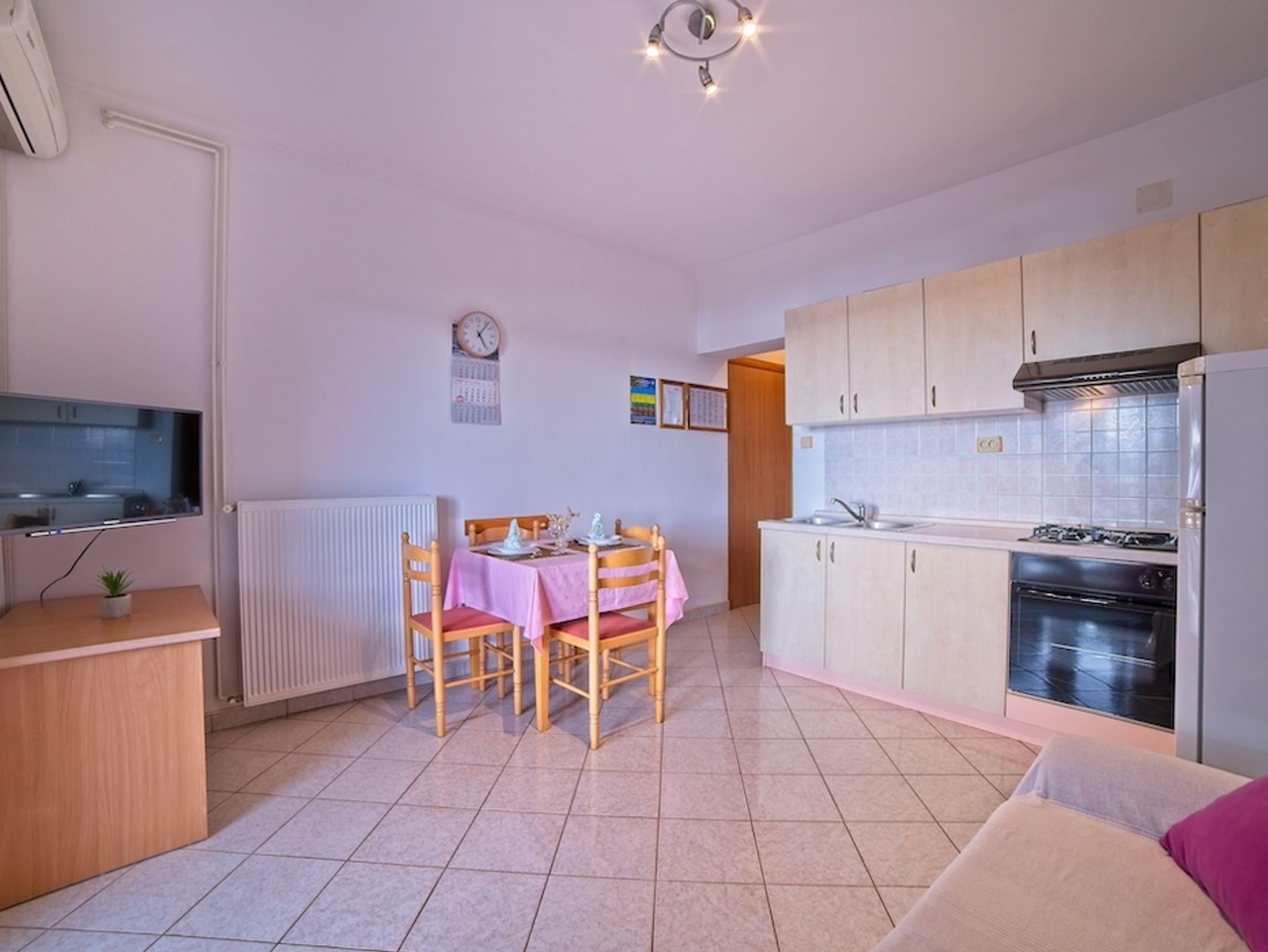 Ferienwohnung bietet Platz für 4 Gäste. Die Betten sind in Schlafzimmern, die es 1 gibt, und in Wohnzimmer, innerhalb einer Gesamtfläche von 30m2, angeordnet. Die Gäste haben einen eigenen Balkon zur Verfügung, auf der sie in warmen Sommernächten genießen können. Das Apartment bietet Meerblick. Es ist erlaubt, Speisen auf dem Gemeinschafts-Grill vorzubereiten. In der Unterkunftseinheit besteht die Möglichkeit des Mitbringens von Haustieren gegen Aufpreis. IM PREIS INBEGRIFFEN: Kurtaxe, Endreinigung, Klimatisierung, Parkplatz, Internet, Föhn. VERBINDLICHE ZUSÄTZLICHE KOSTEN: Aufzahlung für Kurzaufenthalte (prozentualer Zuschlag pro Nächtigungsanzahl: 30% - 1, 20% - 2, 10% - 3). UNVERBINDLICHE ZUSÄTZLICHE KOSTEN: Wäschewaschen (5,00 € Waschen), Haustiere (8,00 € pro Nacht). Die Verfügbarkeit zusätzlicher Dienstleistungen in Ihrem reservierten Termin und die Preise derselben (falls nicht aufgeführt) müssen im Voraus überprüft werden. Zusätzliche Dienstleistungen die in der Zahlungsaufforderung nicht aufgeführt sind werden direkt beim Vermieter bezahlt, angenommen der Gast nutzt auch diese. Ermäßigung auf den Grundpreis: Gratistag 14=13 (bei einem Aufenthalt von 14 Tagen oder mehr erhalten Sie einen Gratistag für den Aufenthalt bis 31.12.26).